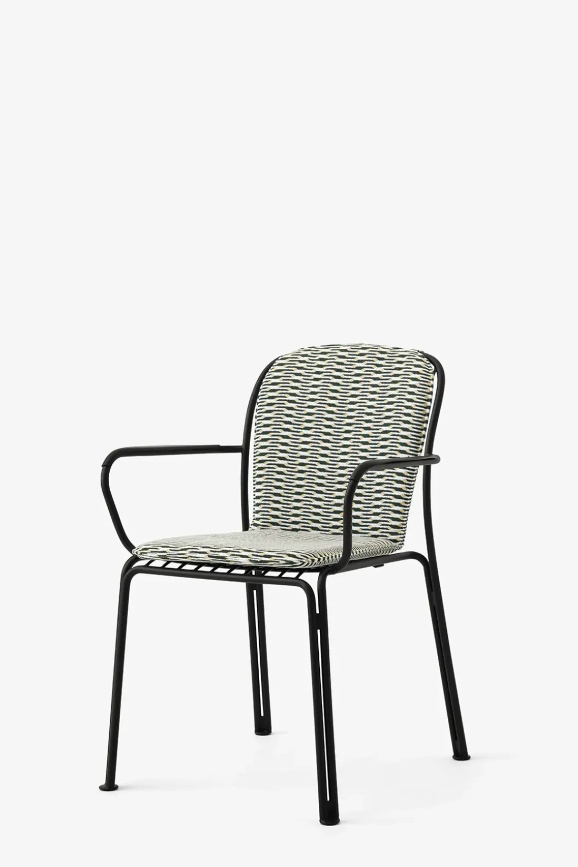 Sittepute med ryggstøtte til Thorvald SC94 og SC95 utestoler fra danske u0026amp;Tradition, designet av anerkjente Space Copenhagen. Sitteputen kommer i to ulike tekstiler; Heritage Papyrus og Marquetry Bora. Heritage Papyrus er laget av vannavvisende og flekksikkert lerret som er laget av 50% resirkulert akryl, 47% akryl, og 3% polyester. Marquetry Bora er laget av vannavvisende og flekksikkert lerret laget av 100% akryl. Putene inneholder et hurtigtørkende skum og vatt som gjør de svært behagelig å sitte på – en perfekt match med utestolene fra samme serie.