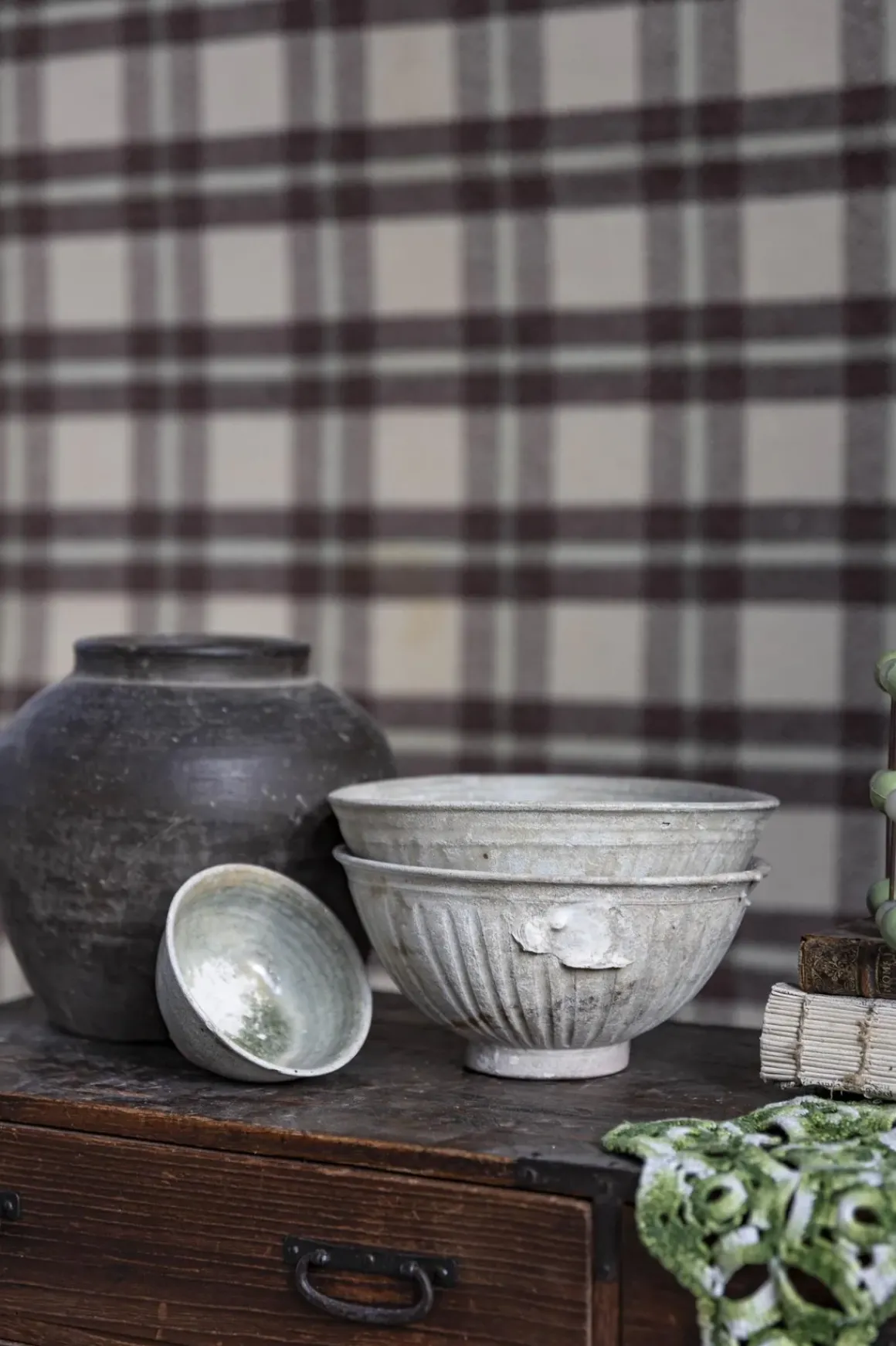 Vintage-skål av keramikk fra franske Atmosphere, kjent for deres fokus på kvalitet, autensitet og sjeldne, asiatiske objekter. Bollene ble laget mellom 1368 og 1644 i Kina under Ming Dynastiet, en tid preget av kulturell oppblomstring. Sjeldne vintage skatter som dette er både vakker dekor til hjemmet og et spennende samtaleemne.
