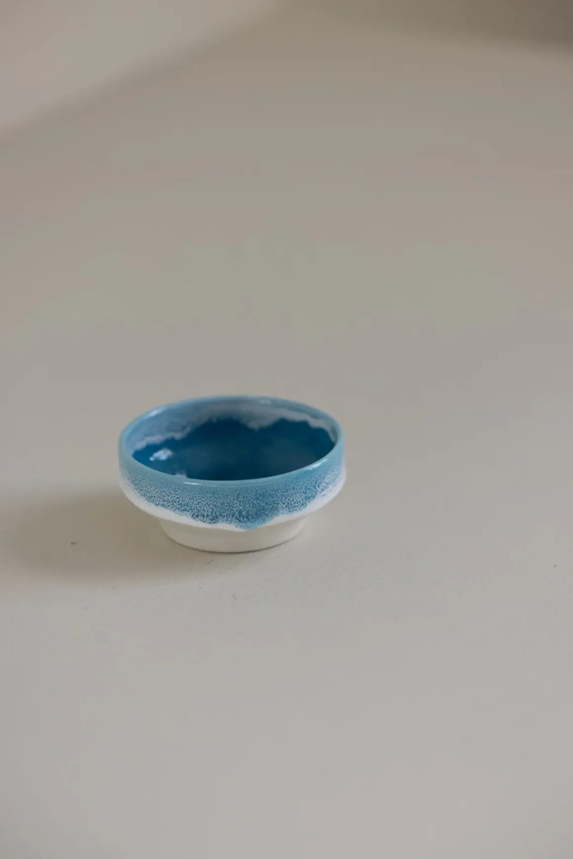 Dip Dish er en liten, håndlaget skål med en bred, flat fot som gir stabilitet på flate underlag. Hver skål er unik, med små variasjoner i form og glasur. Den passer perfekt til soyasaus, aioli, oliven og nøtter, eller som oppbevaring for smykker.