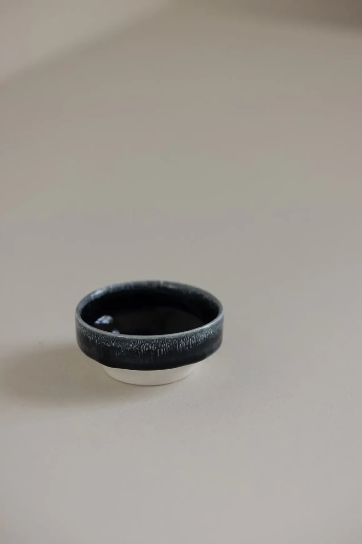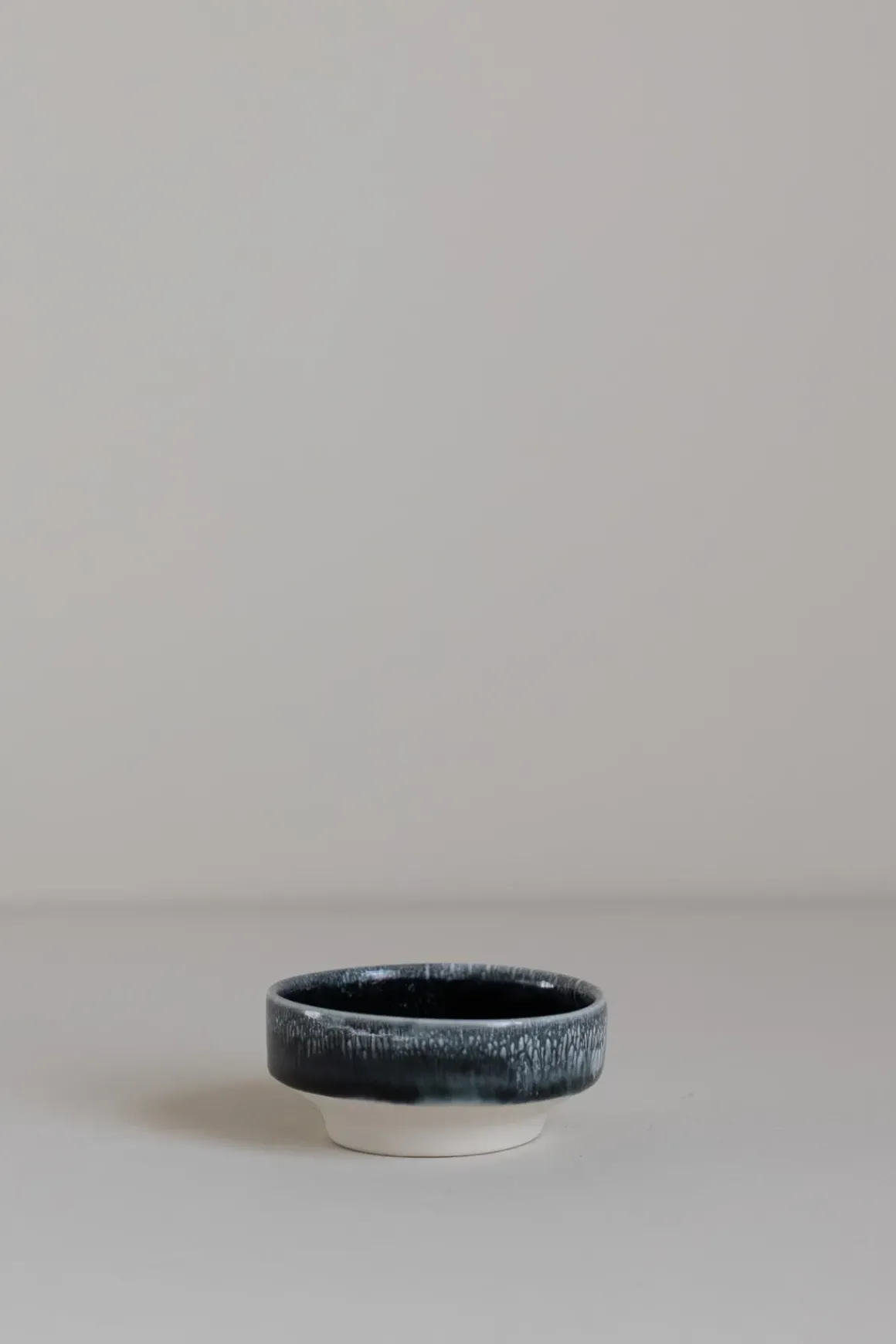 Dip Dish er en liten, håndlaget skål med en bred, flat fot som gir stabilitet på flate underlag. Hver skål er unik, med små variasjoner i form og glasur. Den passer perfekt til soyasaus, aioli, oliven og nøtter, eller som oppbevaring for smykker.