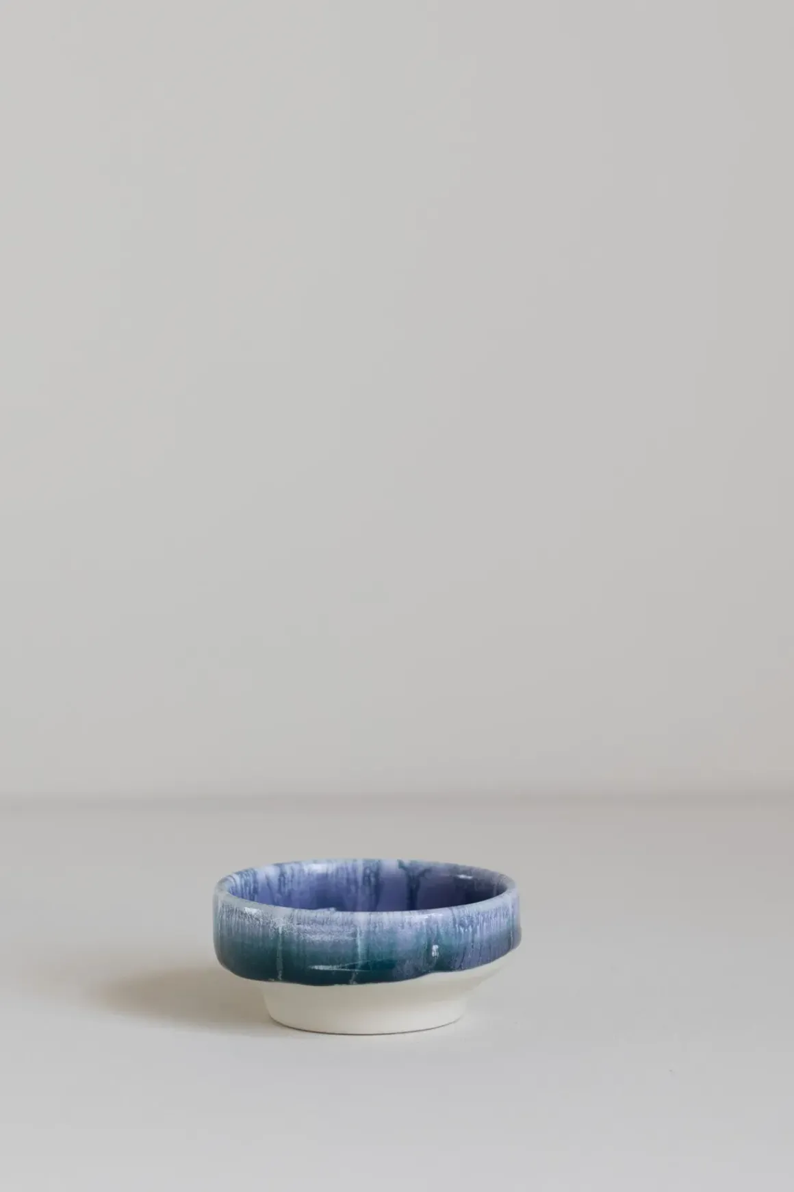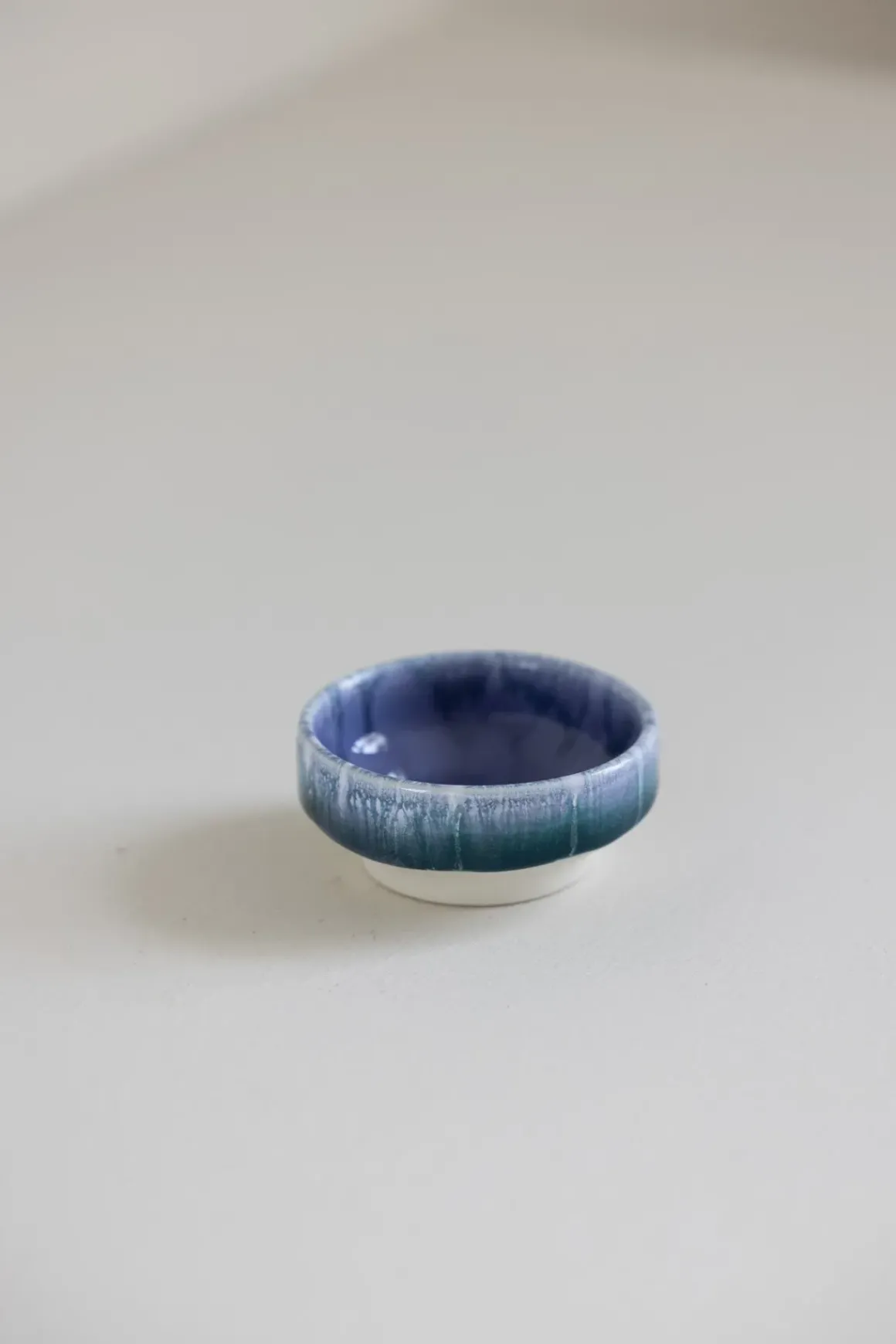 Dip Dish er en liten, håndlaget skål med en bred, flat fot som gir stabilitet på flate underlag. Hver skål er unik, med små variasjoner i form og glasur. Den passer perfekt til soyasaus, aioli, oliven og nøtter, eller som oppbevaring for smykker.