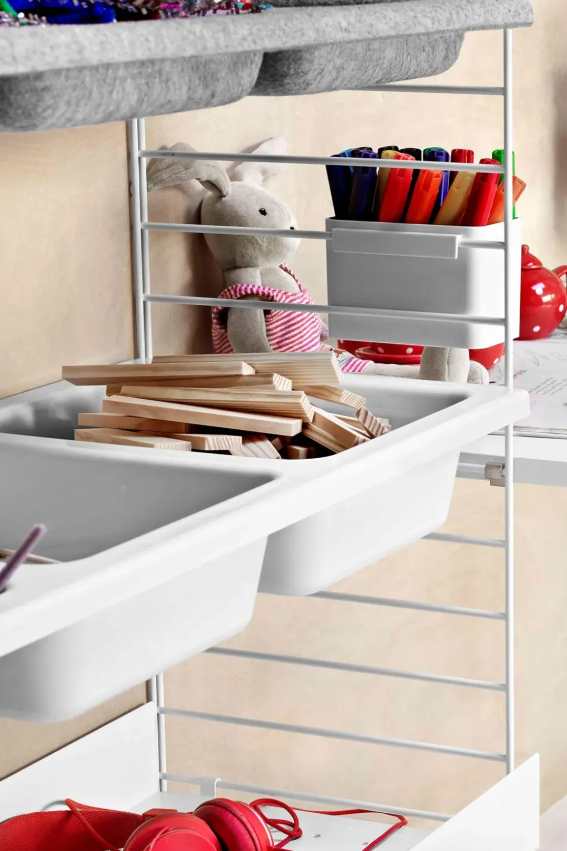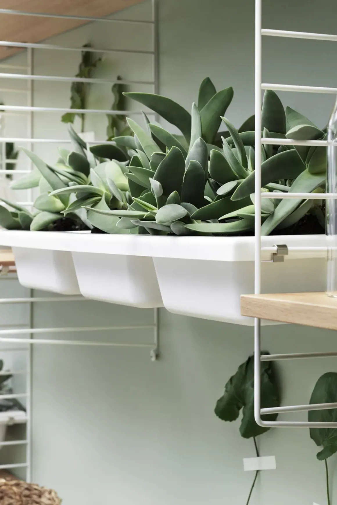 Skålplan i plastikk selges som en enkeltdel du praktisk kan kombinere i ditt String® System. Skålene i plastikk finnes i en bredde på 78cm og måler 30cm i dybde. Passer både til Flex og System forutsatt at gavlene er 30 cm dype.