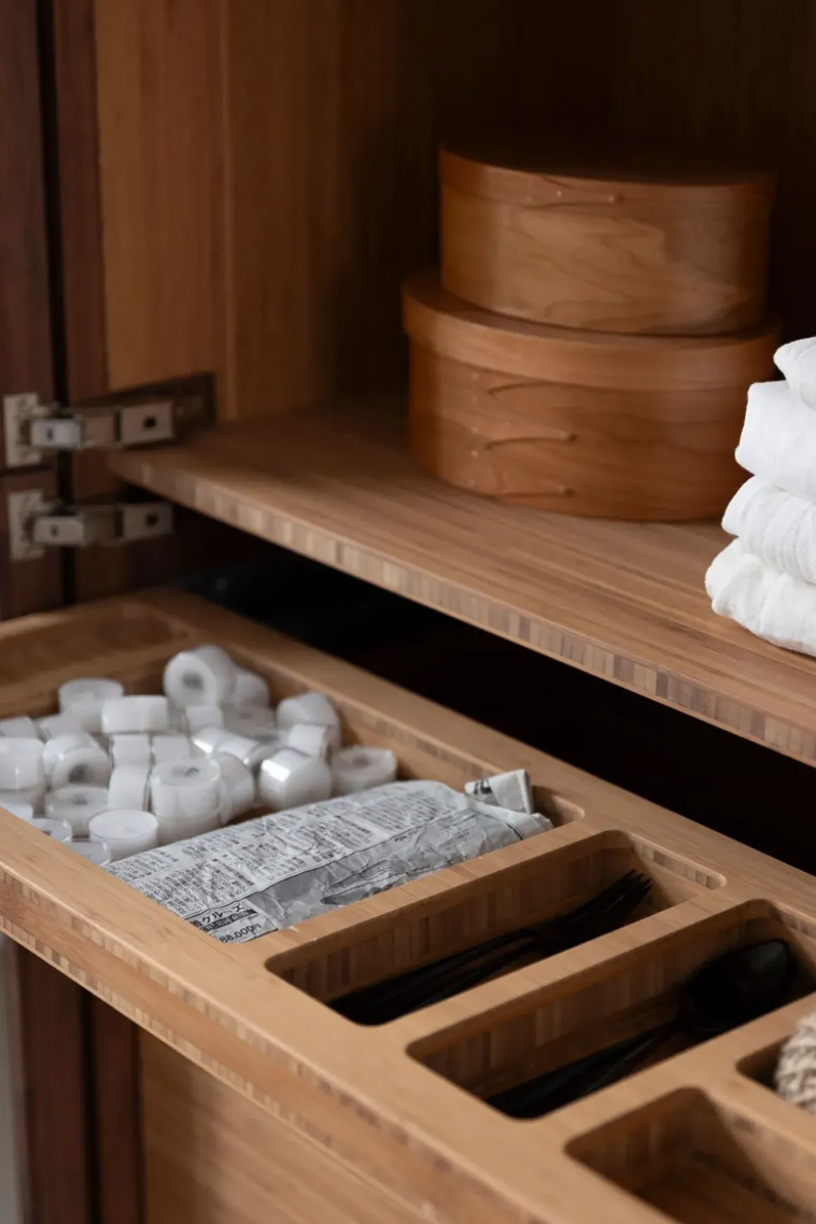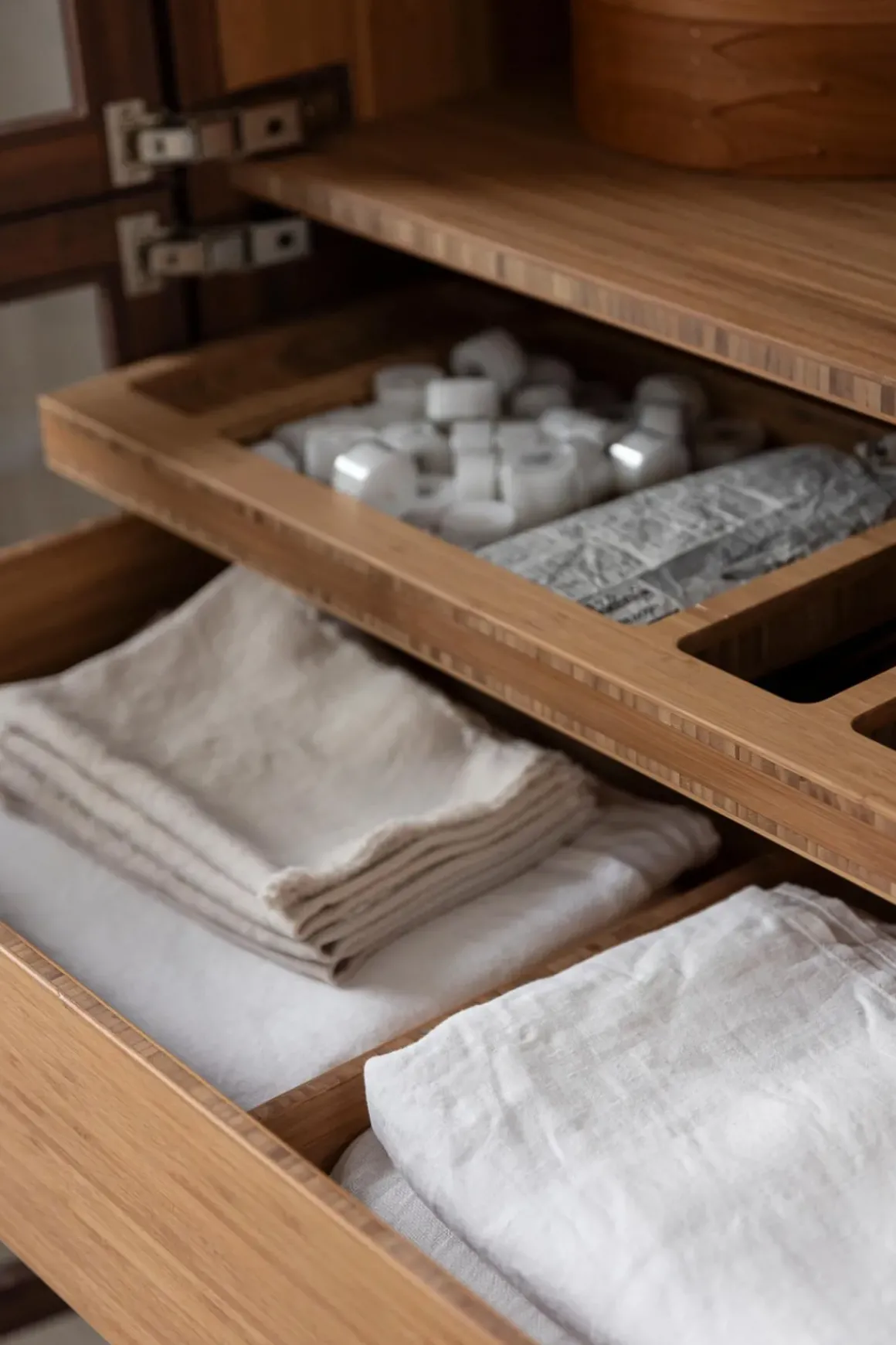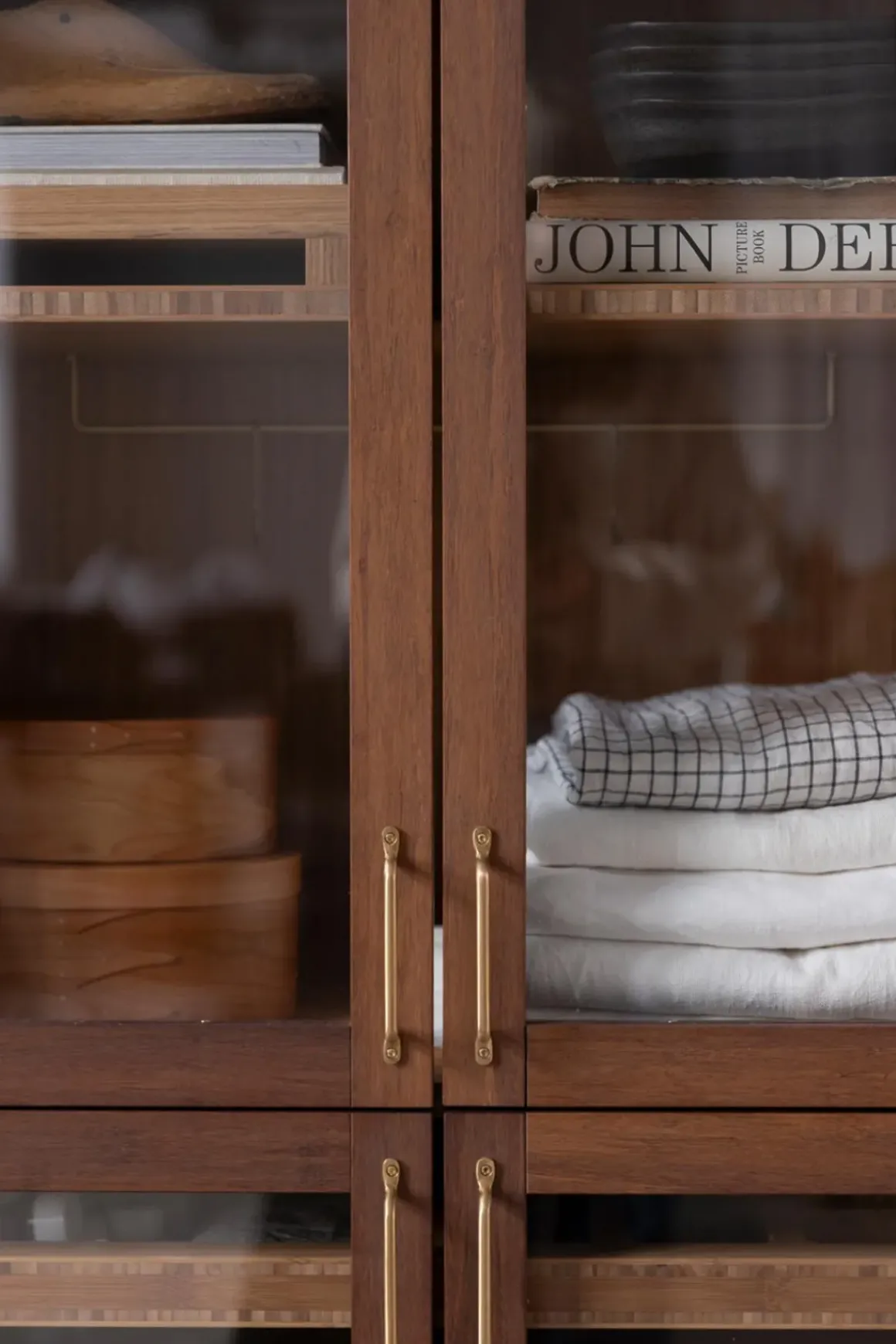Vitrineskap i bambus fra norske Ask og Eng, laget i eksklusivt samarbeid med Bolina. Det skreddersydde, håndlagde skapet i solid, brun bambus har dører i glass og håndtak og detaljer i varm messing som harmonerer perfekt. Her er ingenting overlatt til tilfeldighetene og hver detalj er nøye gjennomtenkt. Skapet kan brukes som et frittstående møbel der du trenger det i huset eller du kan innlemme det som en del av kjøkkenet eller spisestuen for eksempel. Vis fram utvalgte skatter, serviser, vaser, objekter eller tekstiler og bruk skuffene til oppbevaring av andre ting som ikke trenger å synes. Skapet er designet og håndlaget på Ask og Eng・Workshop i Drammen. Skapet kan bestilles i et større utvalg farger/finisher og hardware og detaljer i ulike metaller- kom innom butikken for å se skapet live og snakk med oss så hjelper vi deg å finne den perfekte match til ditt hjem.