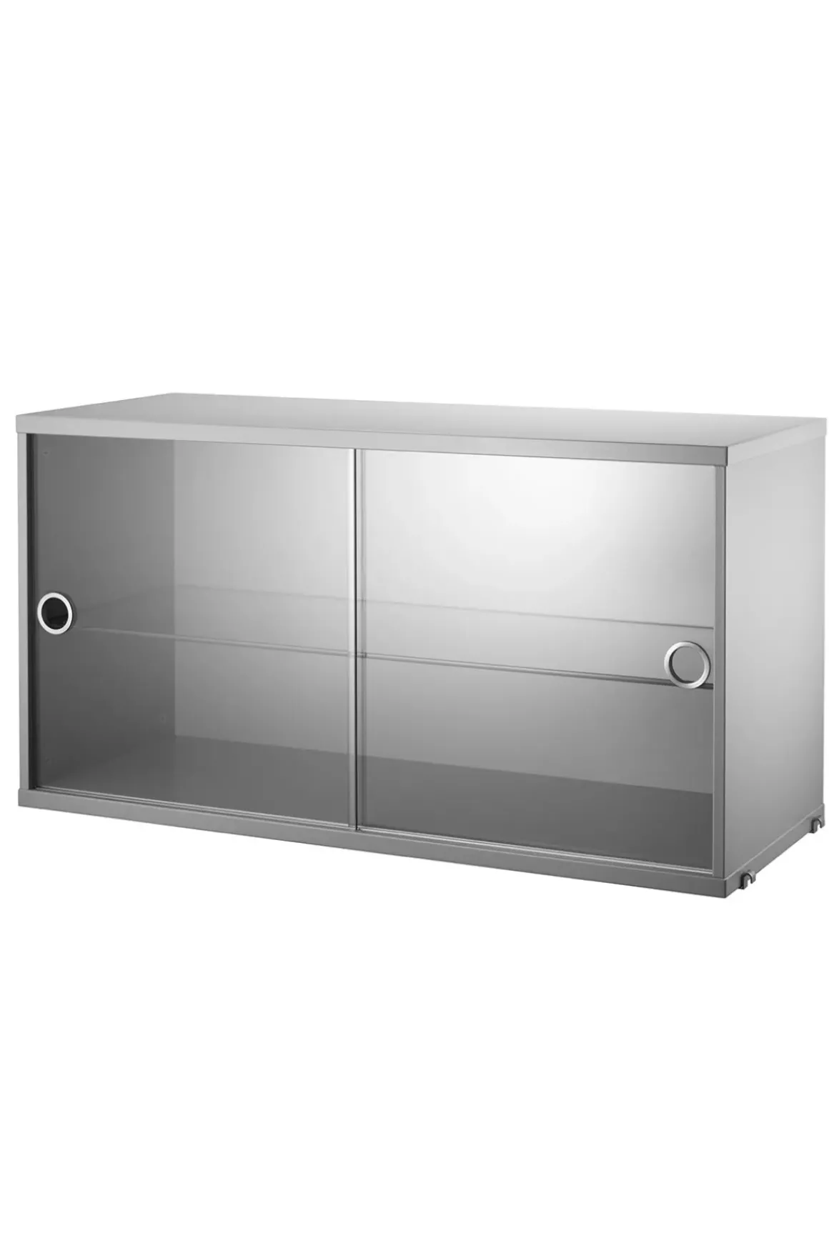 Vitrineskap fra String finnes i bredde 78/58cm og dybde 30cm. Den kommer med en avtagbar glasshylle slik at du kan få to seksjoner. Visuelt er det fint å bryte med et større element i hyllen din, som også gir deg mye ekstra oppbevaring og muligheten til å vise frem noe skjørt. Passer med alle gavler som er 30cm dype. Selges pr. stk.