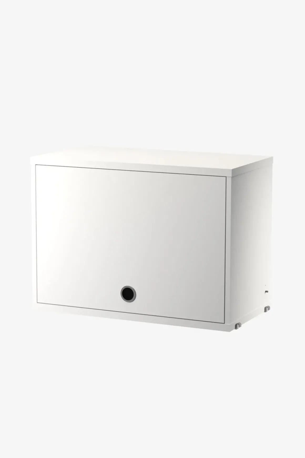 Flip Door-skapet selges som en enkeltdel du praktisk kan kombinere i ditt String® System. Flip Door-skapet er tilgjengelig i B: 58/78 cm x D: 30 cm x H: 42 cm. Skapet passer sammen med alle 30 cm dype gavler fra String® System. Skapet har én justerbar innerhylle og de innvendige målene er B: 55 cm x D: 28,5 cm x H: 38 cm. Visuelt er det fint å bryte med et større element i stringhyllen, samtidig som det er superpraktisk til oppbevaring og lagring. Plasser ting på toppen for ekstra utnyttelse. Skapet leveres umontert og med opphengsbeslag i pakken. Selges pr stk.