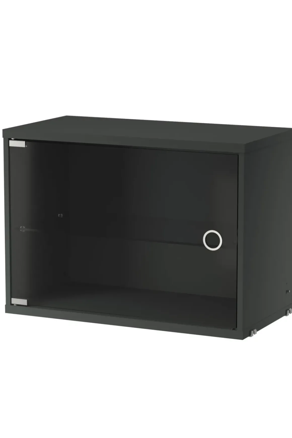 Vitrineskap fra String® System finnes i bredde 78 cm og 58 cm, med en dybde på 30 cm. Det leveres med en avtagbar glasshylle, slik at du kan dele skapet inn i to seksjoner. Et større element i hyllen skaper en fin visuell balanse, samtidig som skapet gir ekstra oppbevaring og muligheten til å vise frem skjøre gjenstander. Passer til alle gavler med 30 cm dybde og selges enkeltvis.