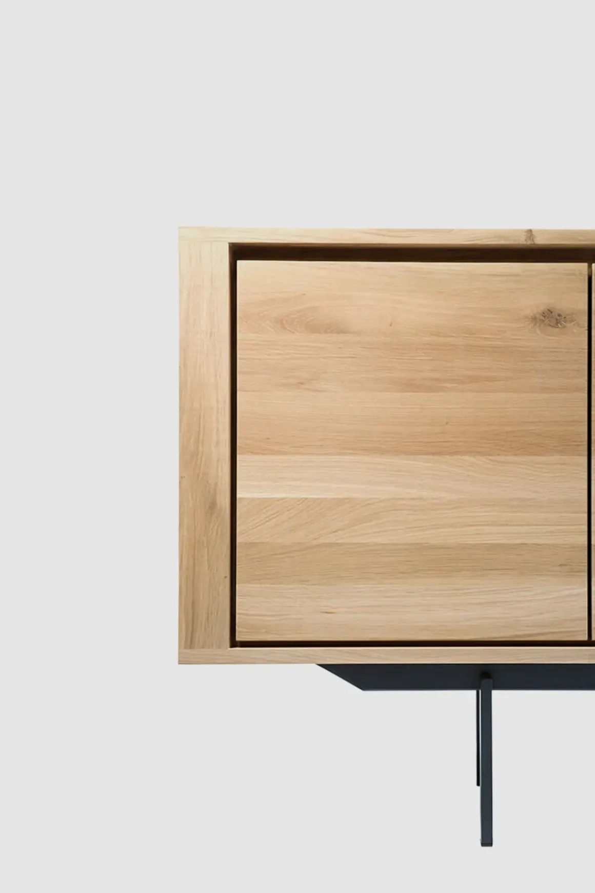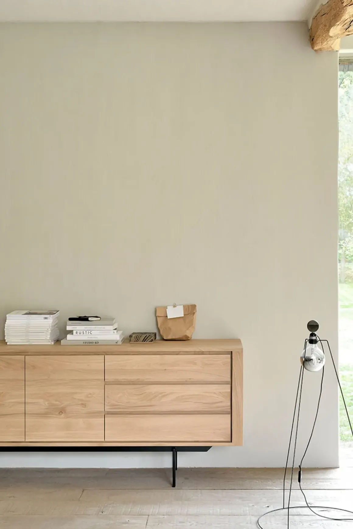 Shadow-kolleksjonen fra belgiske Ethnicraft kjennetegnes av enkelt og robust design med stramme linjer som komplimenterer den nordiske stilen. Skjenken er laget i massiv, oljet eik med pulverlakkerte ben i sort stål, som gir det en klassisk look med en moderne vri. Skjenken har god lagringsplass med tre skuffer og to dører, og er helt uten synlige håndtak og knotter som understreker det minimalistiske uttrykket. Shadow er et vakkert oppbevaringsmøbel til stua, soverommet eller i gangen og er laget av høykvalitets, europeisk, oljet eik. Ethnicraft lar materialet komme til sin rett ved å la de naturlige variasjonene og teksturene i treet være synlige. Kombinasjonen av moderne design, sterk konstruksjon og varige materialer gjør det til den ideelle oppbevaringsløsningen for alle hjem.