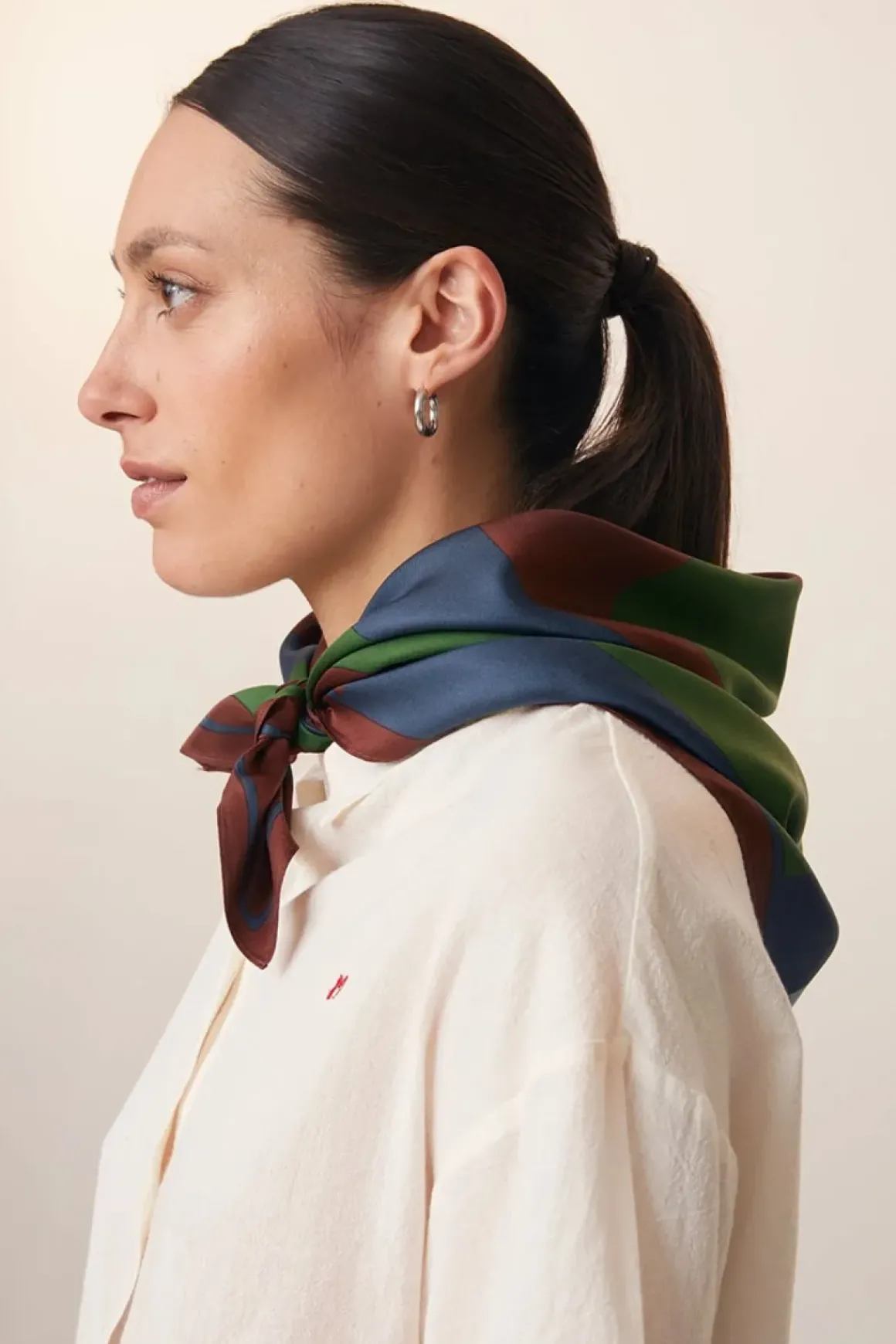 Skjerf N°762 i fargen Navy Blue er et kvadratisk skjerf på 65×65 cm, laget av 100% silke og vevd for hånd. Den myke kvaliteten gir en behagelig følelse mot huden, mens det grafiske mønsteret er inspirert av fugler, en av kolleksjonens inspirasjonskilder. Skjerfet kan styles på mange måter – knytt det rundt halsen, bruk det i håret eller la det pryde en veske.