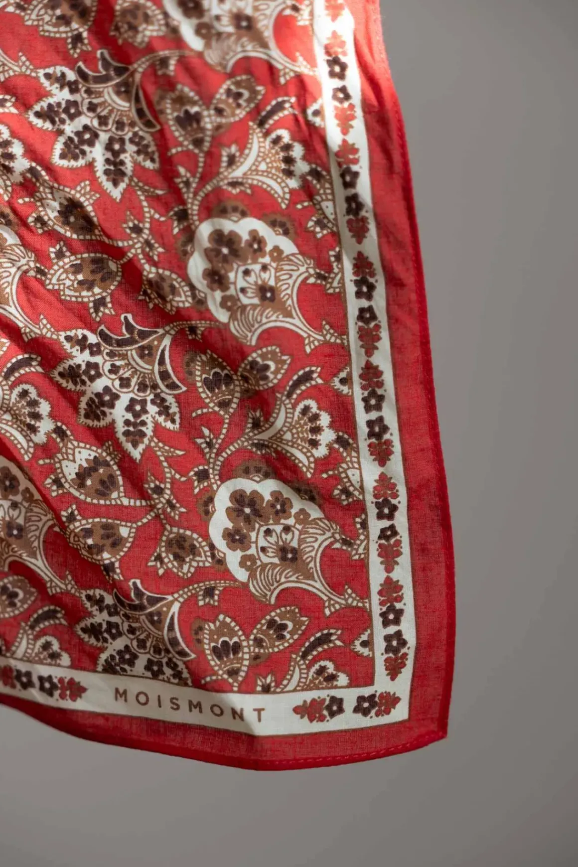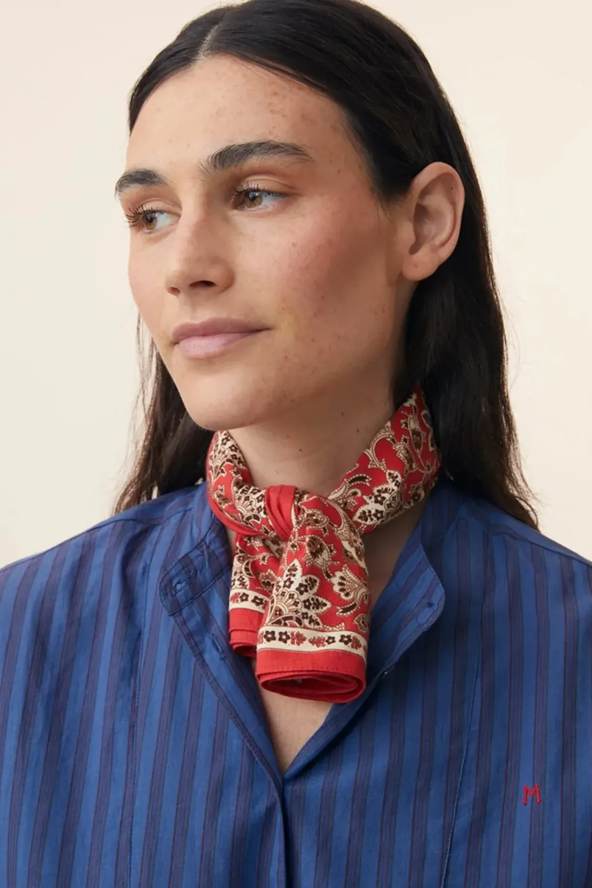 Skjerf N°764 er et kvadratisk skjerf på 65×65 cm med et paisleymønster inspirert av vårens tilbakekomst. Det er laget av lett og myk bomull, noe som gjør det behagelig å ha på. Størrelsen gjør det allsidig – bruk det rundt halsen, i håret eller knytt det på vesken for en dekorativ detalj.