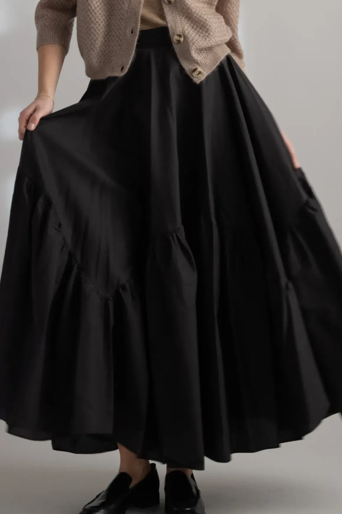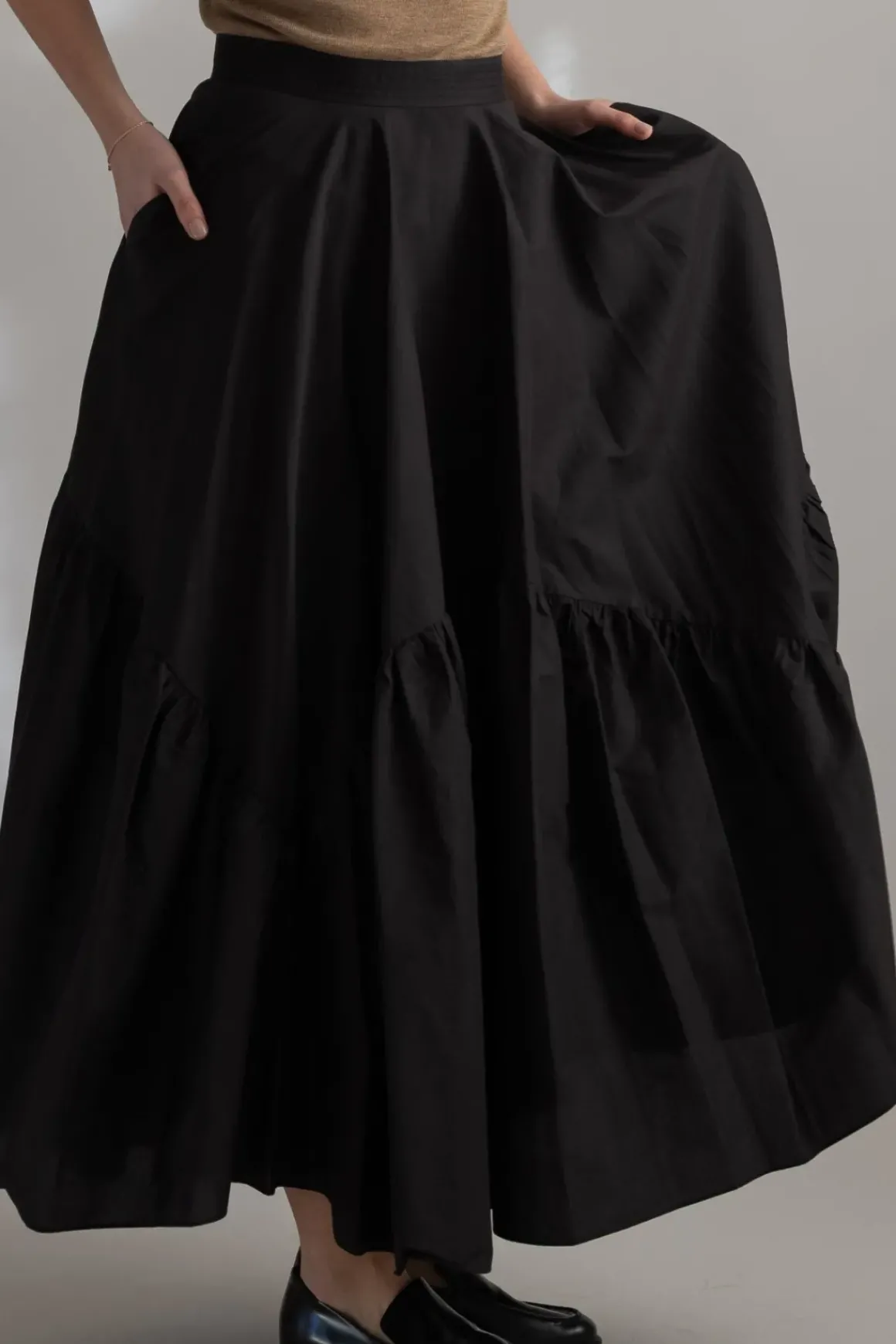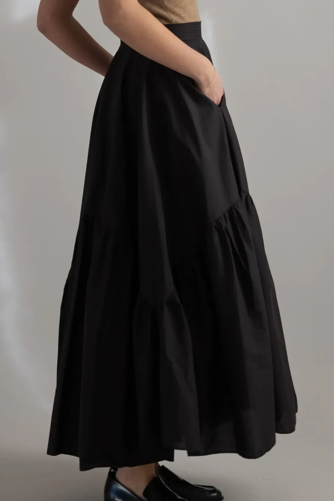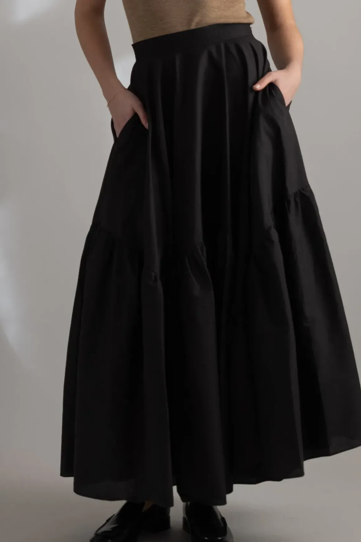 Klassisk sort maxi skjørt i Lycoell og bomullblanding fra Vanessa Bruno. Skjørtet er tettsittende i livet og med et praktisk glidelås i livet.