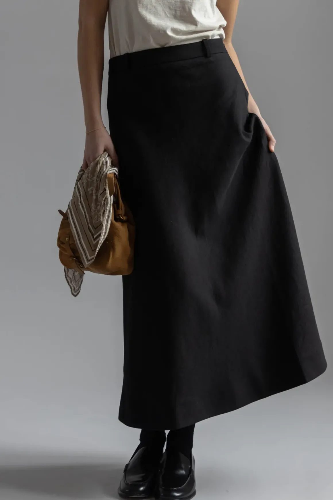 Emina Skirt fra Skall Studio er et A-line midi-skjørt som kombinerer tidløst design med subtil volum. Skjørtet har et fast midjebånd og delikate folder øverst, noe som gir en raffinert og sofistikert look. Det er designet med en usynlig glidelås i siden og beltehemper, slik at det enkelt kan styles med et belte for en personlig vri.