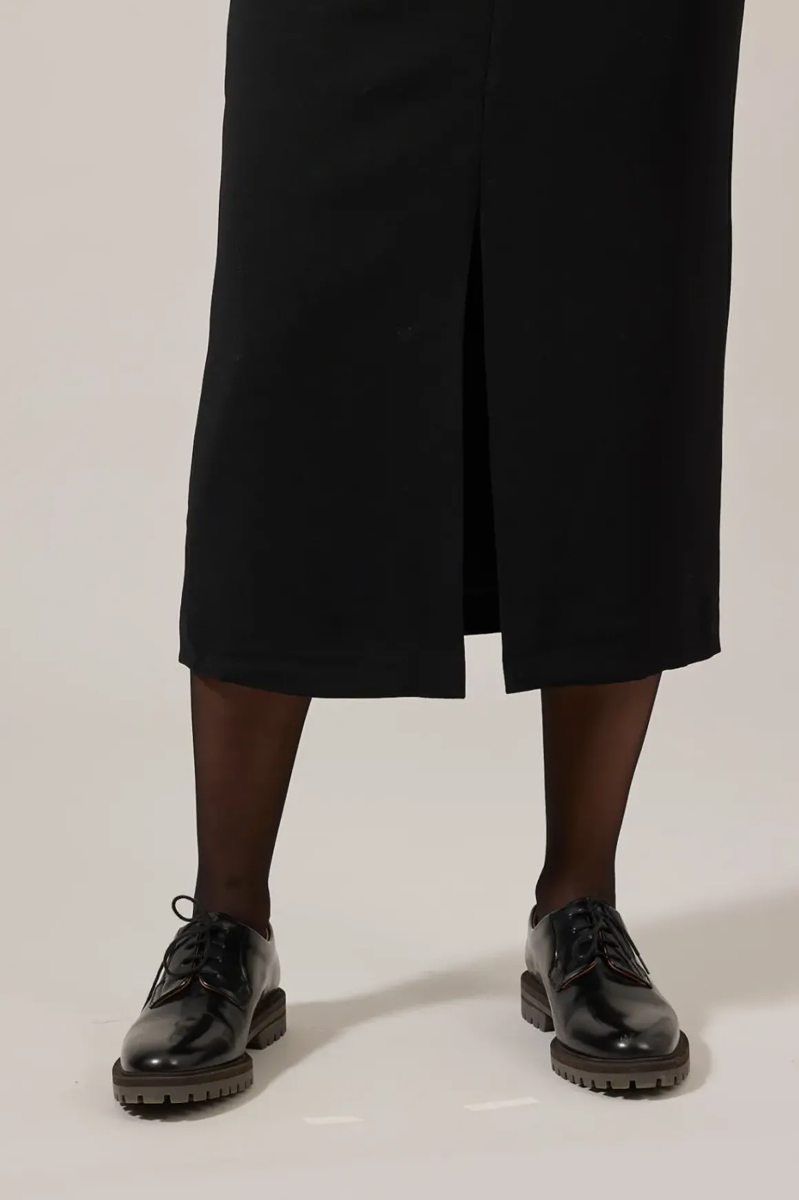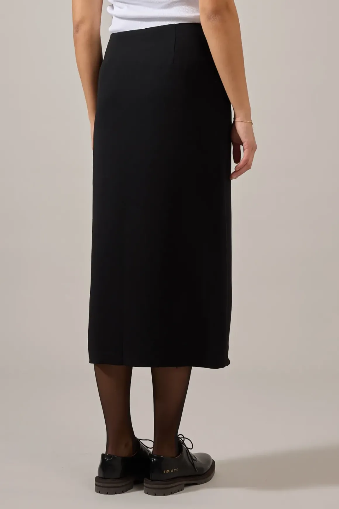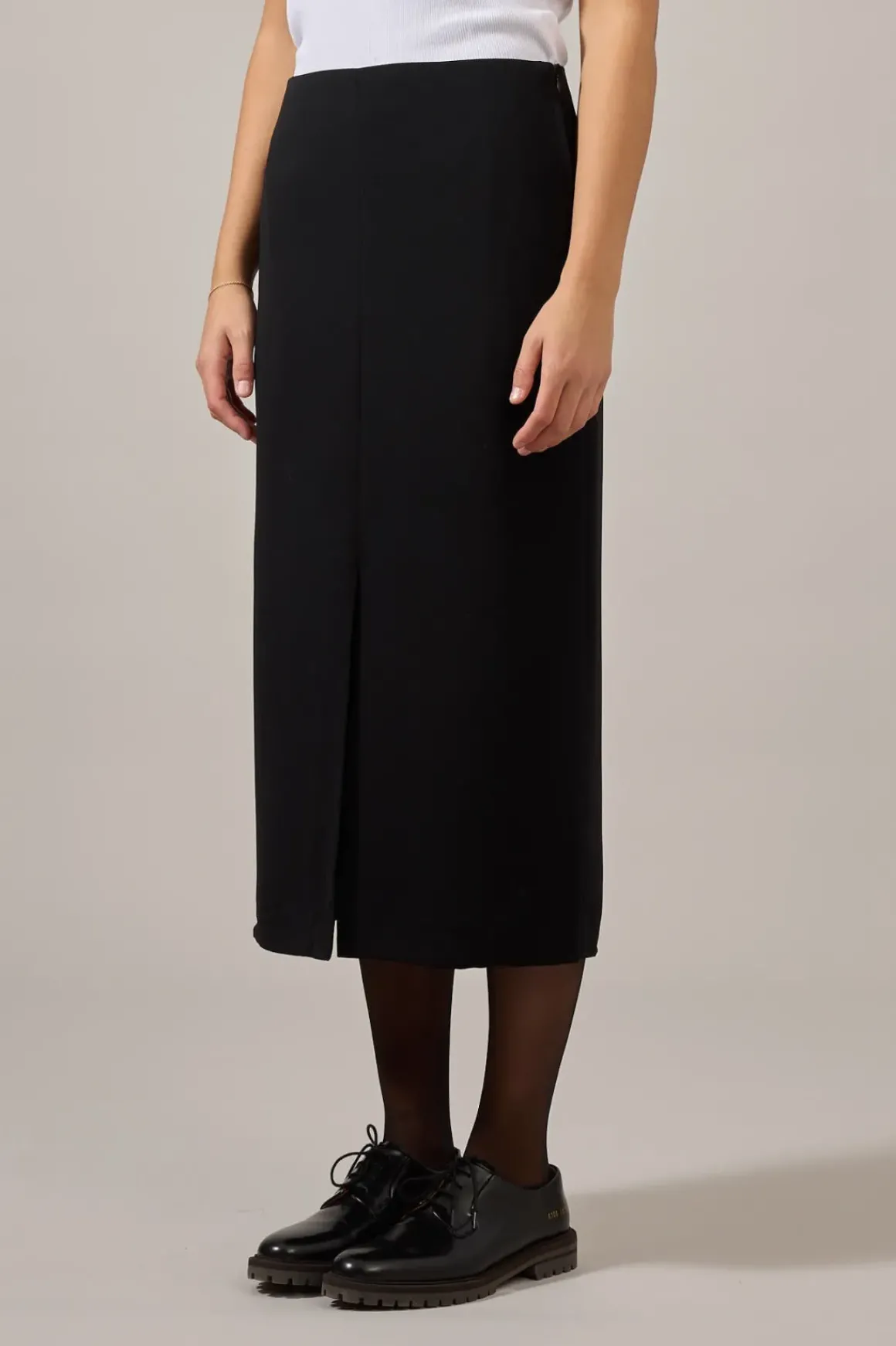 Nishka Black skjørt fra MKDT er et klassisk og tidløst plagg som er utrolig allsidig. Med sitt enkle design og frontsplitt gir det både bevegelsesfrihet og et moderne uttrykk. Skjørtet har en flatterende lengde til midt på leggen, noe som gjør det perfekt for både hverdagsbruk og mer formelle anledninger. Style det med en enkel topp for en avslappet look, eller kombiner det med en bluse eller blazer for en mer sofistikert stil. Nishka-skjørtet er et basisplagg du kan bruke om og om igjen, til enhver anledning.