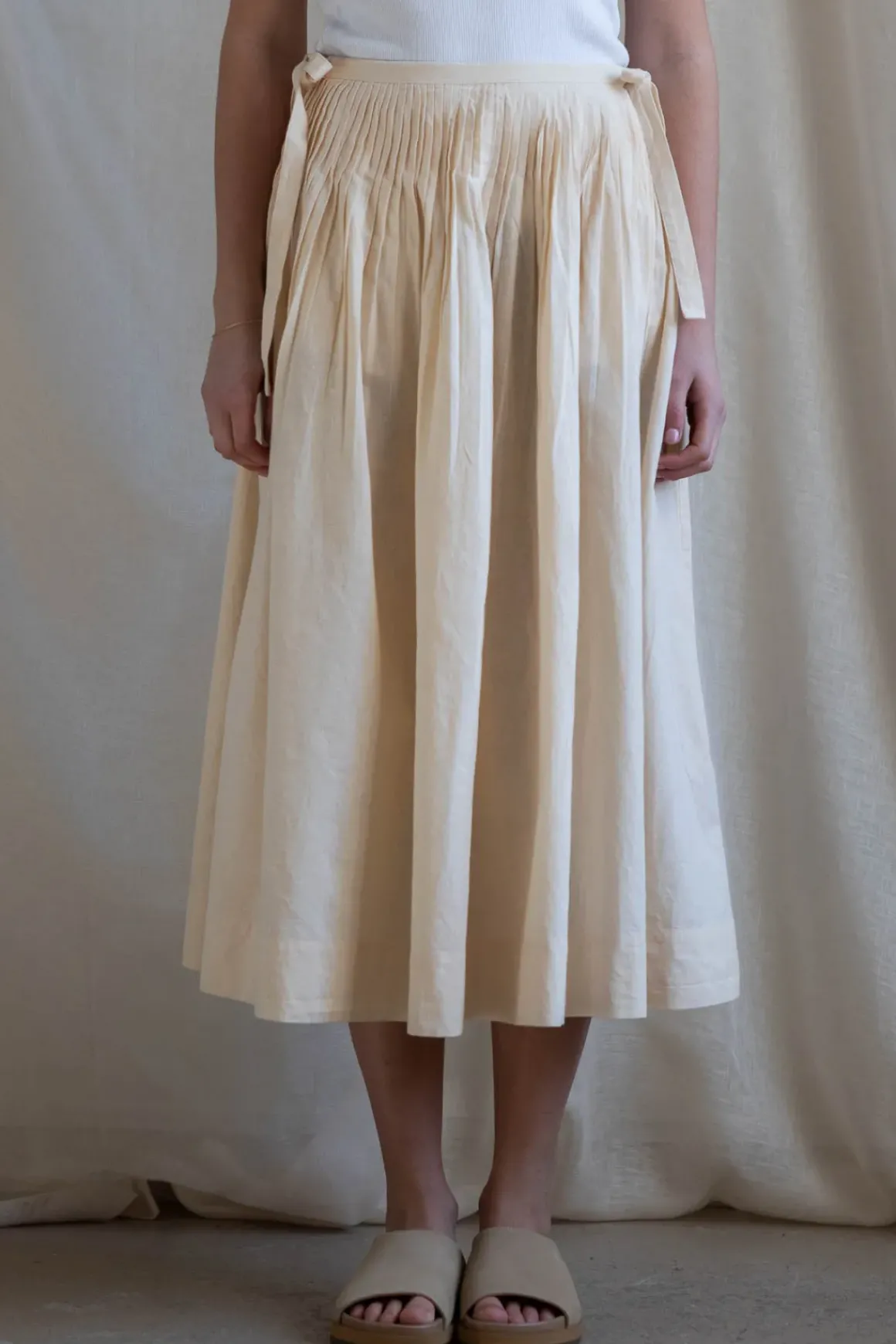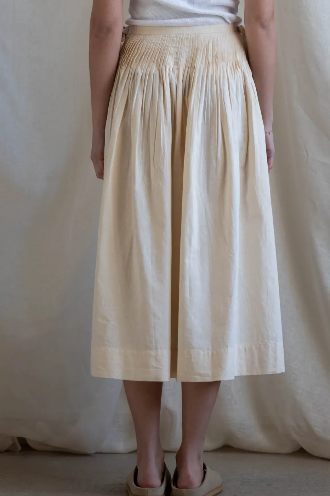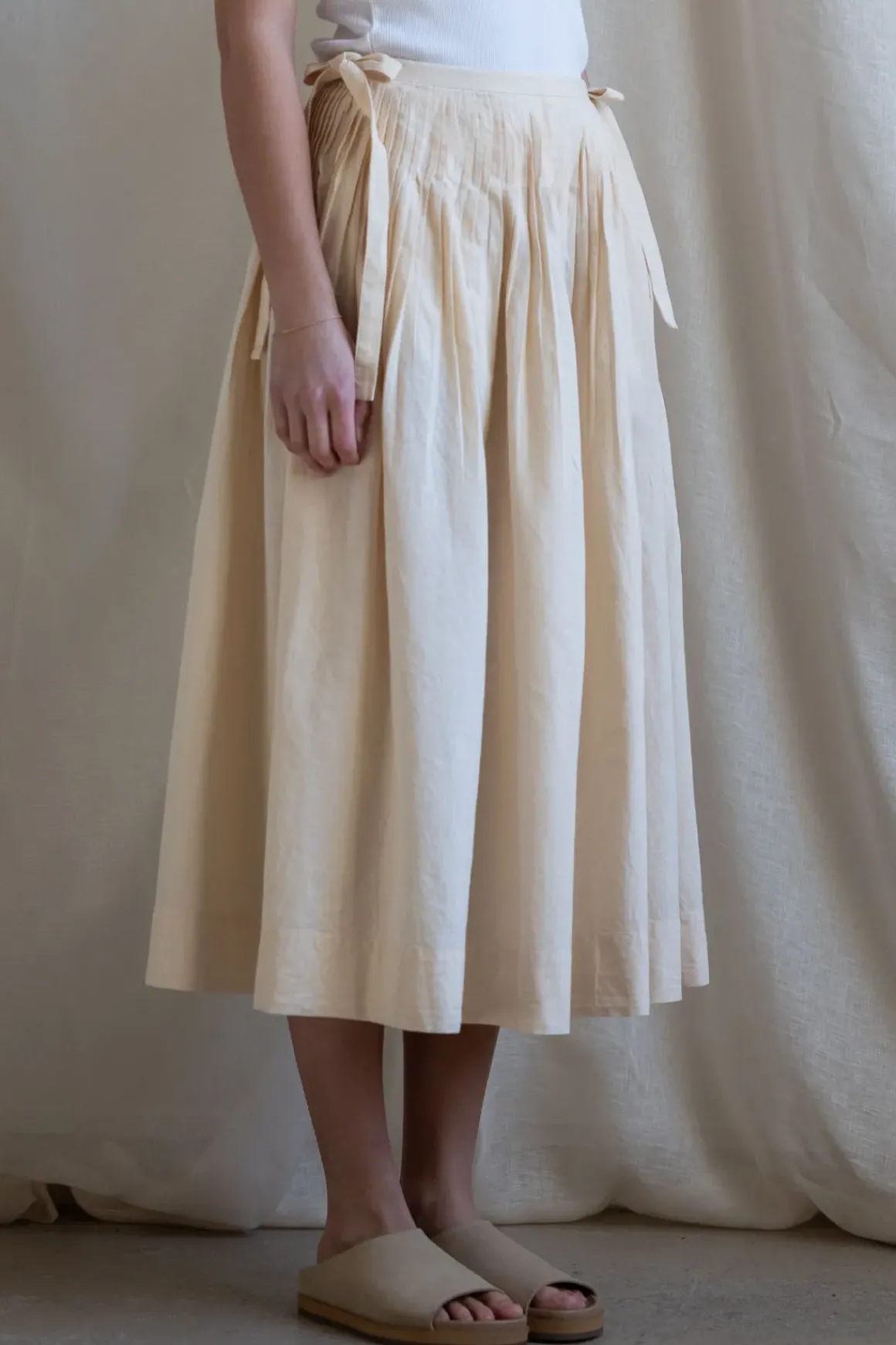 Pleated Cotton Linen Skirt fra TOAST er et lett og luftig skjørt i en myk blanding av bomull og lin. Smale pintuck-legg gir volum og struktur, mens den lange lengden skaper en flytende silhuett. Skjørtet lukkes med knytebånd i siden for en justerbar passform.