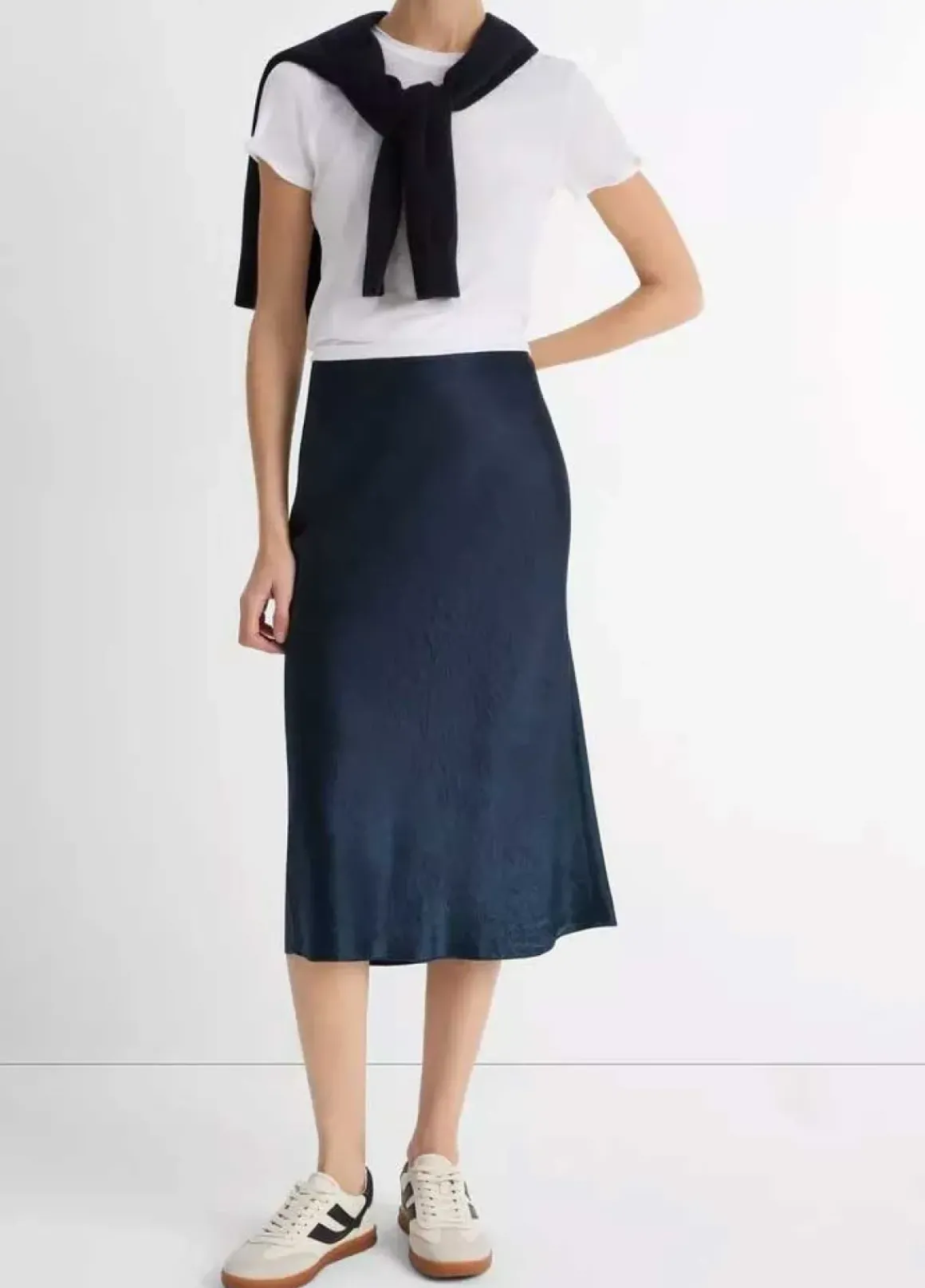 Skjørt – Slip Skirt Coastal Blue fra Vince. Et moderne slip-skjørt i skinnende japansk sateng. Slhuetten faller mykt langs kroppen og kan styles både opp og ned. Bruk det med matchende farger for et gjennomført uttrykk, eller skap en spennende kontrast med en avslappet sweatshirt.