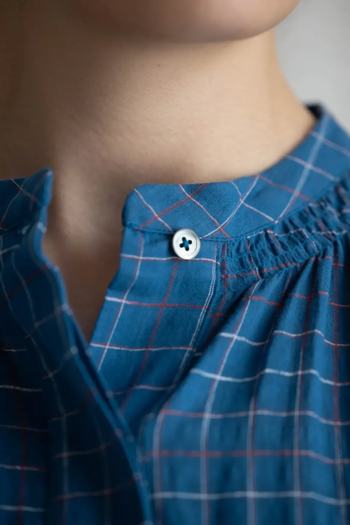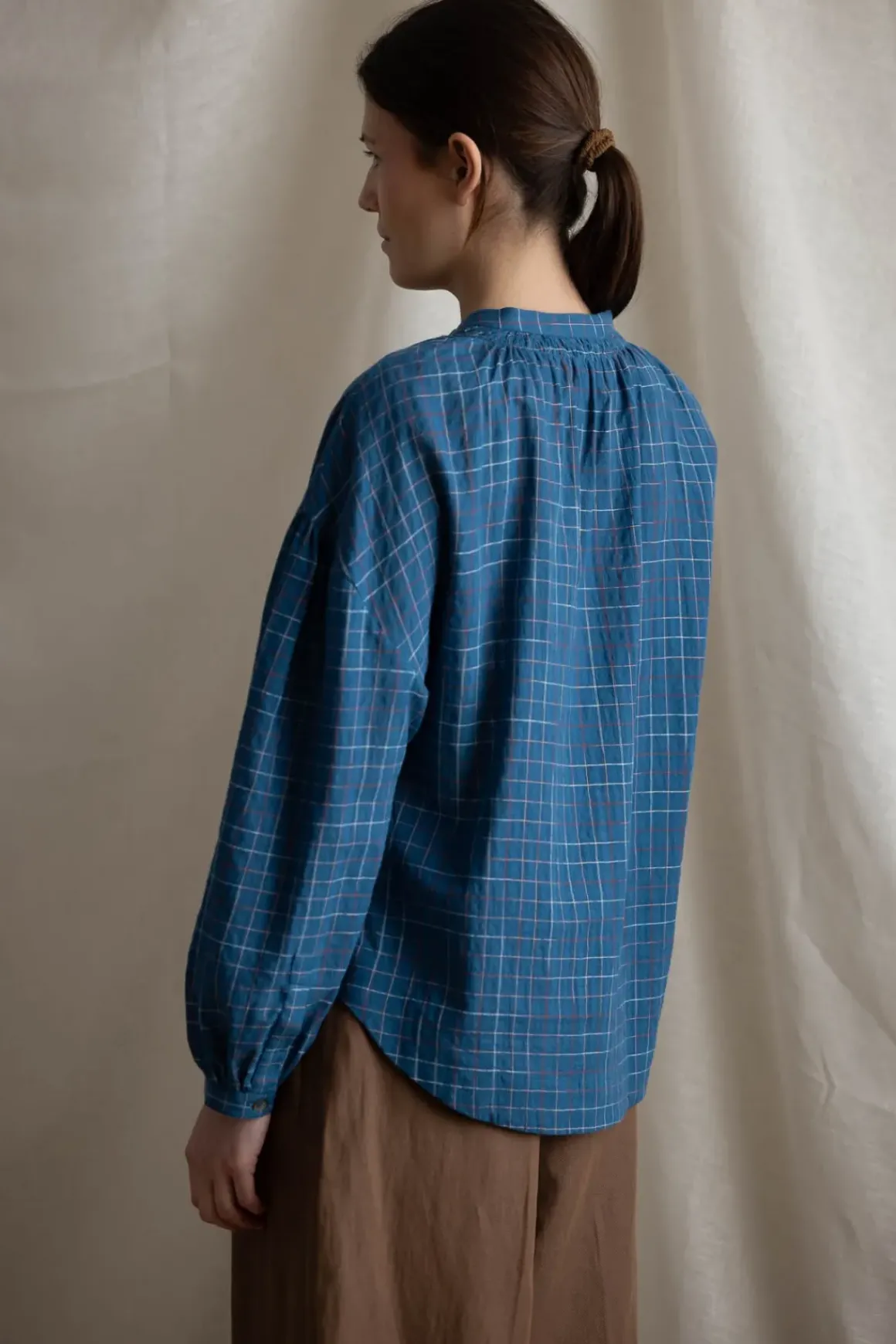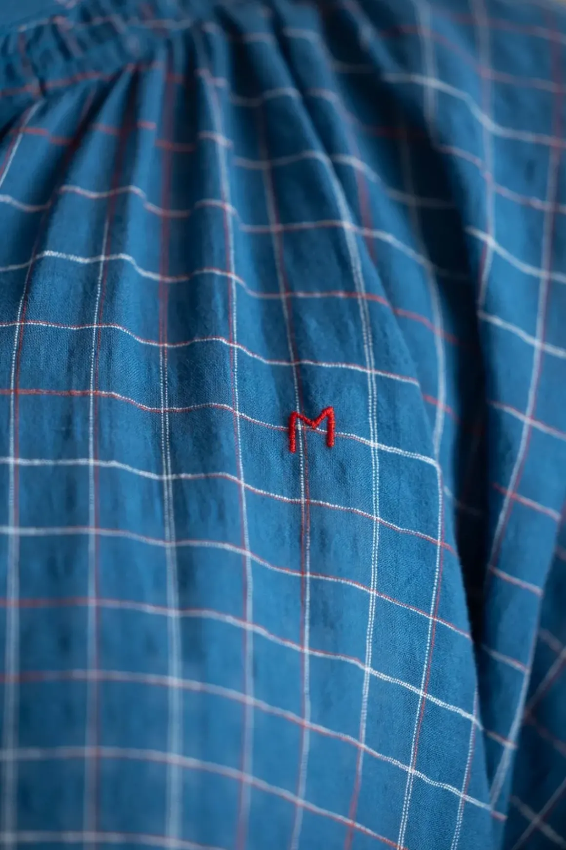 Skjorten Viviane fra det franske merket Moismont er lett og luftig med en avslappet passform. Den har lange ballongermer, en rund hals og en synlig knappestolpe med perlemorsknapper. De smale mansjettene gir ermene en fin fasong, og små splitter i sidene tilfører bevegelse. Stoffet er vevd for hånd, noe som gir skjorten en myk og naturlig struktur. Et behagelig plagg som passer like godt til varme sommerdager som til et avslappet lag-på-lag uttrykk.