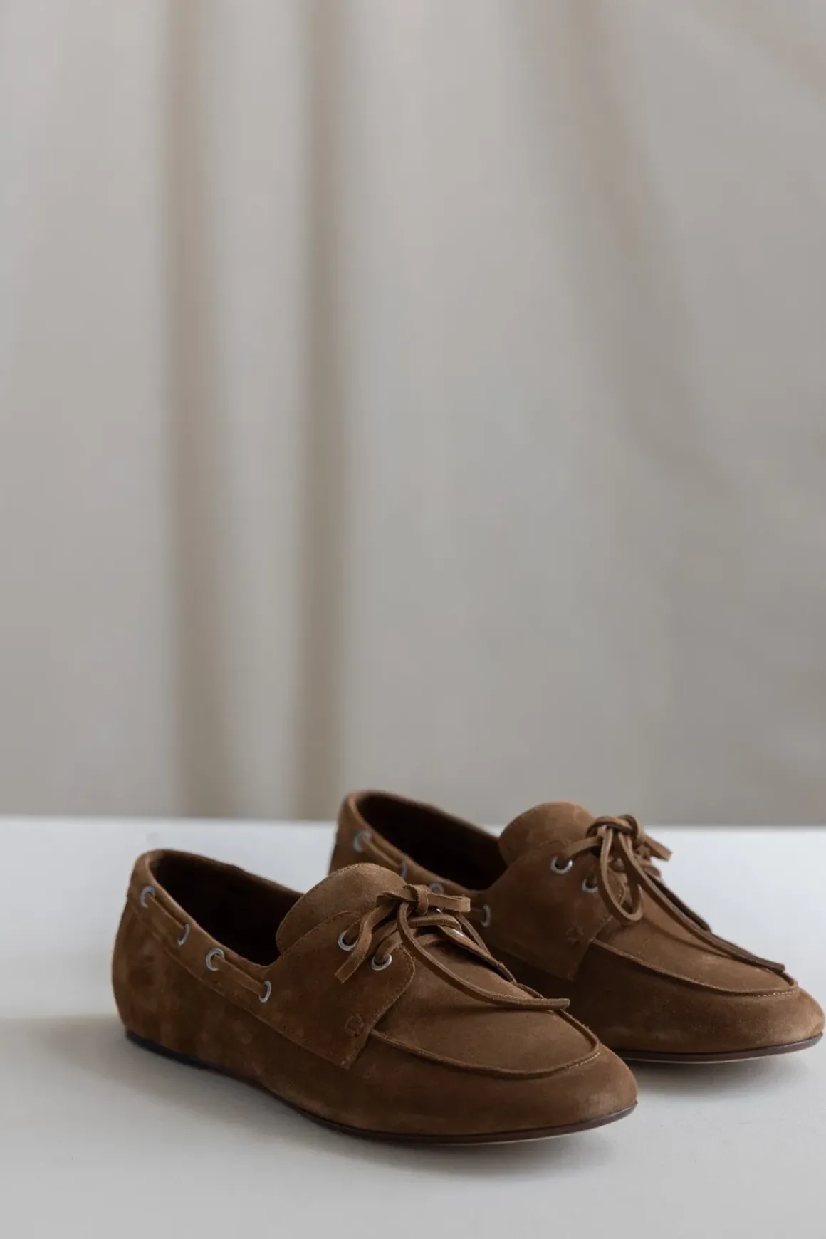 Sesongens it-sko fra Vince! Denne slip-on-modellen kombinerer klassisk seilersko-design med en moderne finish i mykt, semsket skinn. De rå kantene, de skjulte skinnsnøringene og den tynne skinnsålen gir et rent og avslappet uttrykk, perfekt for både by og ferie. Den varme bruntonen gjør skoene lette å kombinere med alt fra hverdagsantrekk til mer oppkledde plagg. En komfortabel favoritt med håndverksfølelse i hver eneste detalj