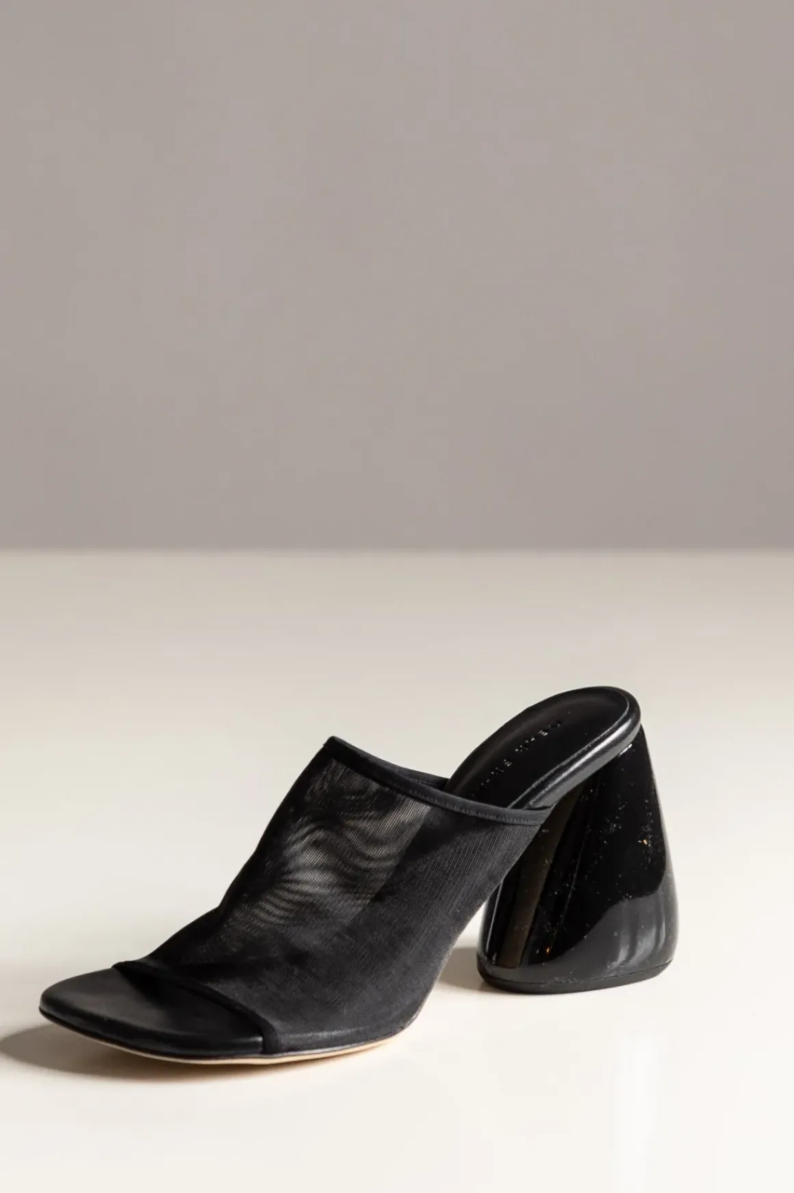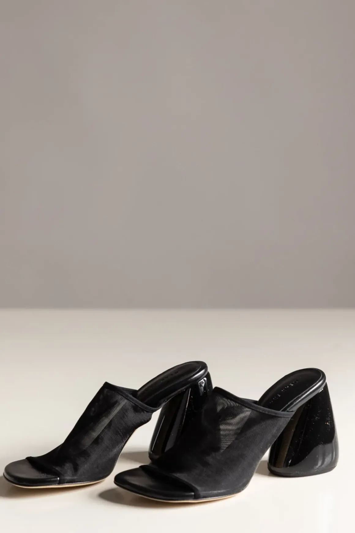 Helt rå mules fra britiske Dear Frances. Det transparente meshmaterialet over foten skaper en moderne kontrast til den robuste buede hælen. Med en tydelig 90-tallsfølelse er Drew-skoene like kule til jeans som til et mer pyntet antrekk. Disse kommer du til å ville bruke igjen og igjen!