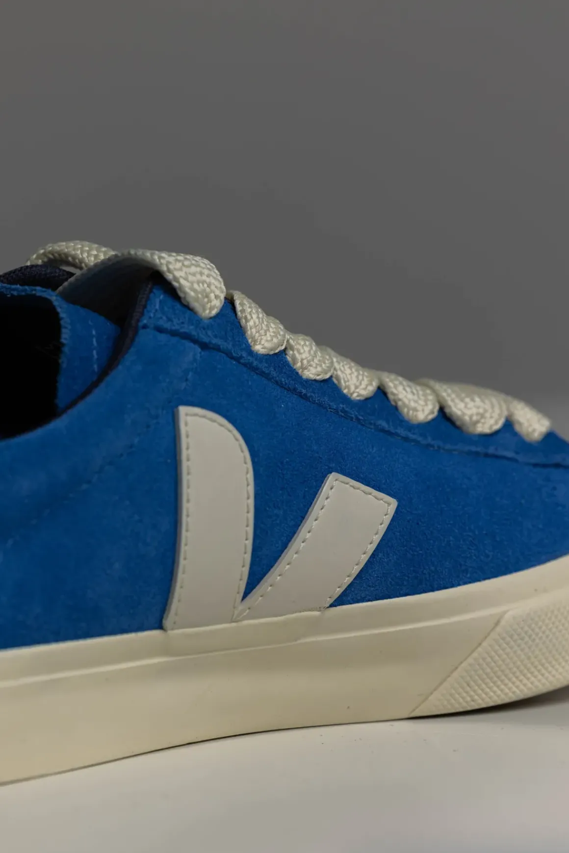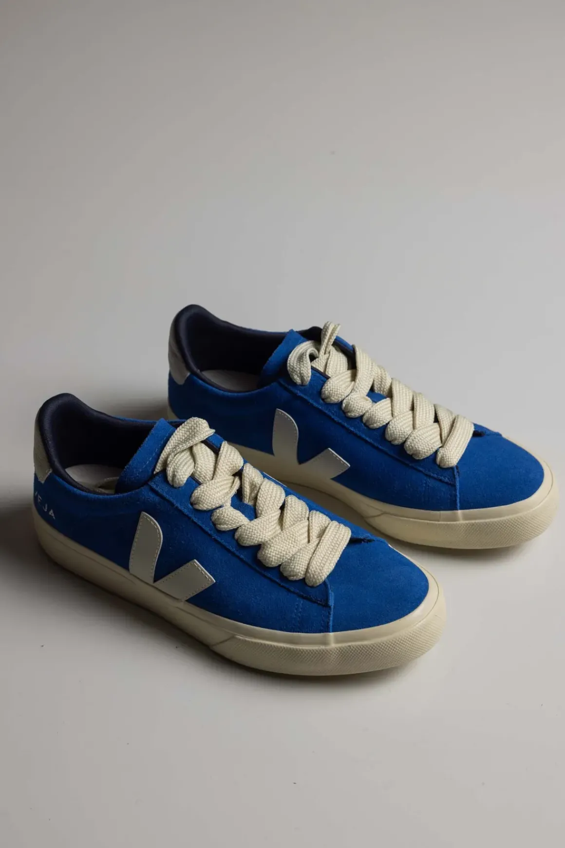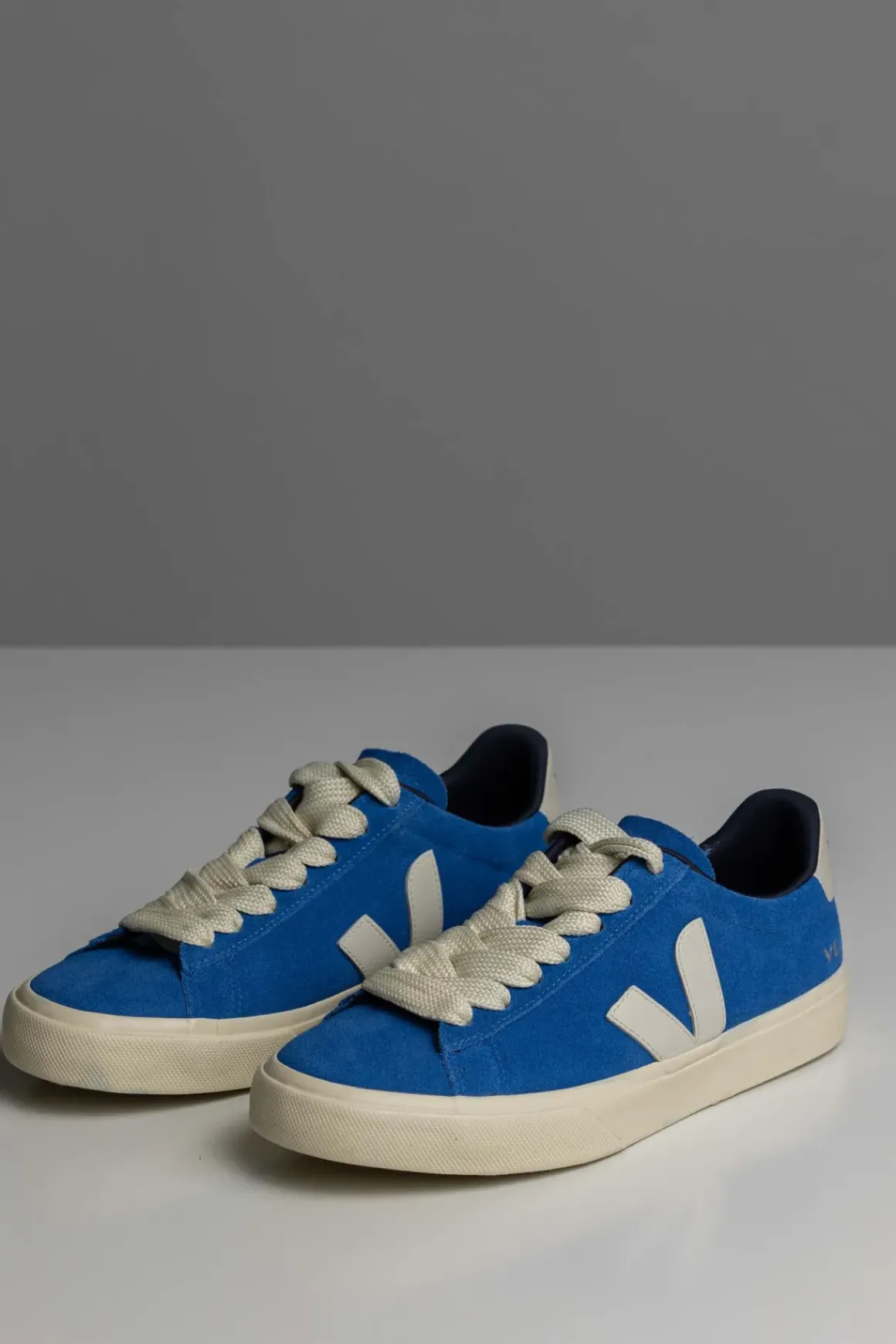 Veja Campo er en klassisk sneaker laget med mykt, semsket skinn fra Brasil, behandlet for fleksibilitet og vannavstøtende egenskaper uten PFC-er. Logo og såle er en innovativ miks av naturlig og resirkulert materiale, mens fôr og lisser er av 100% resirkulert polyester. Laget i Brasil med miljøvennlige prosesser, er dette et stilsikkert og bærekraftig valg.