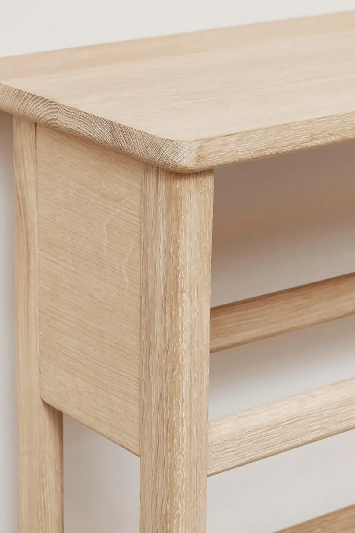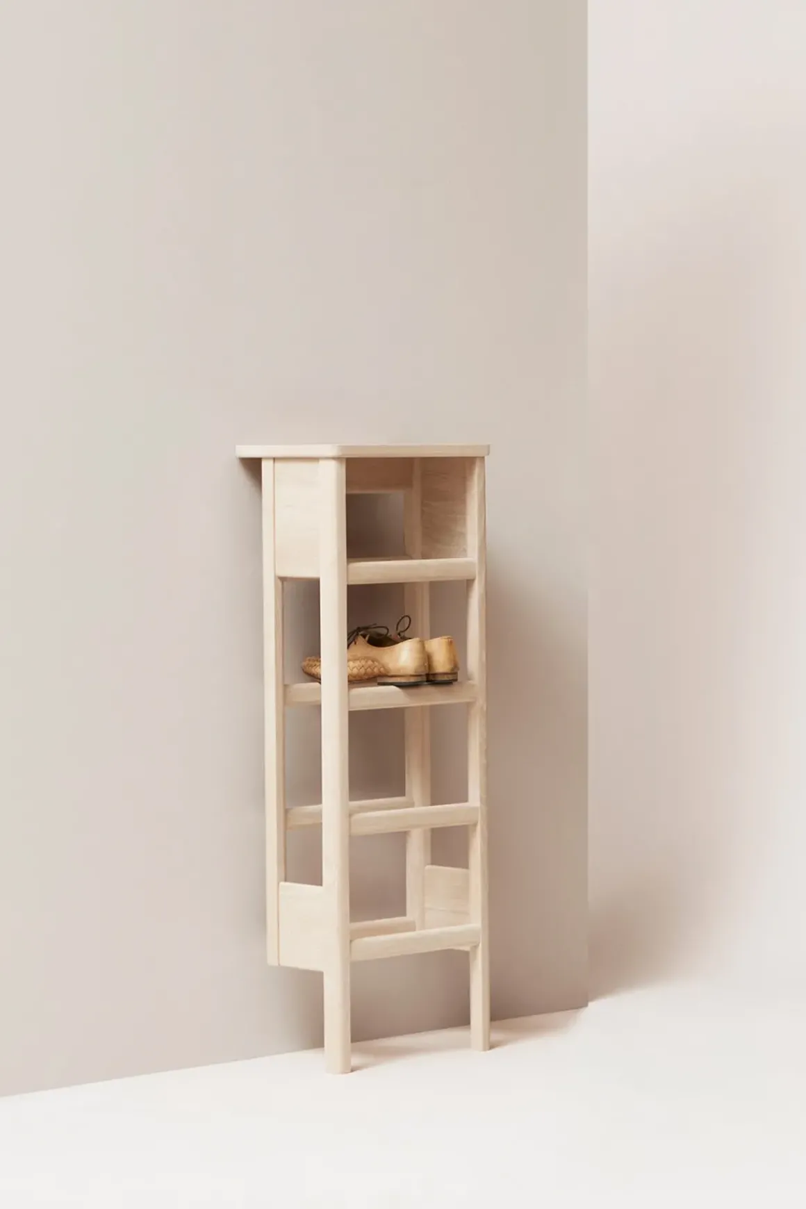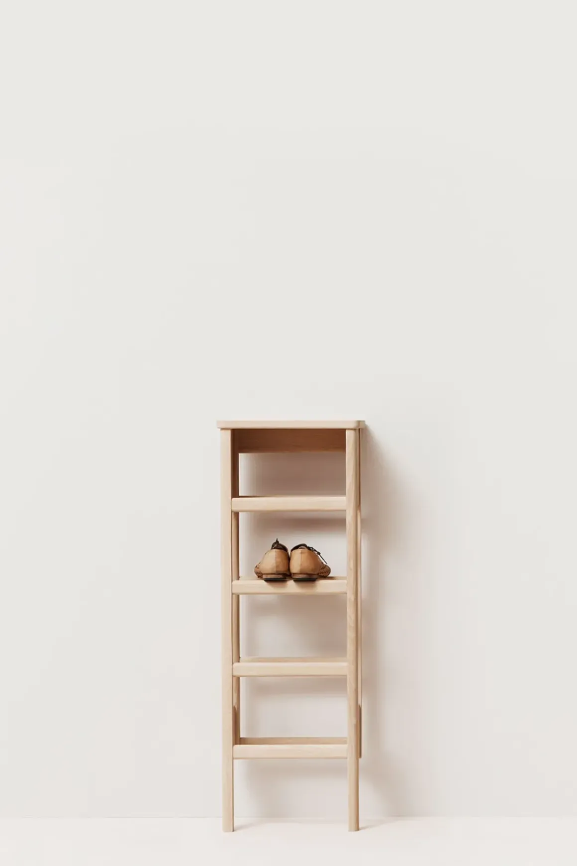 A Line skohylle fra Form u0026amp; Refine er både allsidig og praktisk. Designet av duoen Herman Studio, som kjennetegnes av balanserte kombinasjoner mellom funksjonelt og overraskende design. A Line Shoe Rack er en liten, men harmonisk utformet skohylle og konsollbord i ett, som bidrar til å utnytte plassen optimalt i gangen, på vaskerommet eller på soverommet. Hver hylle har plass til ett par sko og fire par sko totalt. I tillegg kan man bruke skohyllen som konsollbord, så man kan legge fra seg nøkler og andre småting eller eventuelt en bordlampe. Vi anbefaler å montere skostativet til veggen med metallbrakettene som følger med, men skostativet kan også lene seg mot veggen uten å monteres. Det tidløse designet vil skli rett inn i alle interiørstiler. Skohyllen finnes også i en større versjon, og i oljet eik.