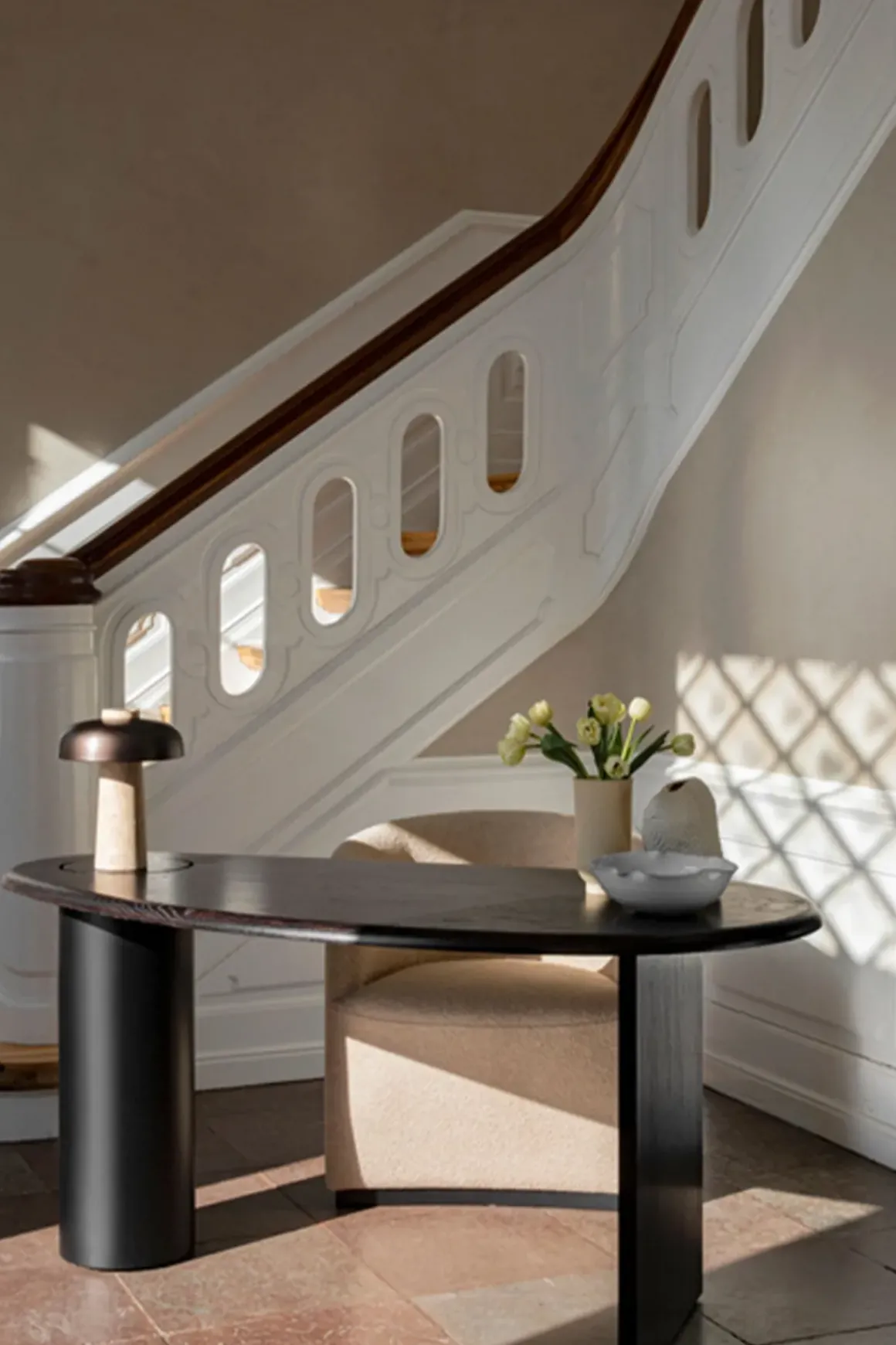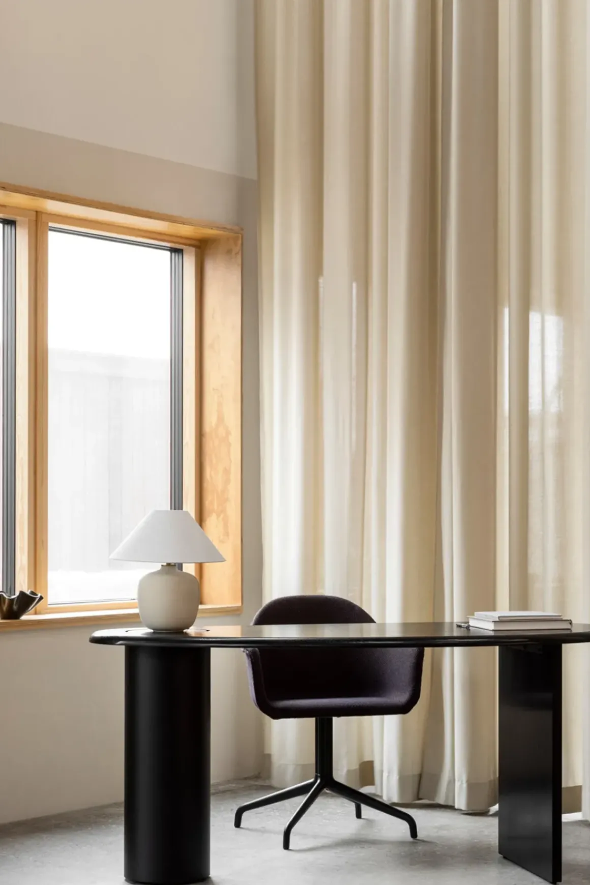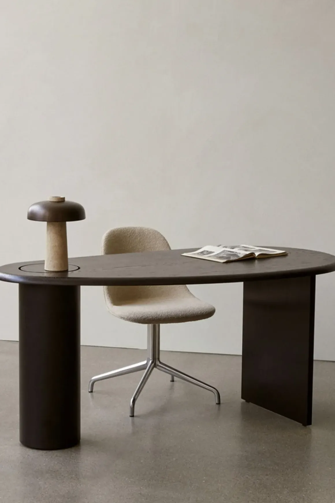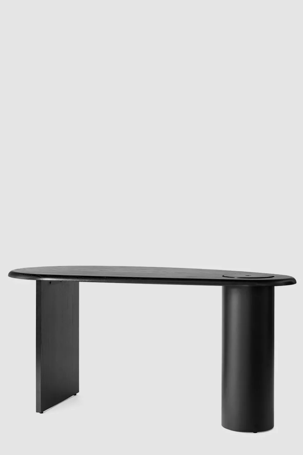 Hvem har sagt at et hjemmekontor må se kjipt ut? Eclipse Desk skrivebord i mørkoljet eik er en skulpturell og gjennomtenkt variant av det praktiske og vante møbelet. Eclipse Desk er en feiring av materialer og form. Oppkalt etter sin konkave og konvekse form som ligner den opplyste passasjen av himmellegemer på himmelen, har Fred Rigby designet en særegen, asymmetrisk silhuett. Skrivebordet er tilgjengelig i massiv eik, mørkoljet eik og naturlig, oljet eik med svartmalte ben. Bordplaten er utstyrt med et lokk som kan løftes opp og benyttes som en skjult lagringsplass i den støttende stålsøylen, noe som sikrer at skrivebordsplassen forblir fri for rot. Eclipse er designet for å stå alene som et midtpunkt i rommet eller plassert langs en vegg for et mer konvensjonelt hjemmekontor. Uansett vil skrivebordets spennende forme fungere som et blikkfang.