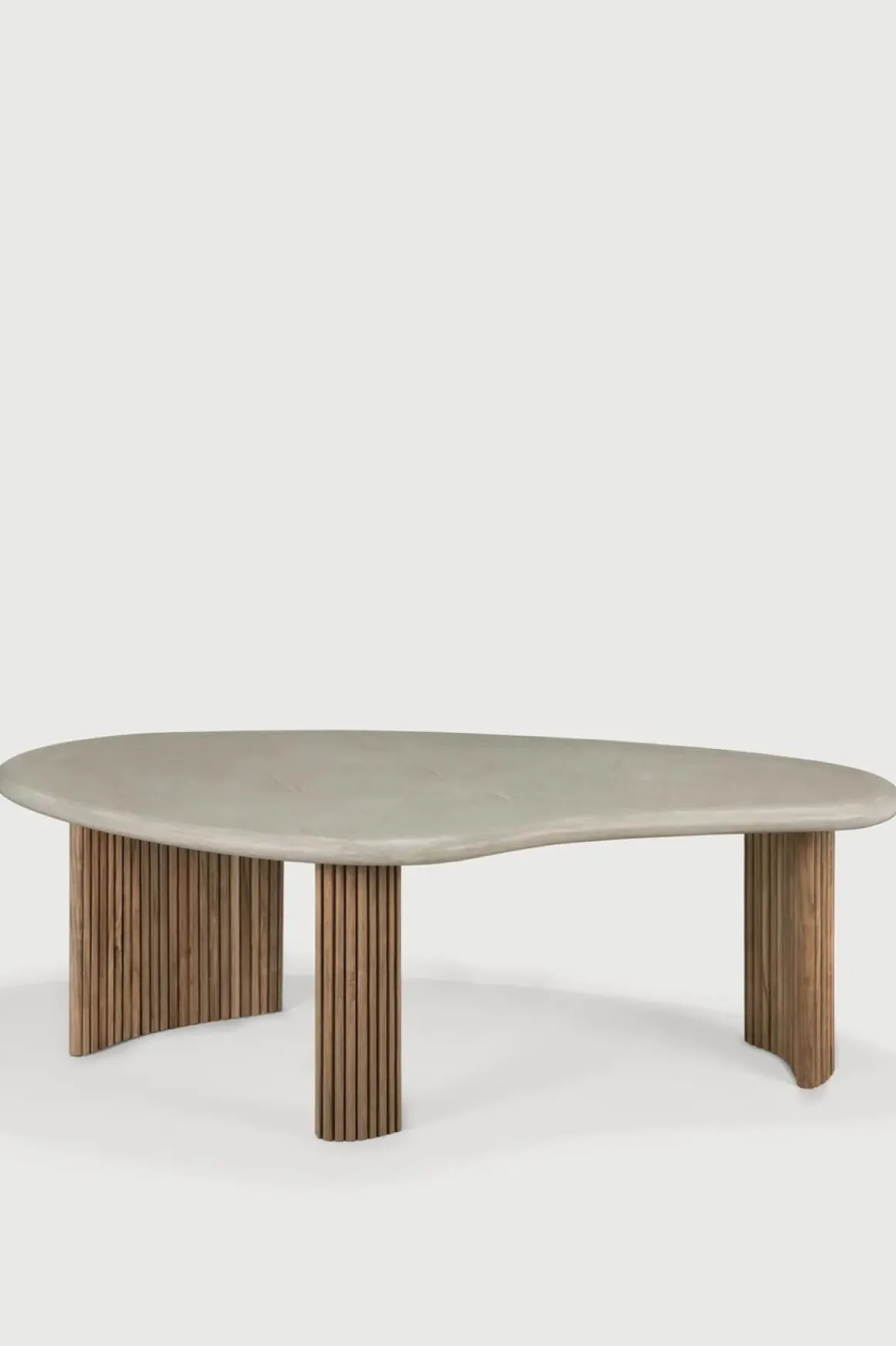 Sofabordet Boomerang fra Ethnicraft kombinerer lekne, runde former med en stilren, foldet base. Inspirert av den populære innendørsvarianten, har dette bordet en håndbearbeidet betongplate som hviler på en base av gjenvunnet, solid teak. Denne balanserte materialmiksen gir ikke bare et unikt uttrykk, men også en slitesterk løsning for både innendørs og utendørs bruk. Bruk de to størrelsene sammen for en dynamisk oppstilling, eller la bordet stå alene som et blikkfang. Med sine gjennomtenkte proporsjoner og naturlige materialer skaper Boomerang en innbydende atmosfære i ethvert rom eller uterom.