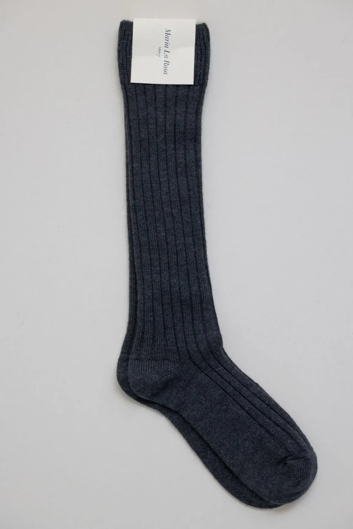 Ribbesokker fra italienske Maria La Rosa, strikket i en myk og slitesterk ullblanding med et klassisk vrangbordsmønster som strekker seg til rett under kneet. Sokkene er et luksuriøst tilskudd til sokkeskuffen du vil elske å gå i dag etter dag.