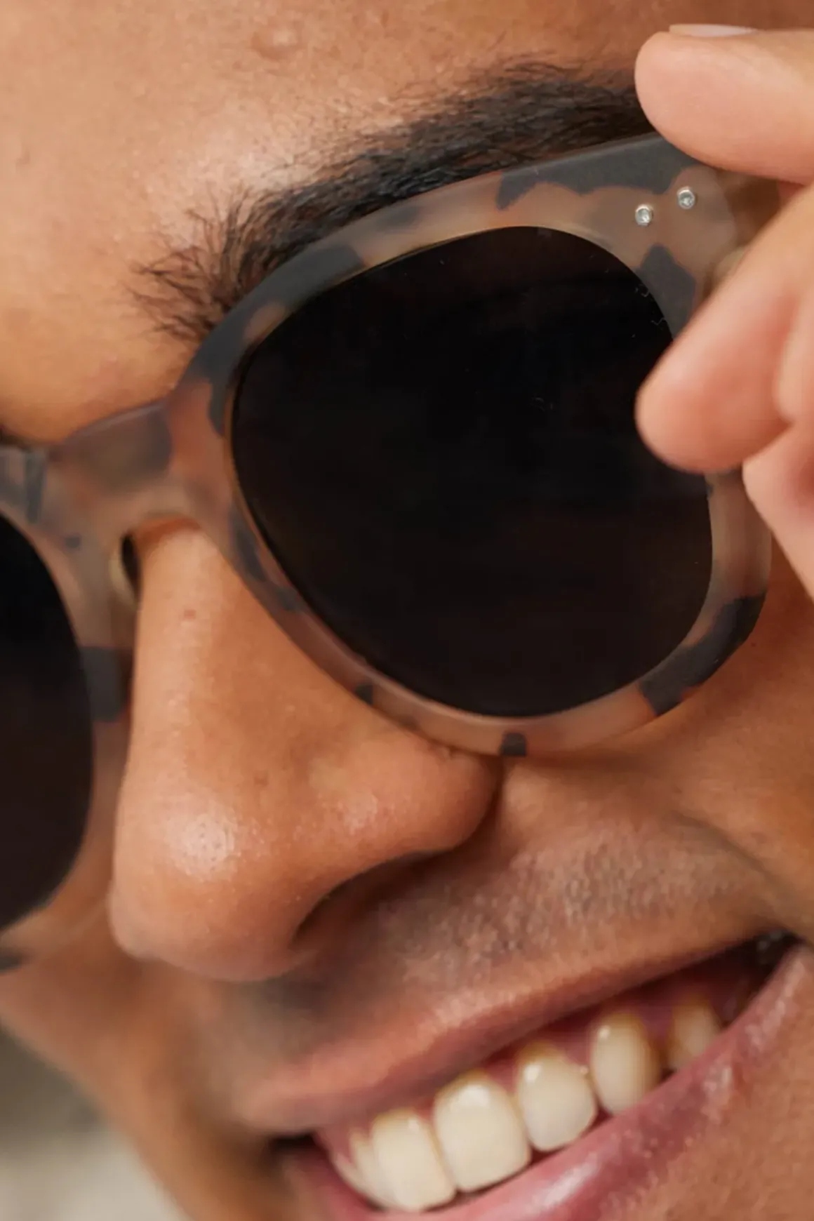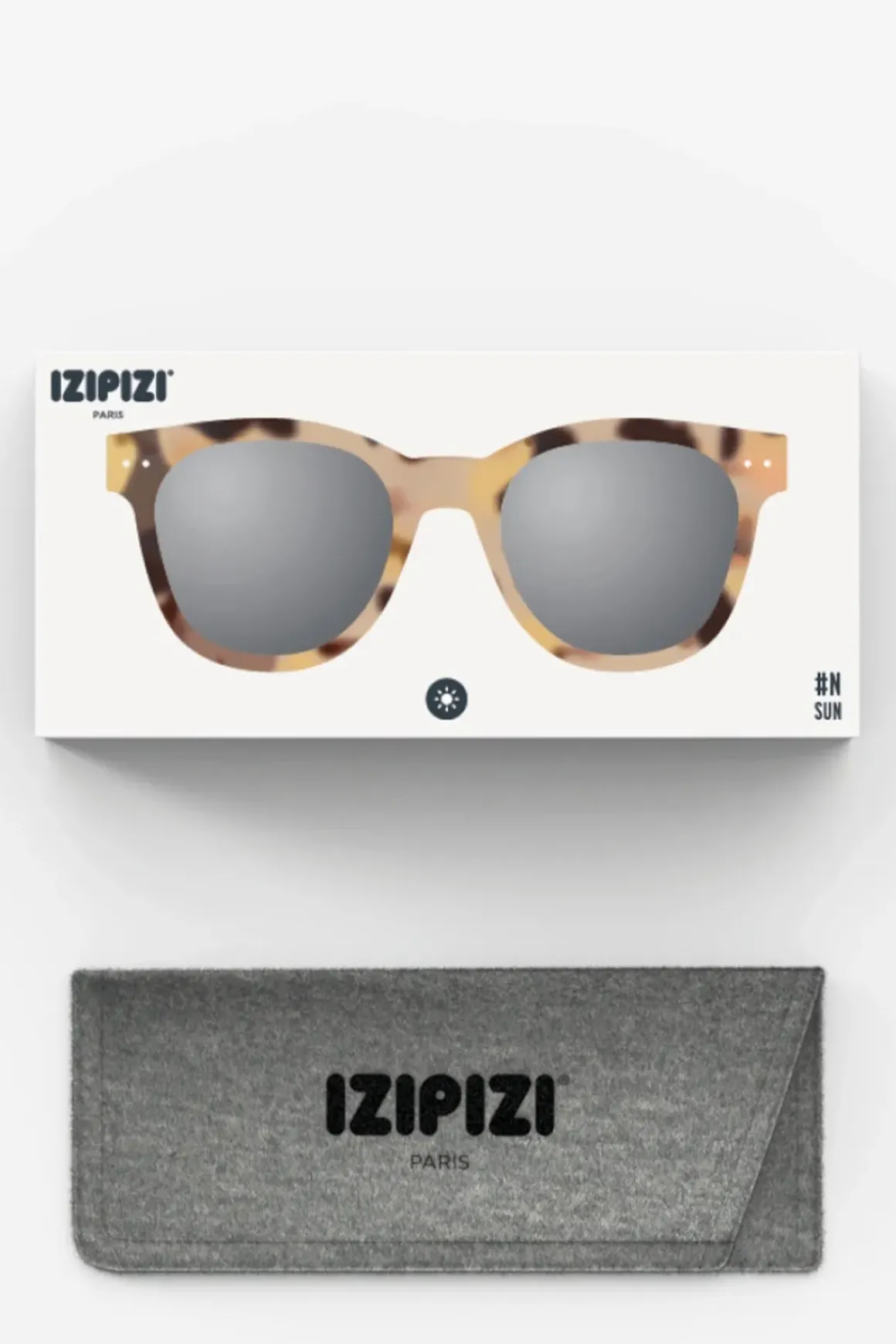 Oversized, runde solbriller uten styrke fra det det populære, franske merket Izipizi. #N solbrillene har et tidløst design, er fleksible og komfortable, og har fjærhengsler som tilpasser seg alle ansiktsformer og størrelser. #N er produsert i et materiale fra ricinusolje som gjør dem både lette og robuste – og gir garantert komfort med en fløyelsmyk finish. Beskytter mot gjenskinn og 100% UV-stråling. Alle Izipizi-briller kommer med et etui (pose) i lysegrå filt som beskytter mot riper og støv. Vi anbefaler å kjøpe et hard etui i tillegg hvis du ofte har brillene med deg i veska, på reise eller lignende, slik at de ikke blir skadet i transport. Unisex modell.