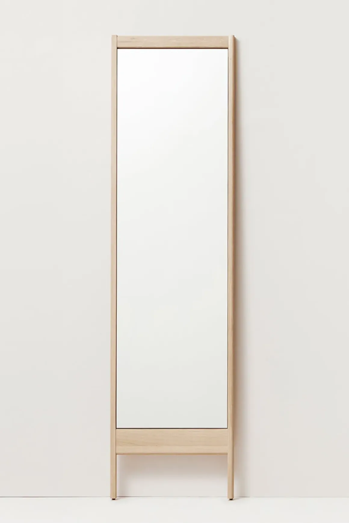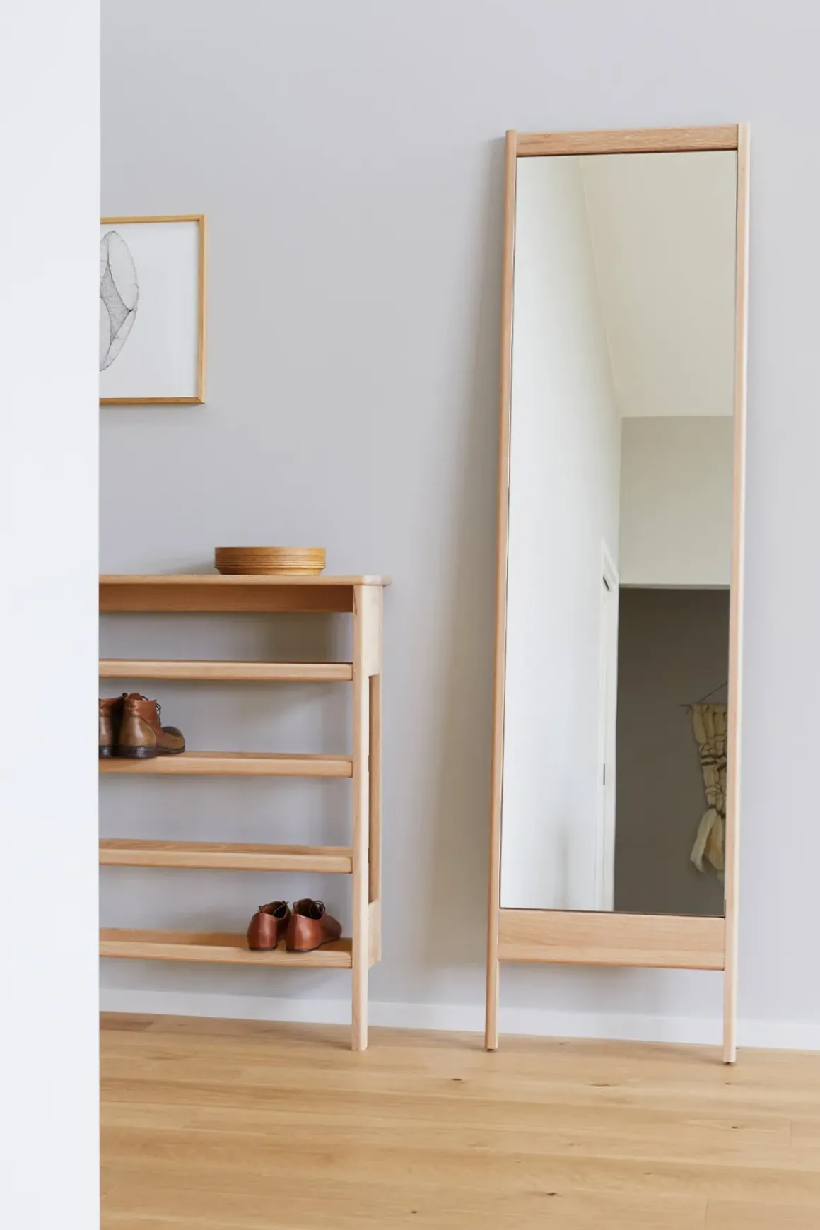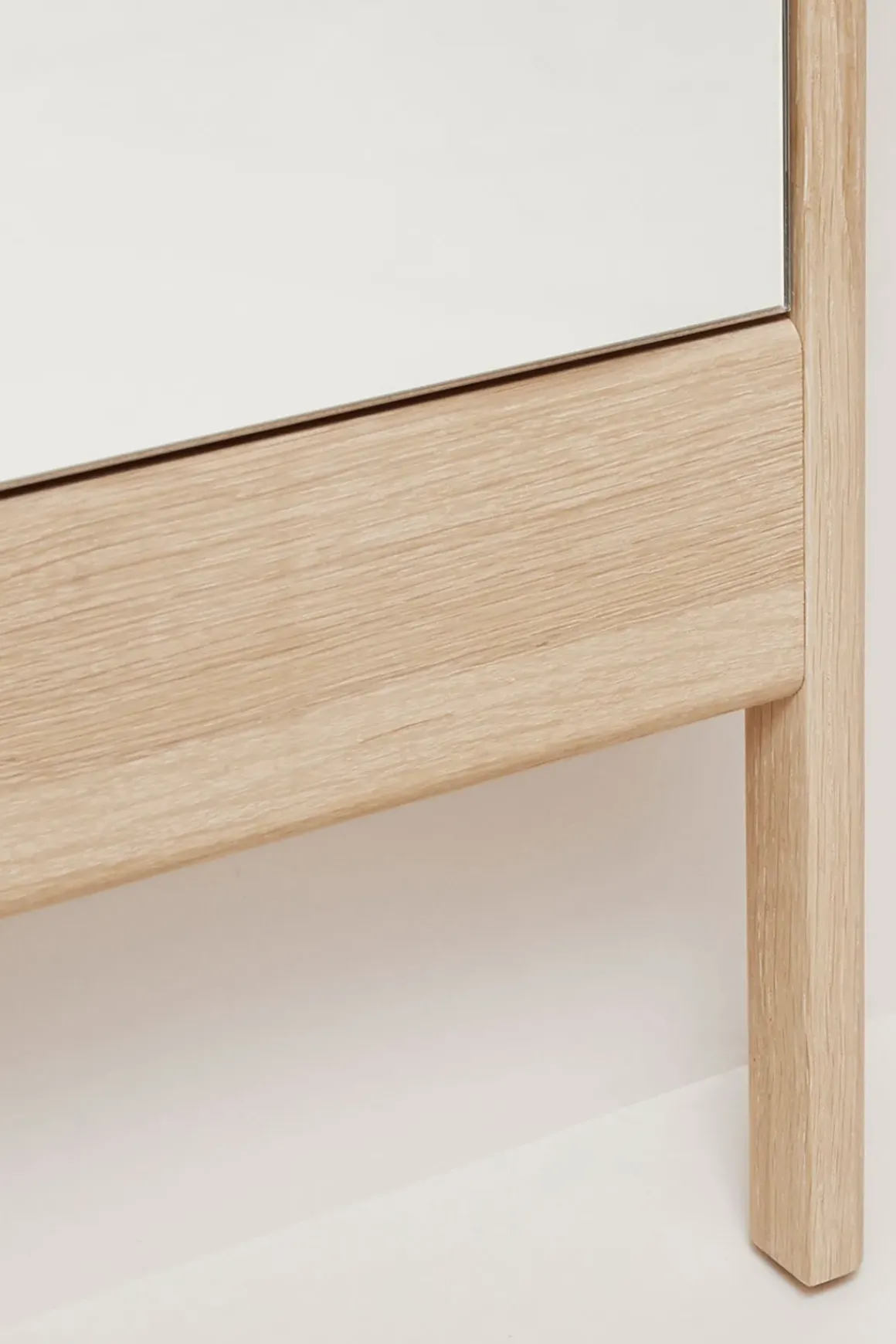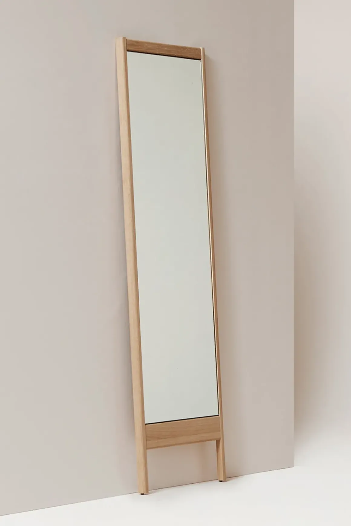 A Line Oak speilet fra Form and Refine er et nydelig, frittstående speil i hvitoljet eik som vil passe inn over alt. Speilet har et minimalistisk design og kommer ikke med veggfeste, men lenes bare opp etter veggen og kan derfor fint flyttes rundt i huset. Designet er en kombinasjon av praktisk enkelthet og nydelig håndverk og vil derfor aldri gå av moten. De rombe-formede beina er en kul detalj som gjør speilet mer sofistikert og klassisk.