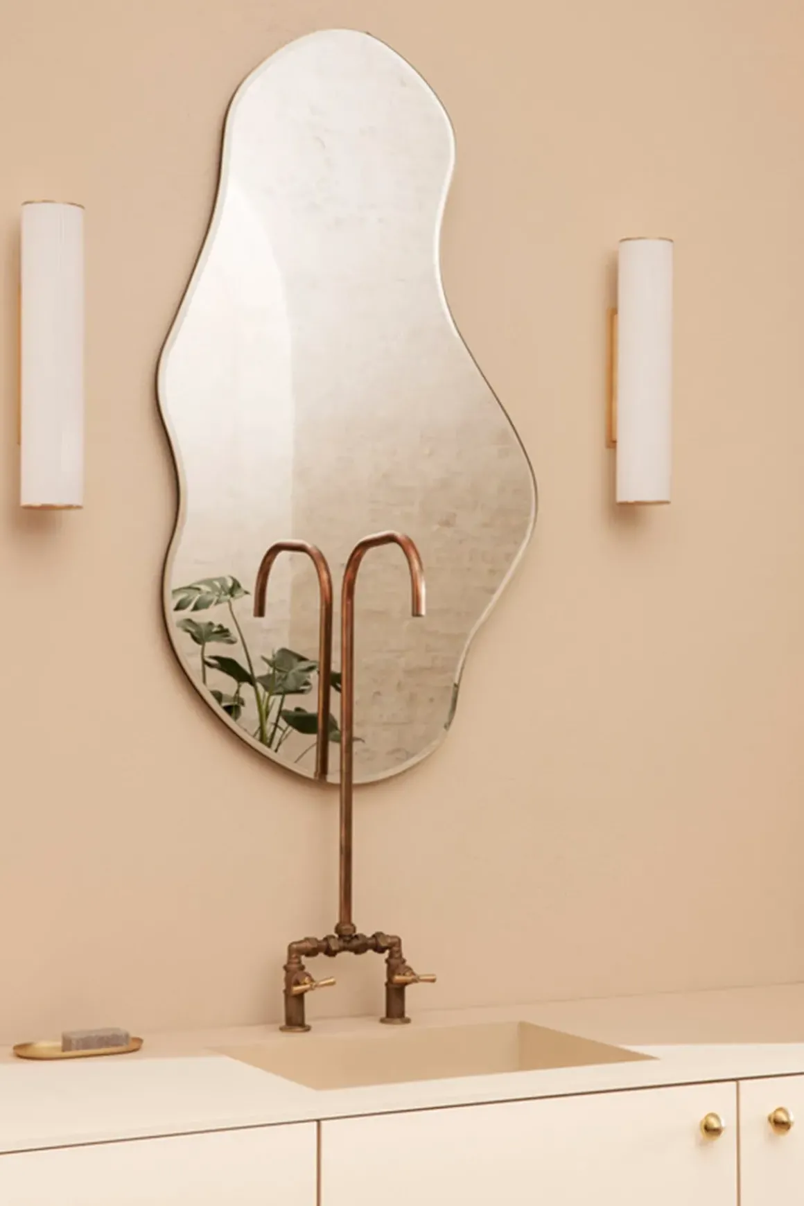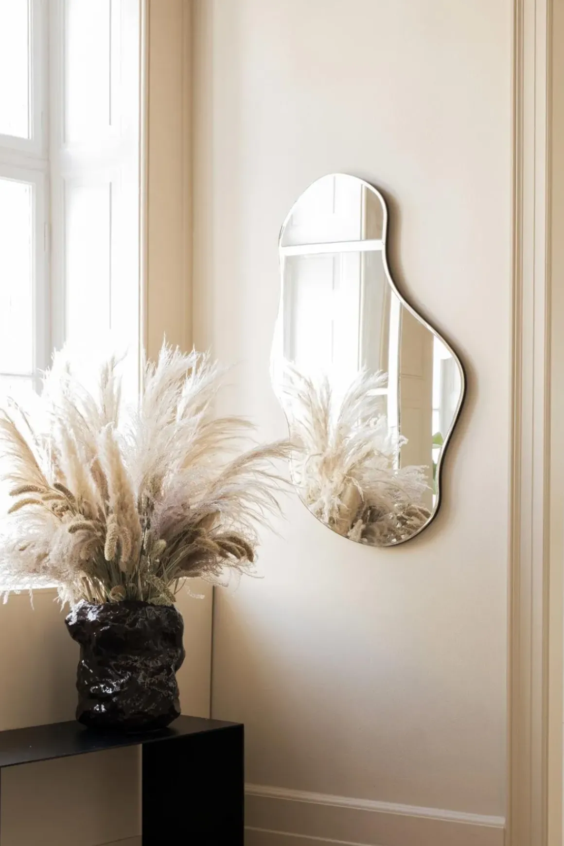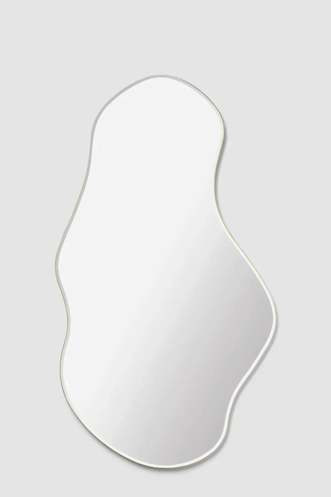 Det populære Pond speilet fra Ferm Living utforsker organiske former for klassiske speil med metallramme. Inspirert av frittflytende bevegelser av vann, inviterer speilet åpne og flytende former inn i hjemmet ditt. De buede kantene er rammet inn med en metallkant i messing, og speilet kan henges flere måter, slik at du kan finne den perfekte passformen for rommet og dine behov. Virkelig et unikt speil som vil sette et personlig preg på hjemmet ditt. Perfekt i stuen, på soverommet eller i gangen.