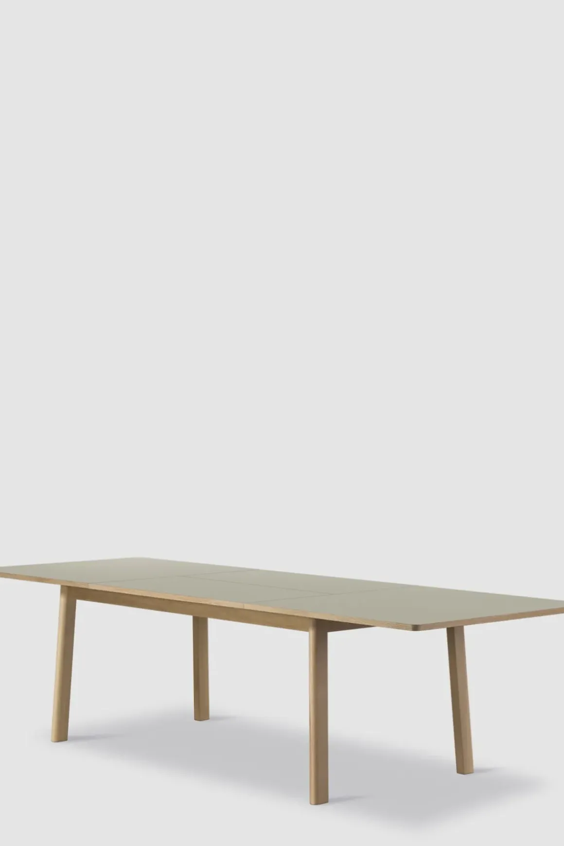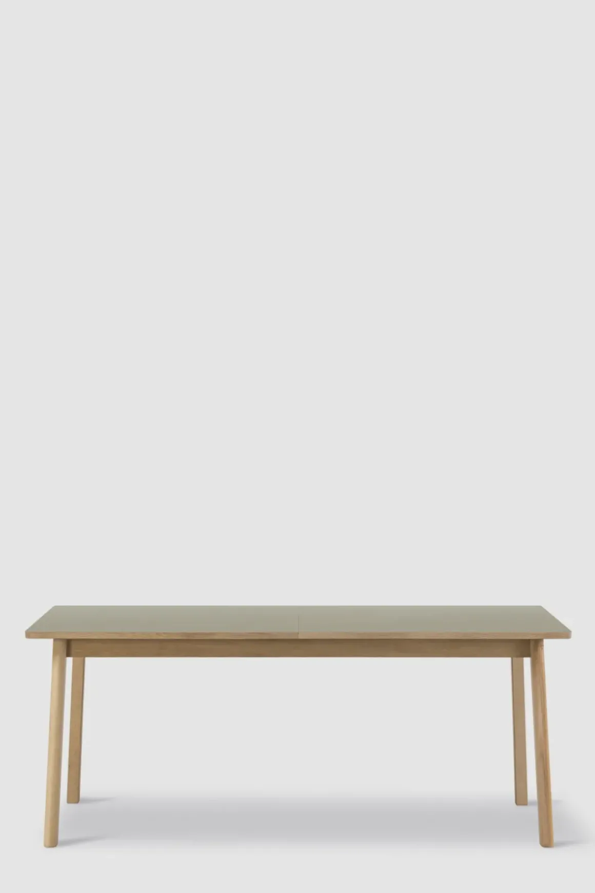 Ana spisebord med såpebehandlet eik og almond/grå laminert bordplate fra Fredericia kombinerer tidløs design, solid håndverk og fleksibel funksjonalitet som gjør bordet det perfekte valget for et samlingspunkt i stuen eller på kjøkkenet – fra den store familiemiddagen til jobbmøter. Bordet er laget i massiv eik med nano laminat og har innebygget ileggsplate på èn meter. Når ileggsplaten ikke er i bruk gjemmes den enkelt under bordplaten. Genialt! Bordet er stødig og romslig med plass til 4 eller 8 rundt bordet når det er trukket helt ut. Ana er designet av Arde som er et dansk designstudio basert på en helhetlig forståelse av produktdesign og vilje til stadig å presse grenser. Arde har som mål å forbedre brukeropplevelsen og skape produkter med minimal miljøpåvirkning. DET liker vi på Bolina.
