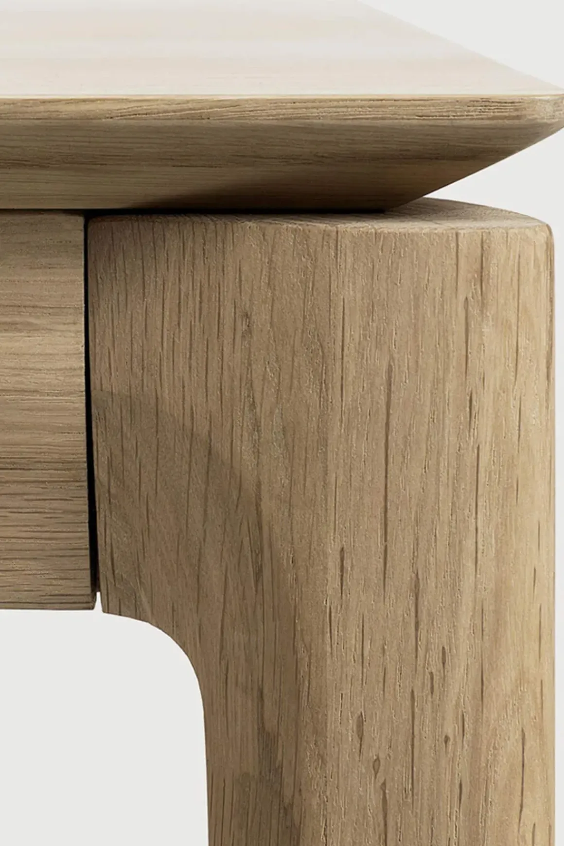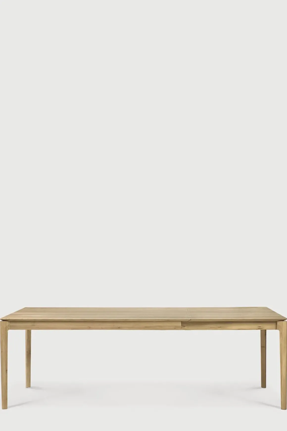 Bok spisebord i solid eik med ileggsplate fra belgiske Ethnicraft, designet av Alain van Havre. Det forlengbare bordet måler 160cm og 240cm med ileggsplaten, perfekt hvis du har flere til bords en dag. Bordet har et luftig og minimalistisk uttrykk med en solid konstruksjon. Designet er enkelt, med komplekse detaljer som gjør det tidløst og personlig. Ethnicraft har fokus på å bruke europeisk eik i høy kvalitet og lar materiale komme til sin rett ved å beholde de naturlige varisasjonene og teksturene i treet. Dette er et bord du kan glede deg over i mange år fremover og som vil passe i alle hjem.