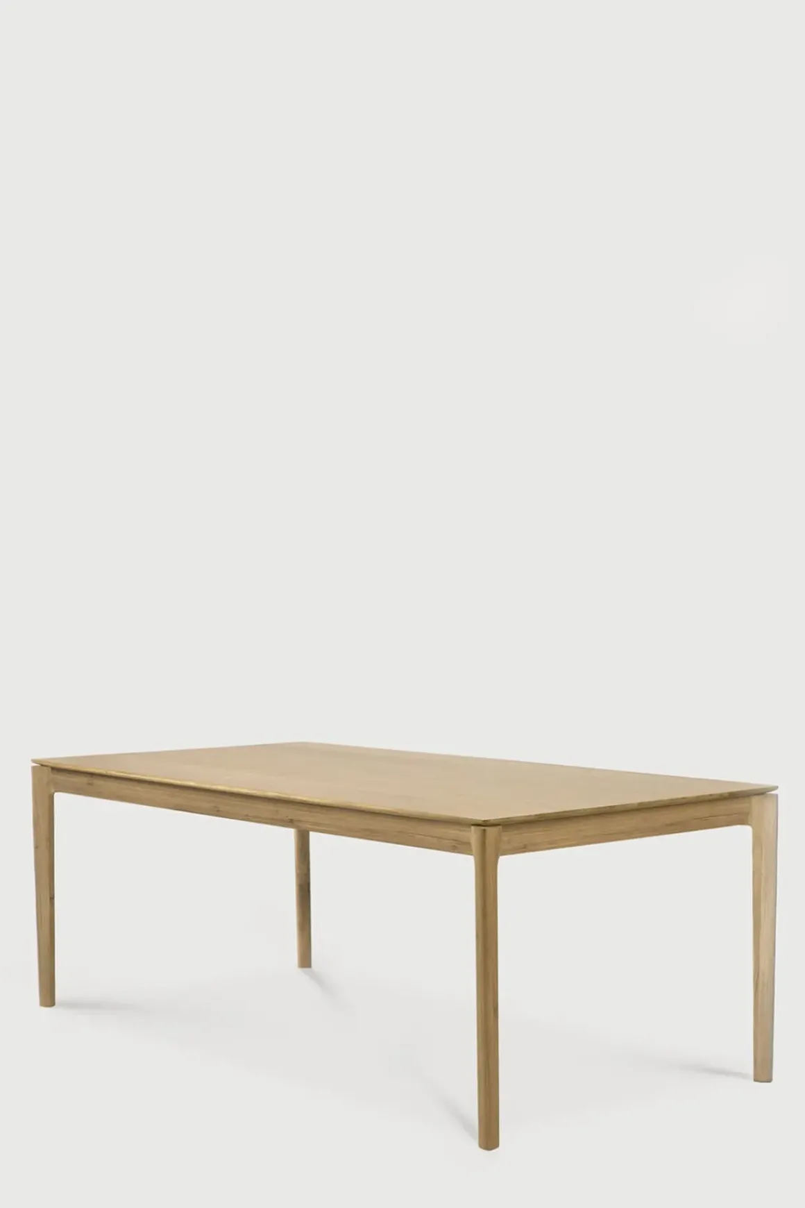 Bok spisebord i solid, oljet eik fra belgiske Ethnicraft, designet av Alain van Havre. Bordet kommer i flere lengder og varianter slik at du kan finne det perfekte bordet for deg og ditt hjem. Bok har et luftig og minimalistisk uttrykk med en solid konstruksjon. Designet er enkelt, med komplekse detaljer som gjør det tidløst og personlig. Ethnicraft har fokus på å bruke europeisk eik i høy kvalitet og lar materiale komme til sin rett ved å beholde de naturlige varisasjonene og teksturene i treet. Dette er et bord du kan glede deg over i mange år fremover og som vil passe i alle hjem.