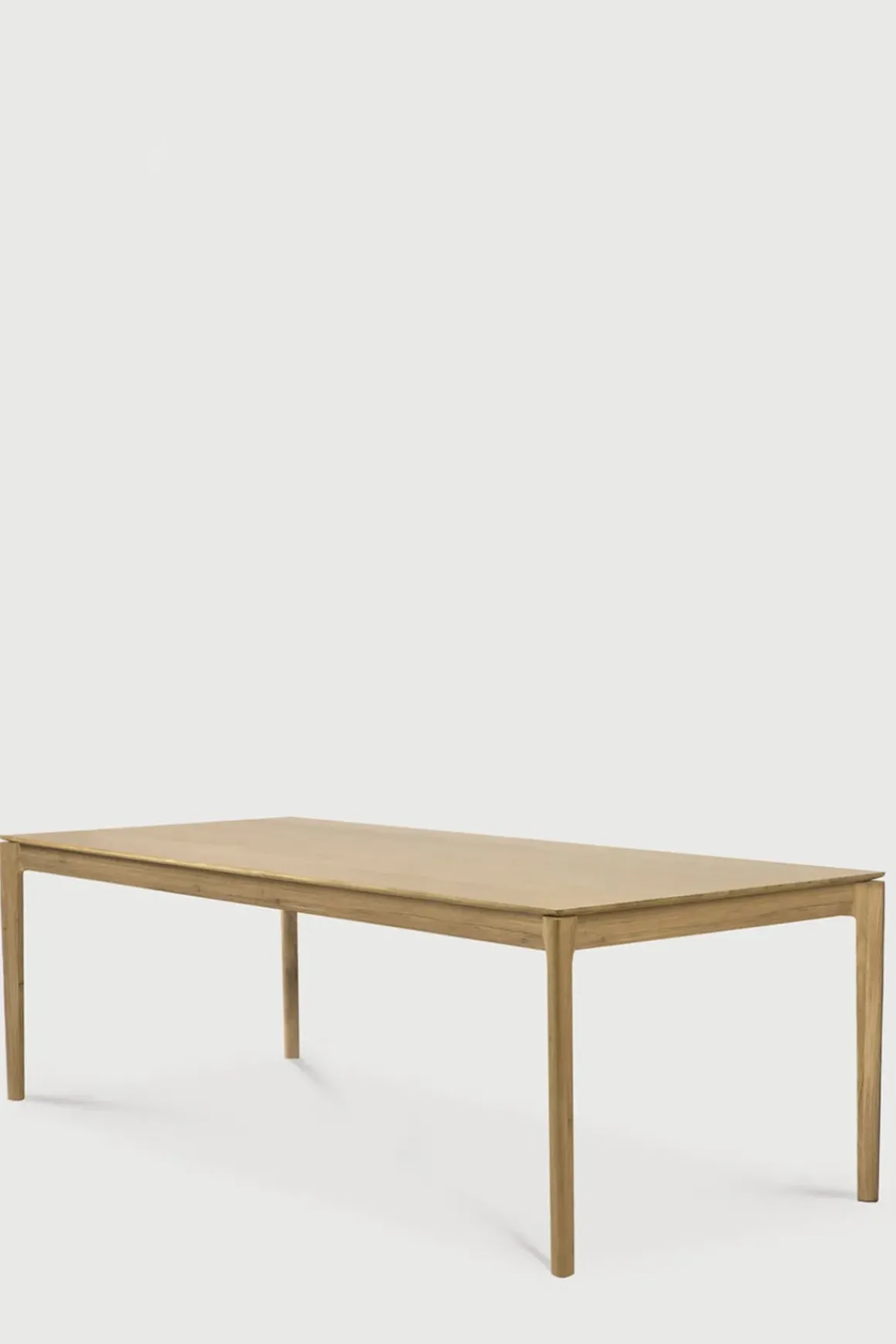 Bok spisebord i solid, oljet eik fra belgiske Ethnicraft, designet av Alain van Havre. Bordet kommer i flere lengder og varianter slik at du kan finne det perfekte bordet for deg og ditt hjem. Bok har et luftig og minimalistisk uttrykk med en solid konstruksjon. Designet er enkelt, med komplekse detaljer som gjør det tidløst og personlig. Ethnicraft har fokus på å bruke europeisk eik i høy kvalitet og lar materiale komme til sin rett ved å beholde de naturlige varisasjonene og teksturene i treet. Dette er et bord du kan glede deg over i mange år fremover og som vil passe i alle hjem.