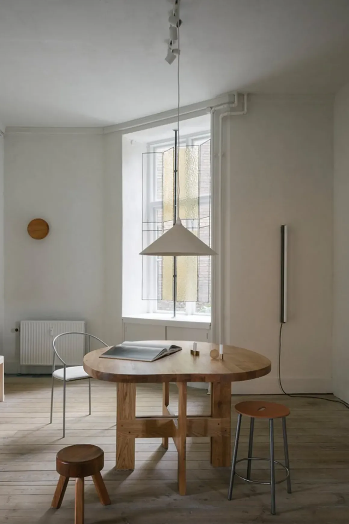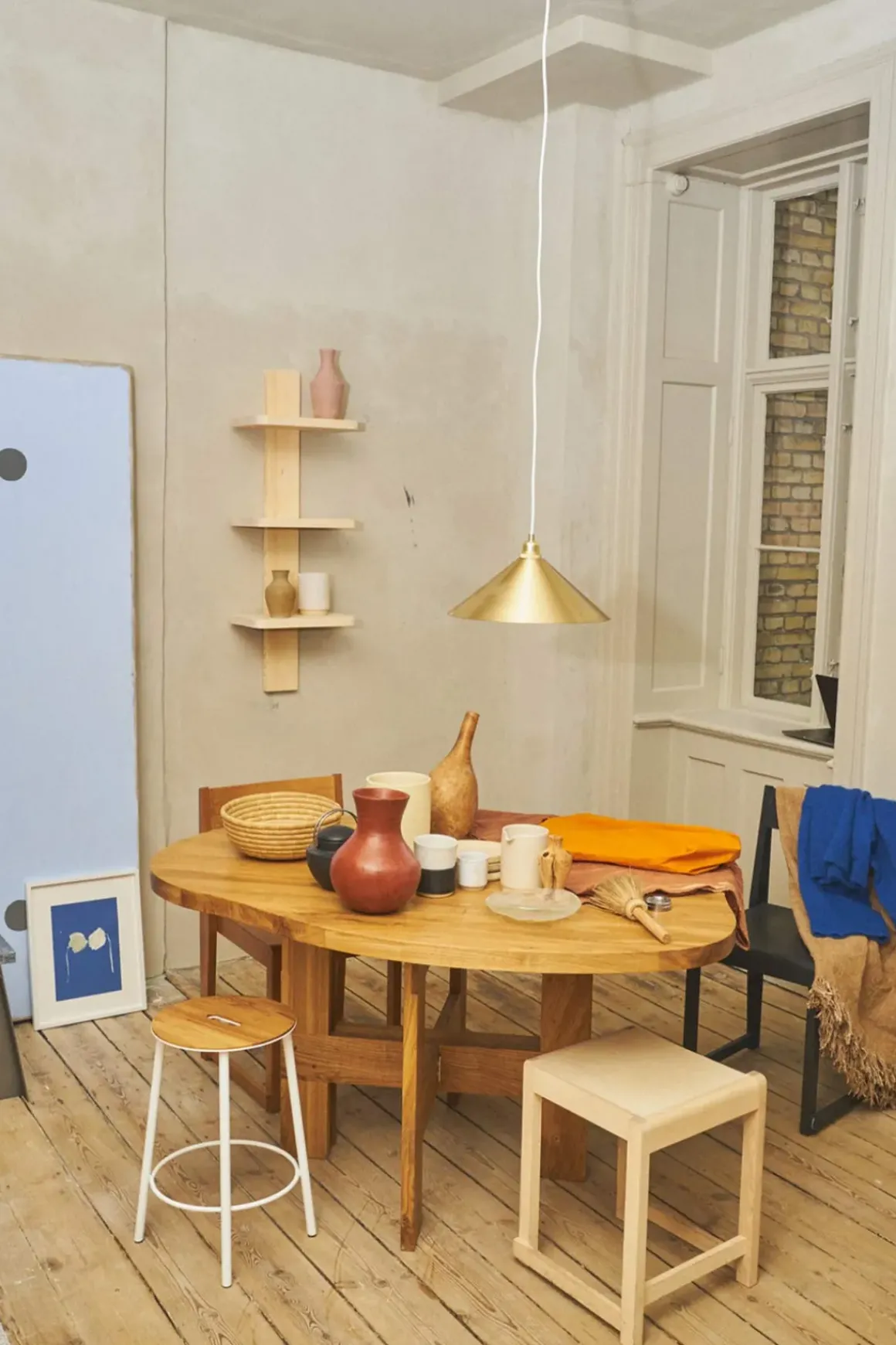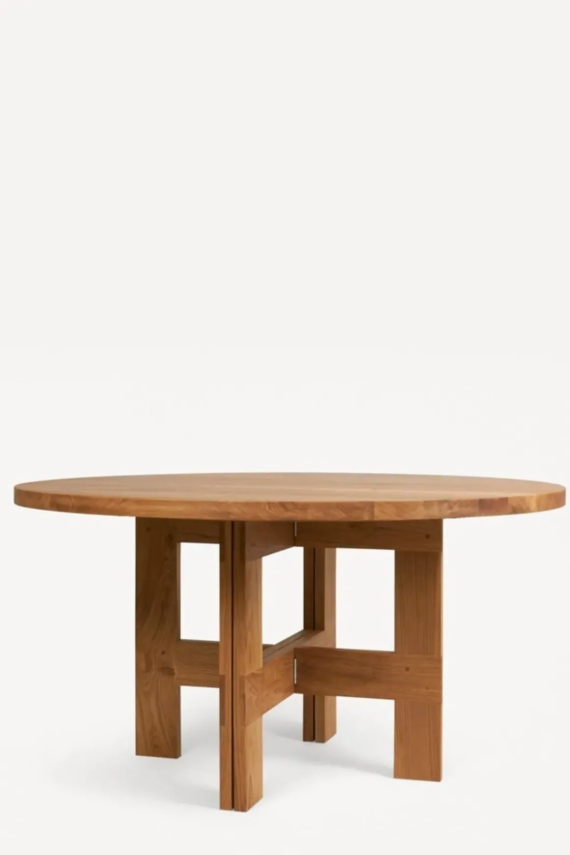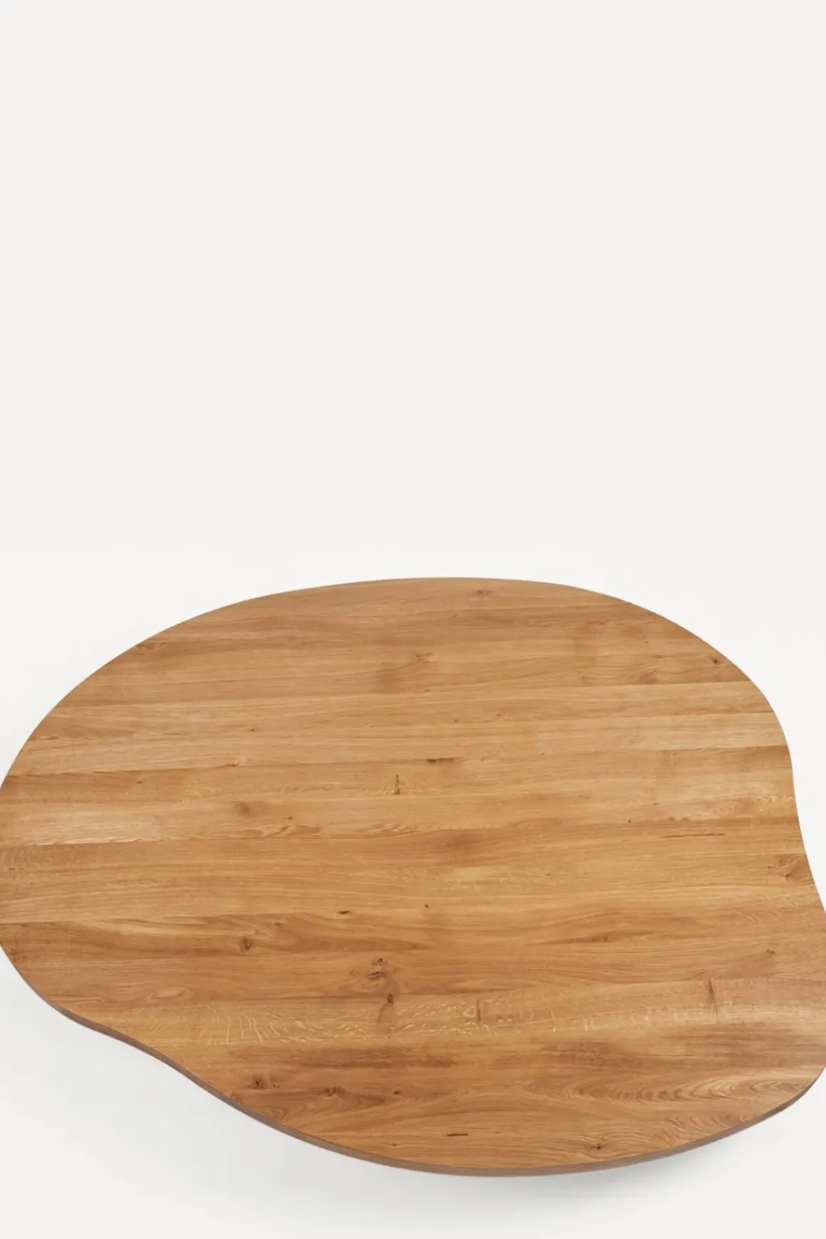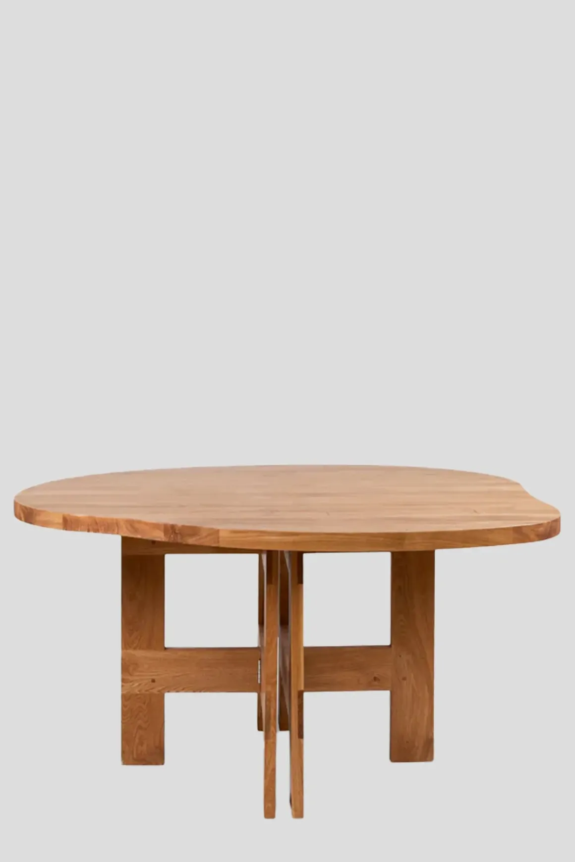 Table Pond spisebord fra Framas Farmhouse Dining Series. Den skulpturelle bordplaten har en organisk form med flytende linjer. Farmhouse-bordet er sammensatt av to bukker som ligner de synlige bjelkene som sees på tradisjonelle gårdshus. På toppen hviler en solid bordplate av eik. Bukkene kan også brukes til andre bordplater enn den som følger med om man ønsker det. Farmhouse Table passer perfekt med 4 stoler rundt bordet og kan brukes både som spisebord eller skrivebord. Bordet kommer flatpakket og er enkel å montere og flytte rundt.