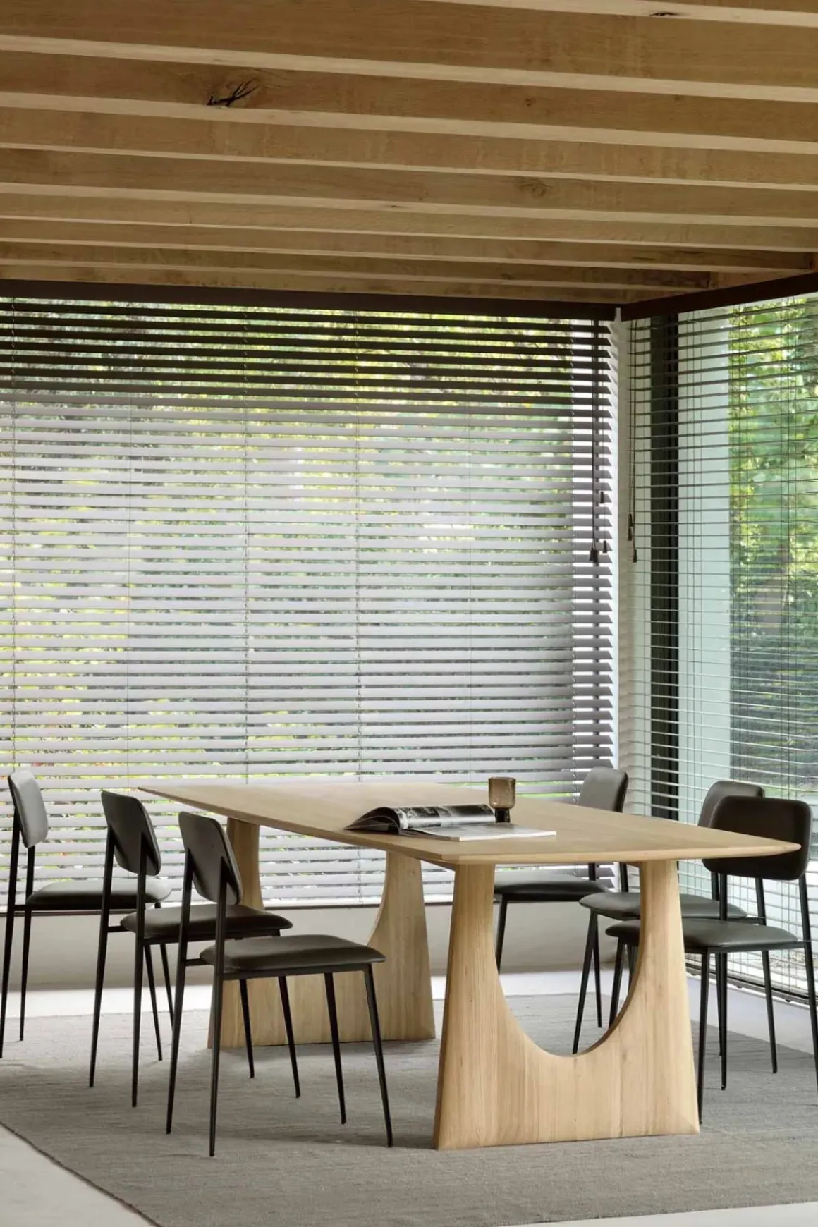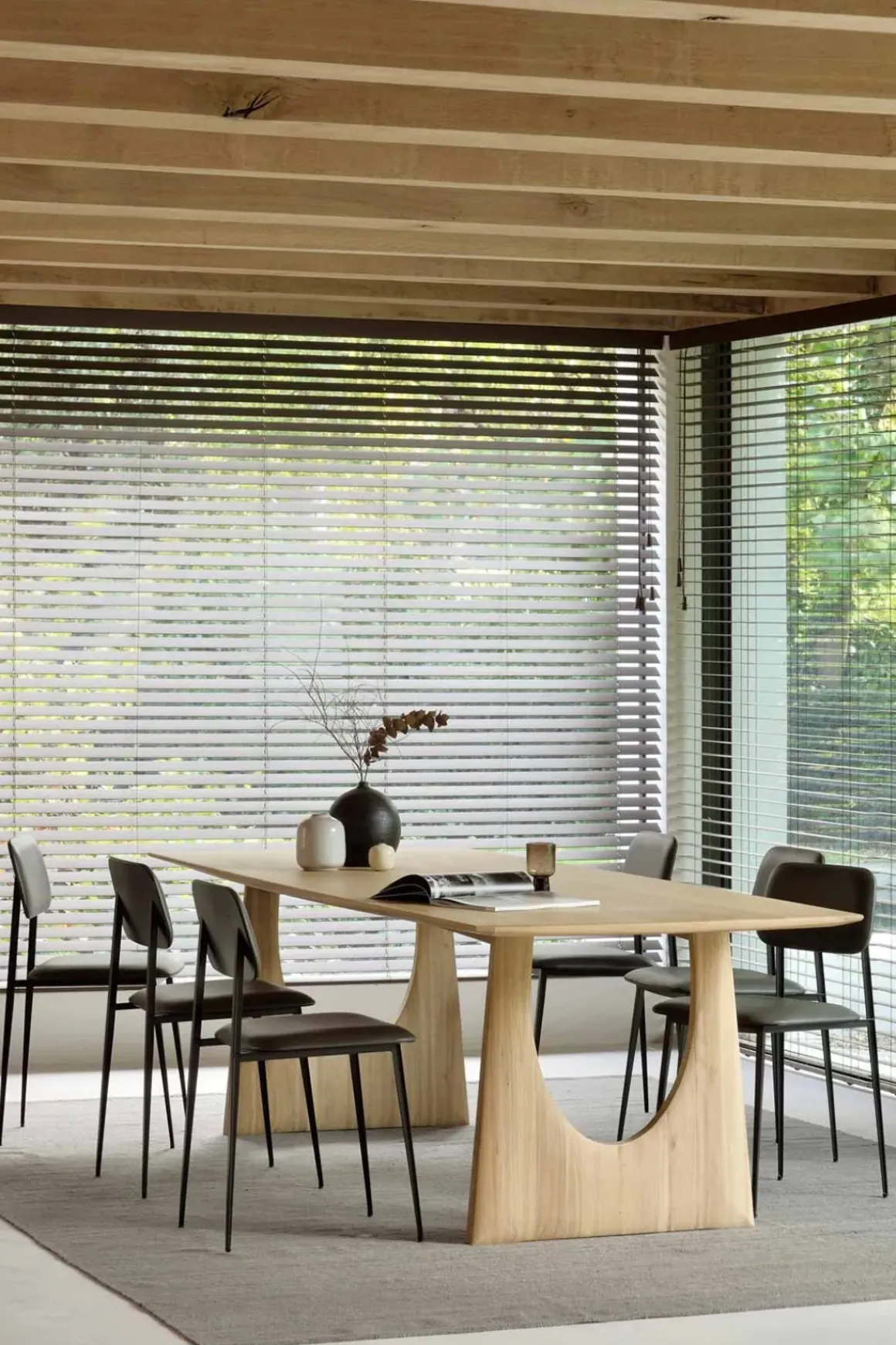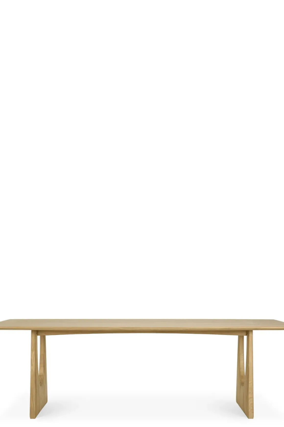 Geometric table, spisebord designet av Alain Van Havre for belgiske Ethnicraft. Et unikt, solid og skulpturelt spisebord som både er robust og feminint med buede kanter, utført i varig og stilren, massiv eik. Et møbel som enkelt passer inn, men samtidig skiller seg ut med sine uventede og gjennomtenkte detaljer. Bordet har generøs lengde og bredde slik at man komfortabelt kan sitte 10 rundt bordet.
