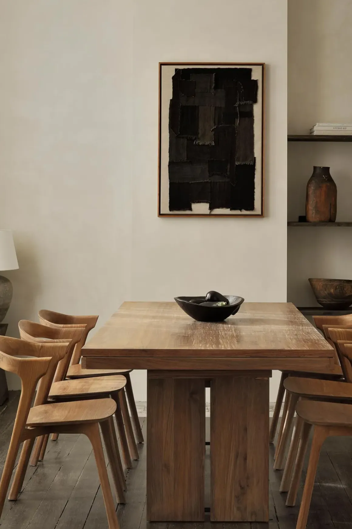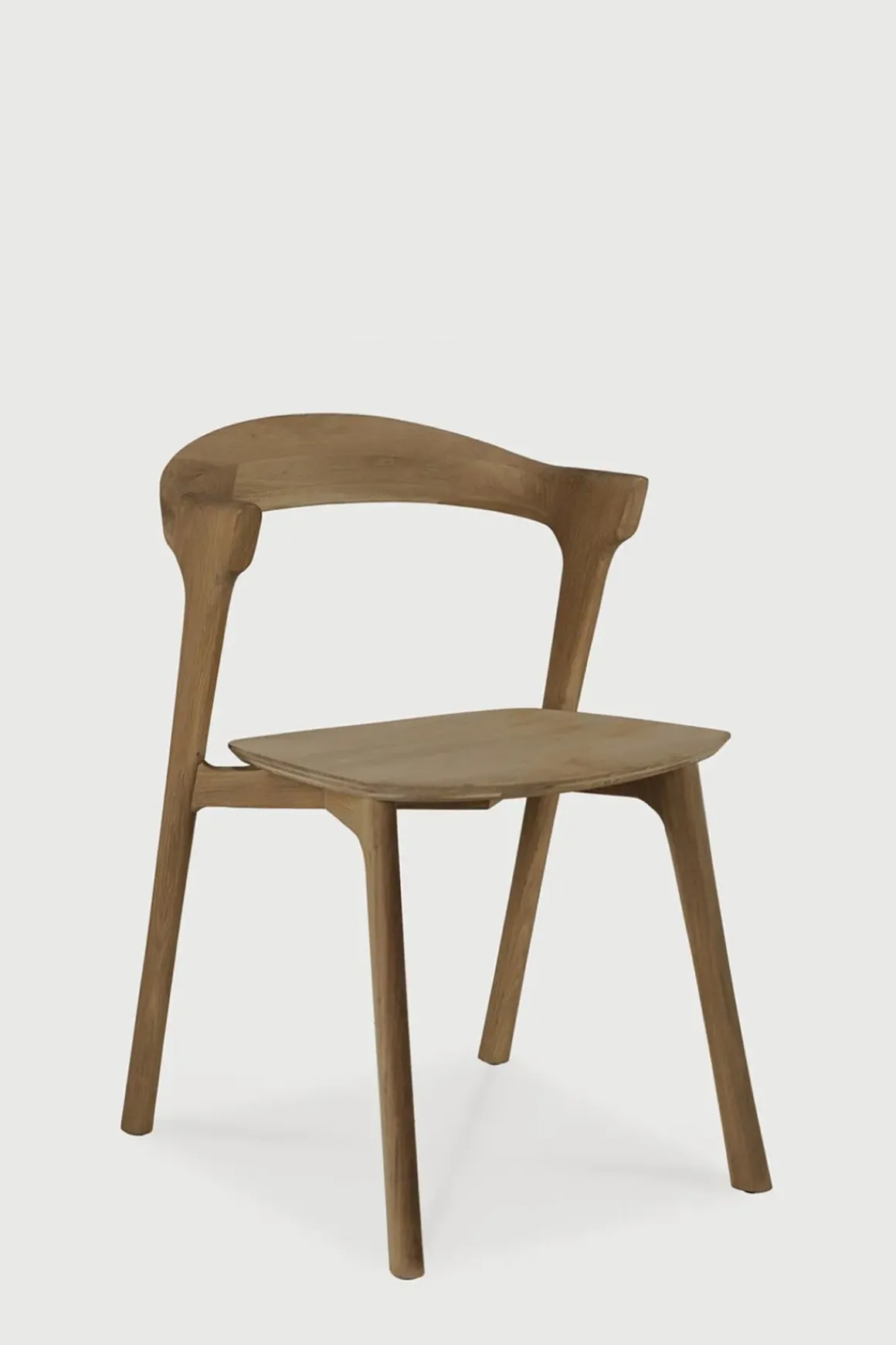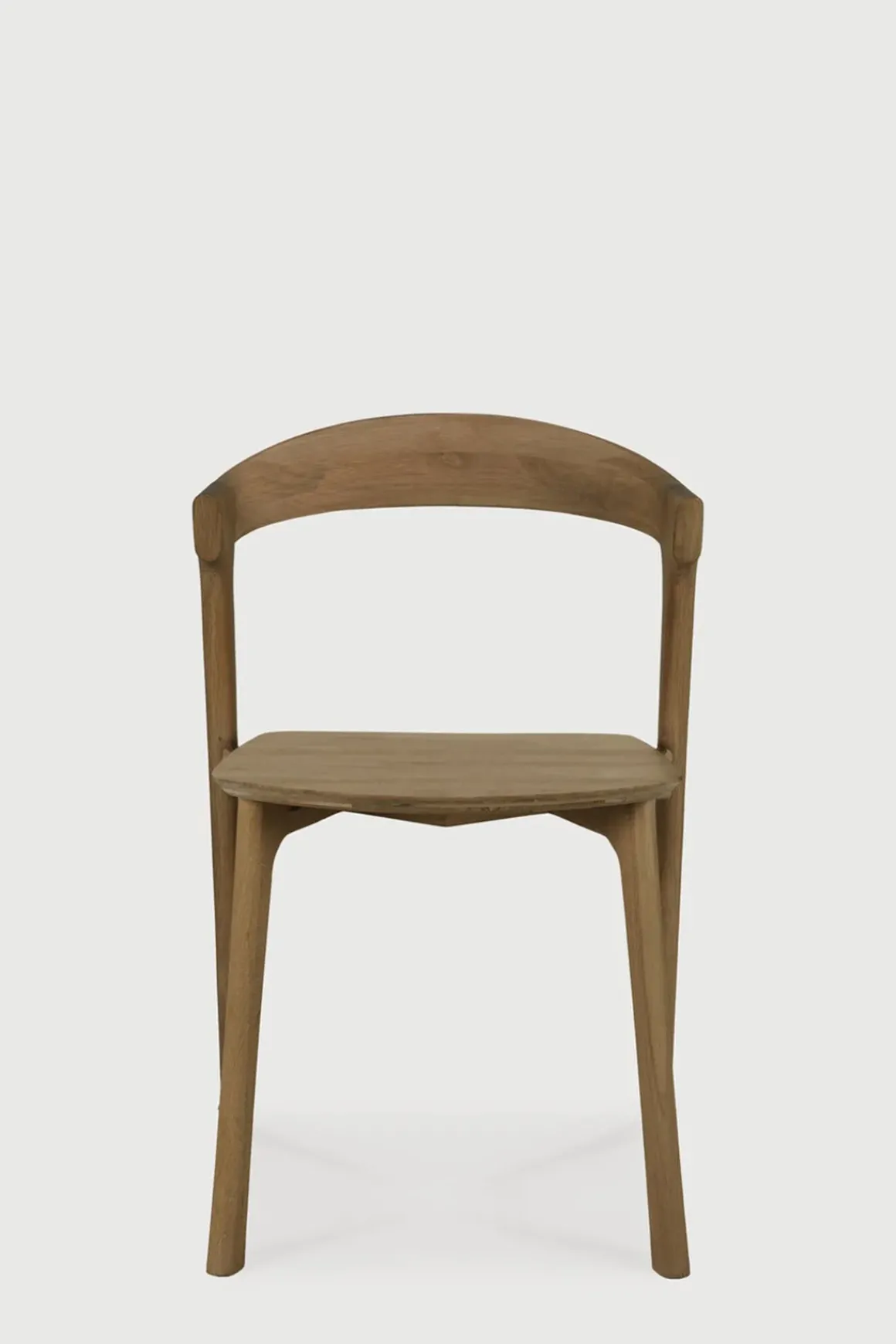 Karakteristisk spisestol i naturlig teak fra Ethnicraft, designet av Alain van Havre. Oak Bok stolen har den perfekte balanse mellom skulpturell eleganse og solid håndverk, med et lett og moderne uttrykk.