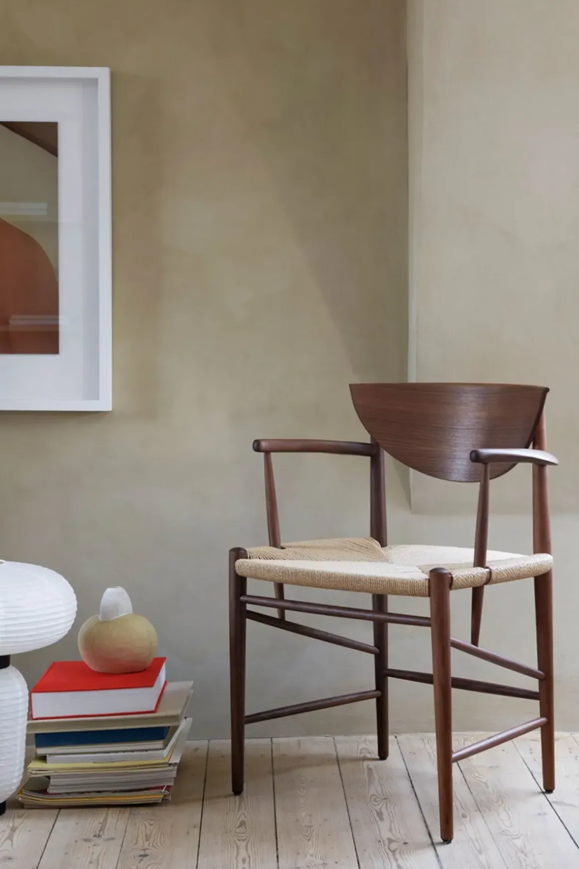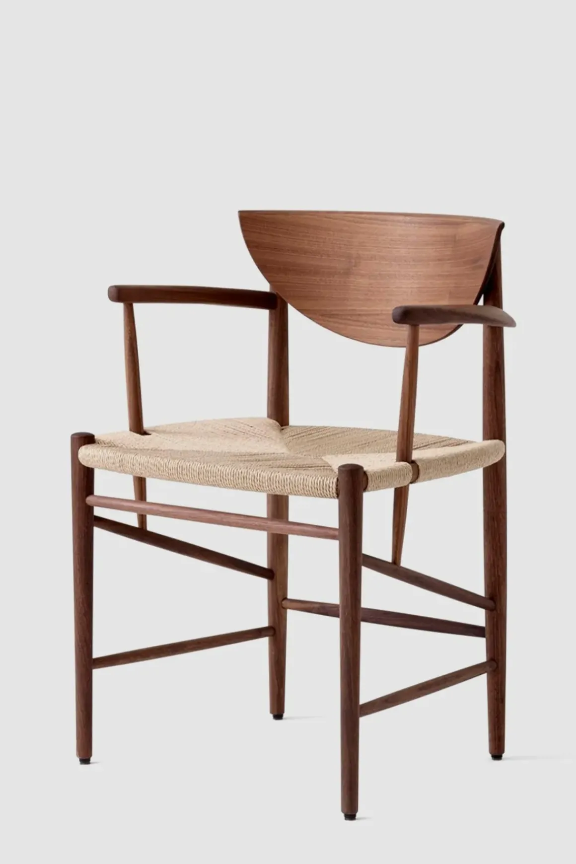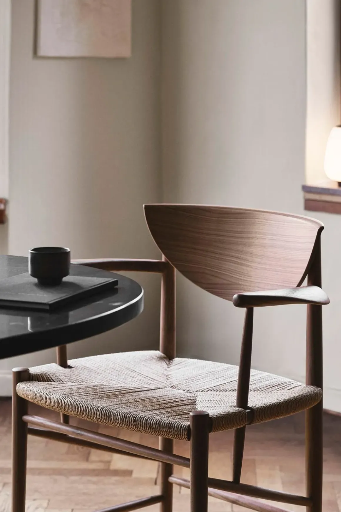 Spisestol – Drawn HM4 m/Armlener Valnøtt/Natur papirgarn