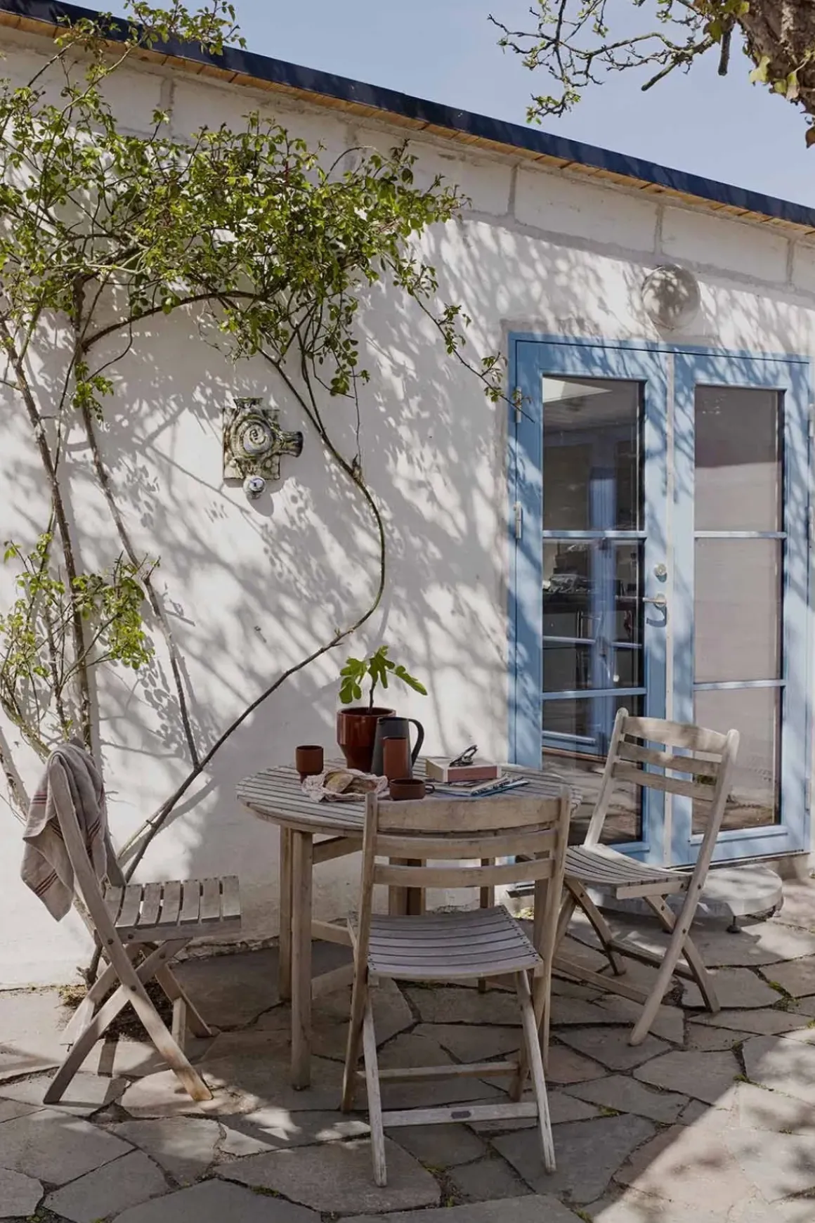 Teak: generell rengjøring ved behov med et passende trerensemiddel og en myk børste. Skyll etterpå med vann og la det tørke i 24 timer. Merk: Tørk av bord, benker og stoler etter bruk med en tørr klut. Ettersom treverket er ubehandlet, vil overflaten patinere over tid og etter hvert bli vakkert sølvgrå. Hvis du ønsker å bevare eller intensivere den originale honninggyldne fargen, bruk en passende møbelolje med jevne mellomrom. Treverket er motstandsdyktig mot vind og vær med eller uten behandling på grunn av det høye innholdet av naturlige oljer, men hvis mulig anbefaler vi å oppbevare møblene i et uoppvarmet rom i vintermånedene.