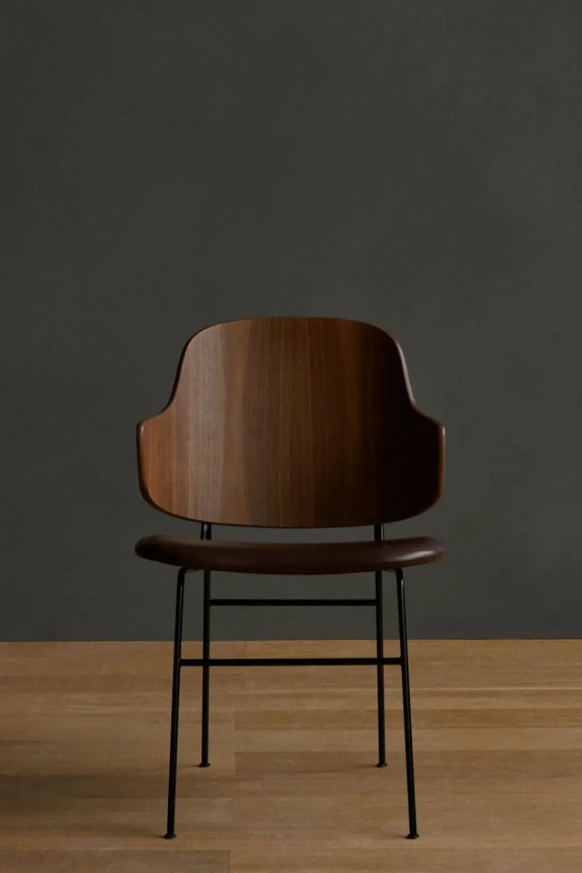 - Materiale: Oljet valnøttfinér | Pulverlakkert stål | Buet kryssfinér | Dakar 329 skinn | Skumpolstring