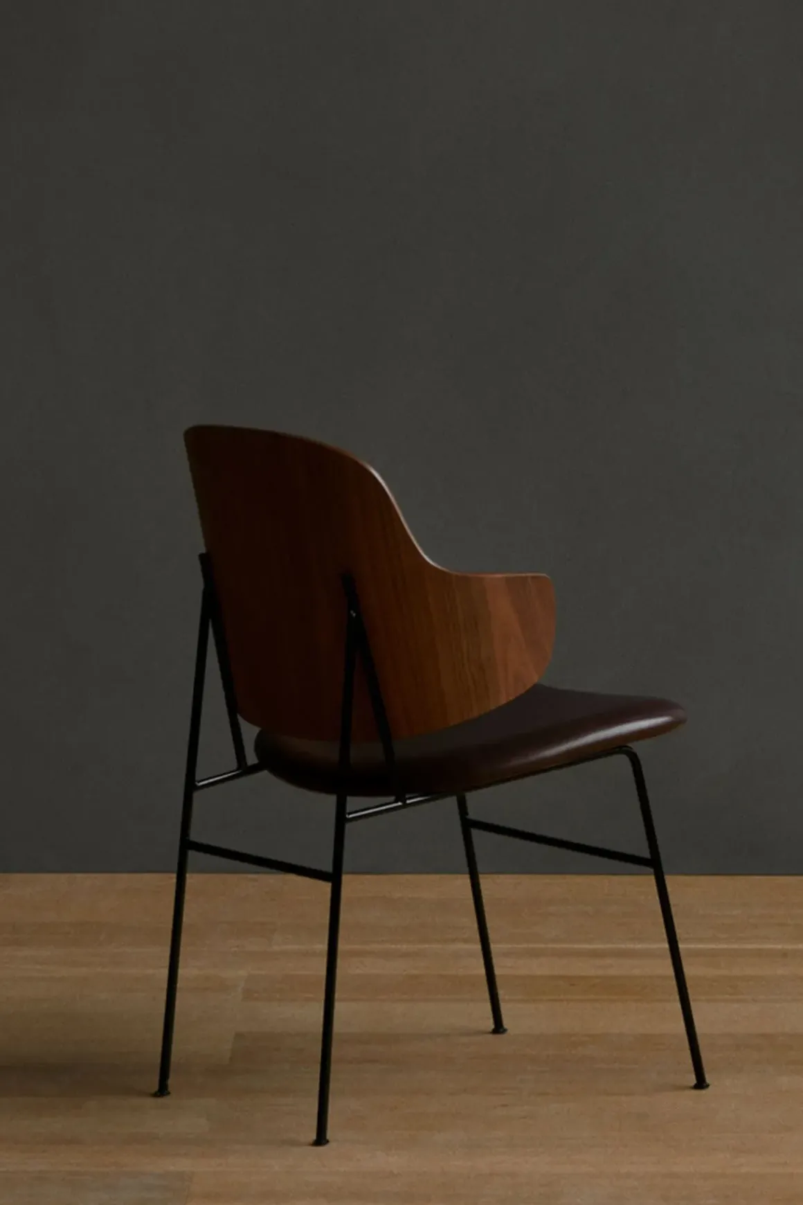 klassisk, skulpturell og kunstnerisk og ble en bestselger fra midten av århundret, og er like populær den dag i dag. Navnet Penguin kommer fra stolens lekne form: stolen er som om en liten pingvin som er i ferd med å omfavne deg når du setter deg ned. Pingvinformede svømmeføtter på baksiden av stolen er typisk for Ib Kofod-Larsens estetiske tilnærming og organiske enkelhet. Da han designet stolen, var komfort en prioritet. Den buede ryggen og det vinklede setet omfavner kroppen og gir overraskende høy komfort i det ellers veldig enkle designet. Ryggen blir en del av kroppen som sikrer komfort og støtte samt en unik sitteopplevelse. Proporsjonene med det litt overdimensjonerte setet og ryggen, i kontrast til den petite, delikate rammen, gir en naiv følelse, samtidig som Penguin er en sofistikert stol med personlighet. Penguin Chair er relansert i spisestue-, lounge- og gyngestol, og er laget med en rygg i eik-eller valnøttfinér og med eller uten polstret sete.