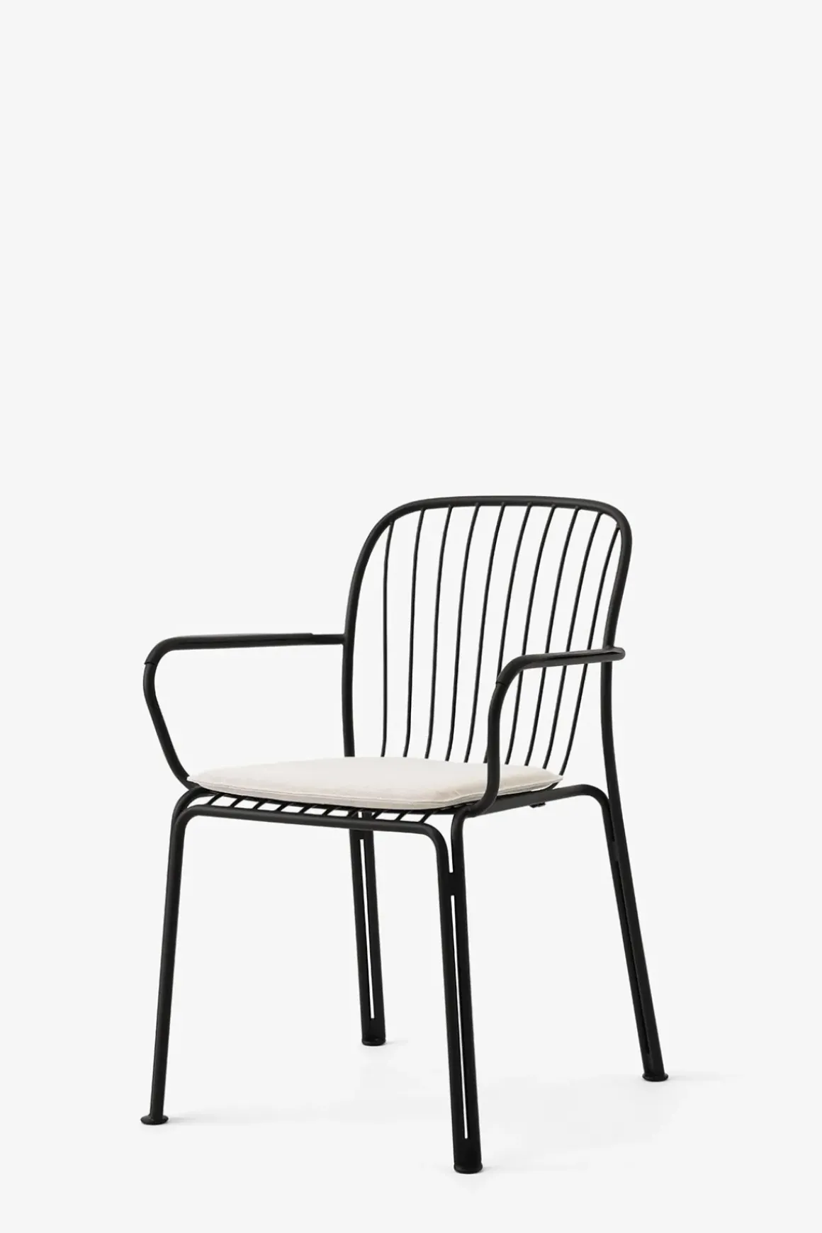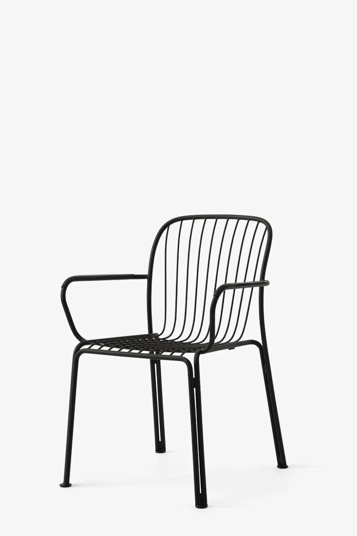Thorvald utestol med armlener fra danske u0026amp;Tradition, designet av anerkjente Space Copenhagen. Thorvald er laget av pulverlakkert stål og kommer i sort, grønn og elfenbenshvit. Stolens ramme og spilene er bøyd og delene blir deretter sveiset, polert, galvanisert og deretter pulverlakkert. Thorvald kan kombineres med andre typer utemøbler eller du kan komplettere med bord i samme serie for en komplett look til uteplassen. Stolene kan også enkelt stables som gjør de svært praktiske og plassbesparende når de ikke er i bruk.