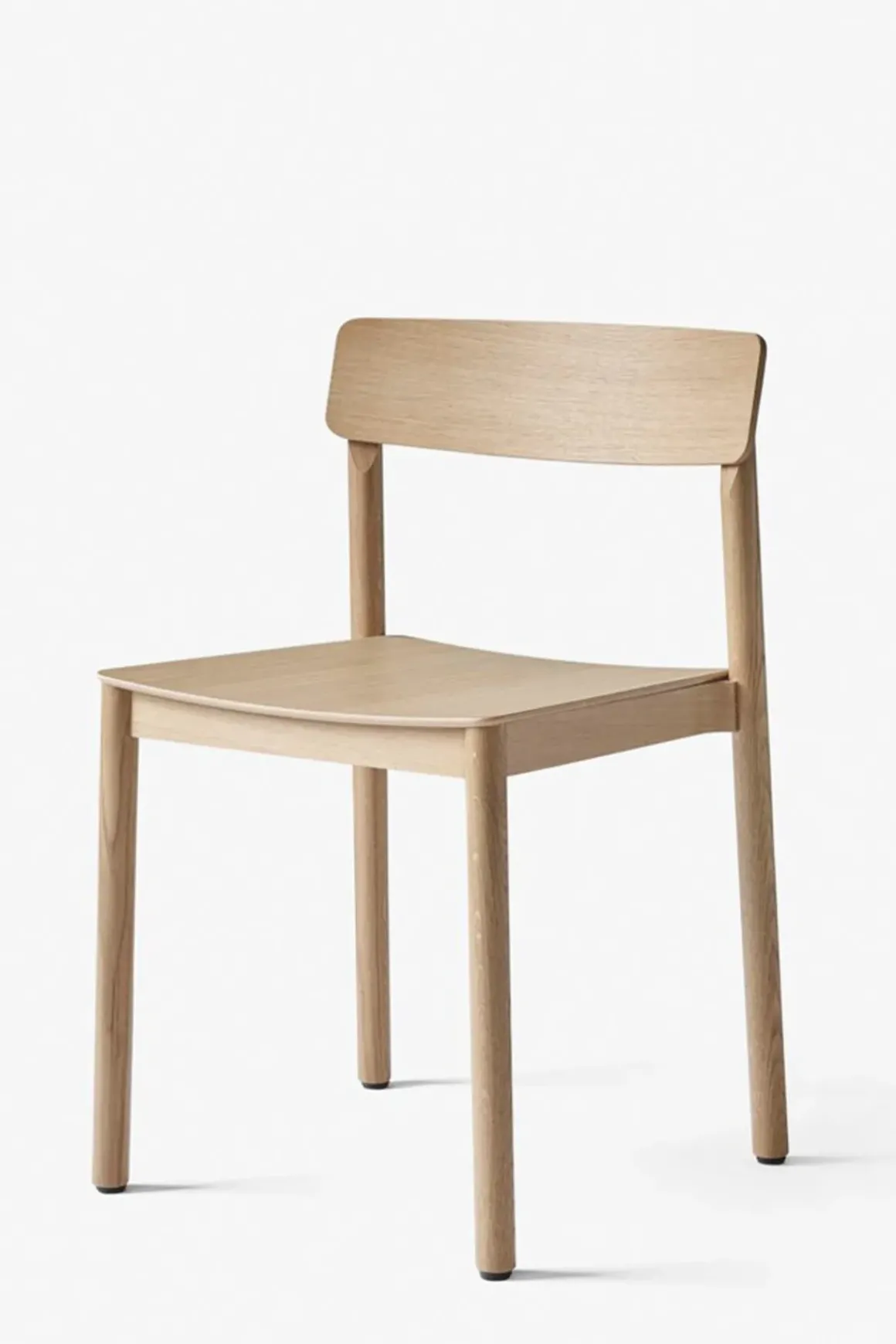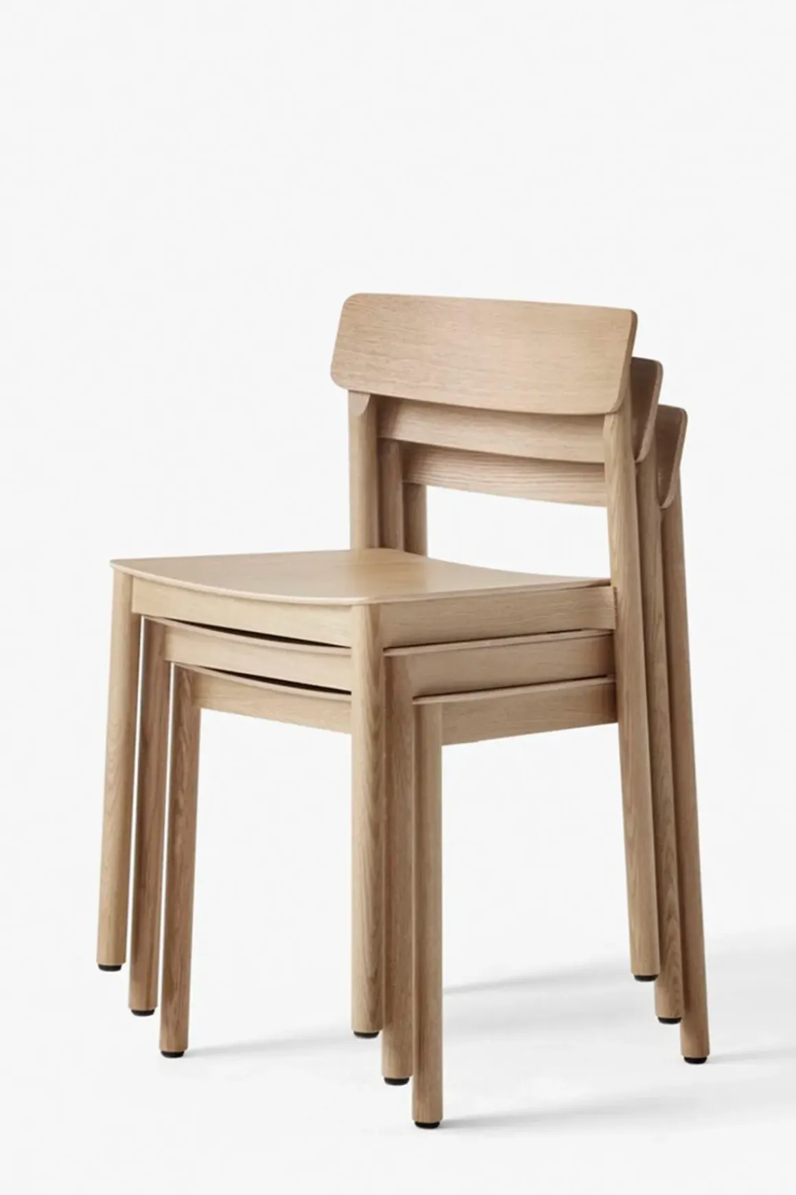 TK2-spisestol fra u0026amp;Tradition er oppkalt etter Betty Nansen-teateret i København og er designet av Jakob Thau og Sami Kallio. Stolen er laget av lakkert heltre med sete av formpresset eikefinér. Stolrammen i massivt tre er tilgjengelig i tre finisher: Svartlakkert ask, rødbrunlakkert ask og lakkert, massiv eik. Betty er nett og taktil i naturlige, varige materialer, kan stables i hverandre og kan brukes både hjemme og på hytta.