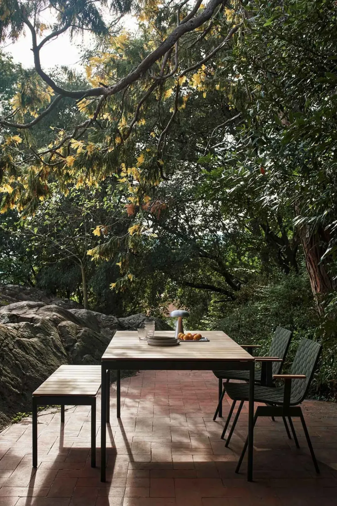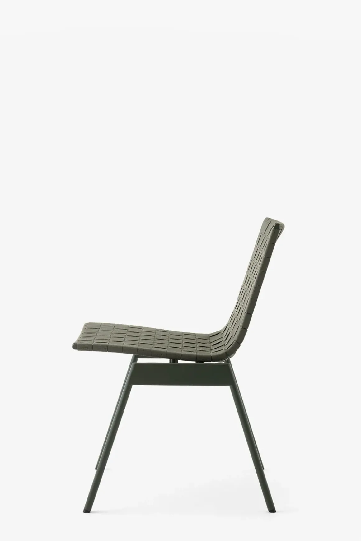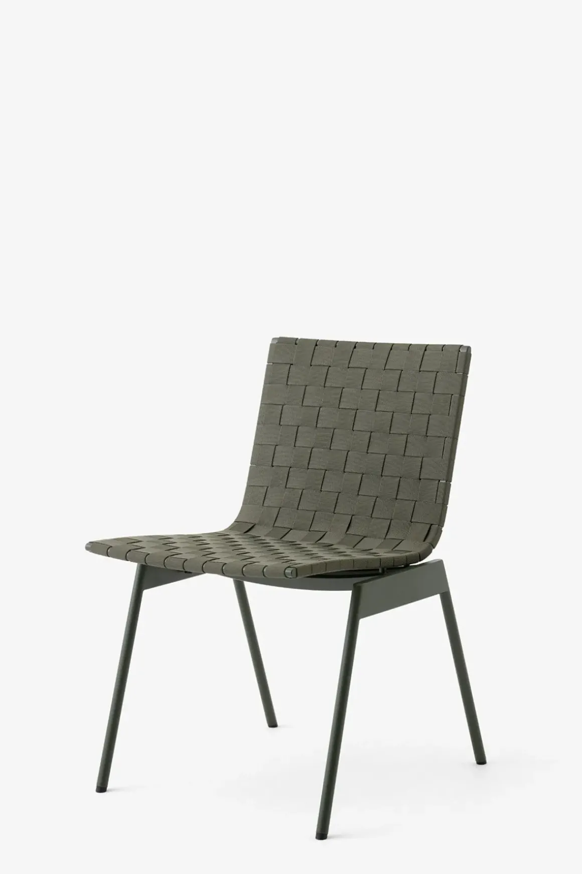 Ville AV33 utestol fra danske u0026amp;Tradition, designet av den norske designduoen Andersen u0026amp; Voll. Ville er laget av pulverlakkert stål med vevde polyesterremser i sete og rygg. Metallet kuttes, formes, sveises og deretter pulverlakkeres, mens remsene til stolsetet er vevd for hånd og kuttet i form med en varm kniv for å unngå frynsing. Stolen finnes i sort eller grønn og kommer med eller uten armlener. Ville kan enkelt kombineres med andre typer utemøbler eller du kan komplettere med bord i samme serie for en helhetlig look til uteplassen. Stolene kan stables i hverandre som er veldig praktisk og plassbesparende når de ikke er i bruk.