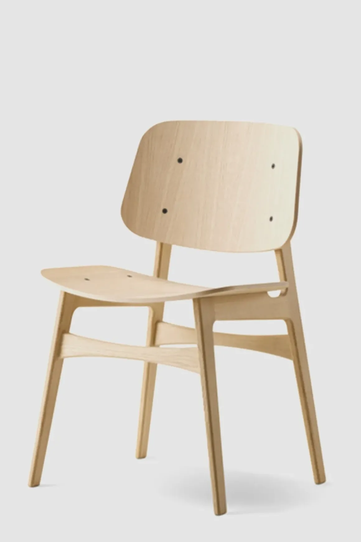 Liker du dansk design, vil du elske Søborg Model 3050 i oljet eik som ble designet av Børge Mogensen i 1950. Med Søborgstolen greide Mogensen å kombinere snekkertradisjoner i massivt tre med moderne, formspent finér. Stolrammen er av heltre eik, med sete og rygg av formpresset kryssfinér, og er en behagelig stol med sjenerøse proporsjoner -perfekt til lange frokoster og middager. Søborg-stolen har utskiftbare komponenter som kan fornyes separat etter behov. Hvis du ønsker mer informasjon om stolen eller vil se på stoff-eller skinnprøver, så ta turen innom butikken – vi hjelper deg gjerne!