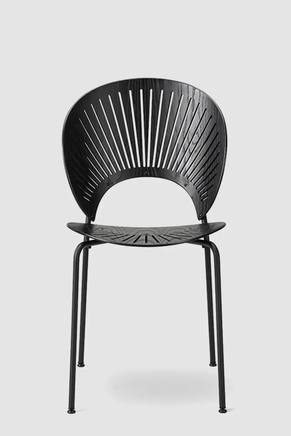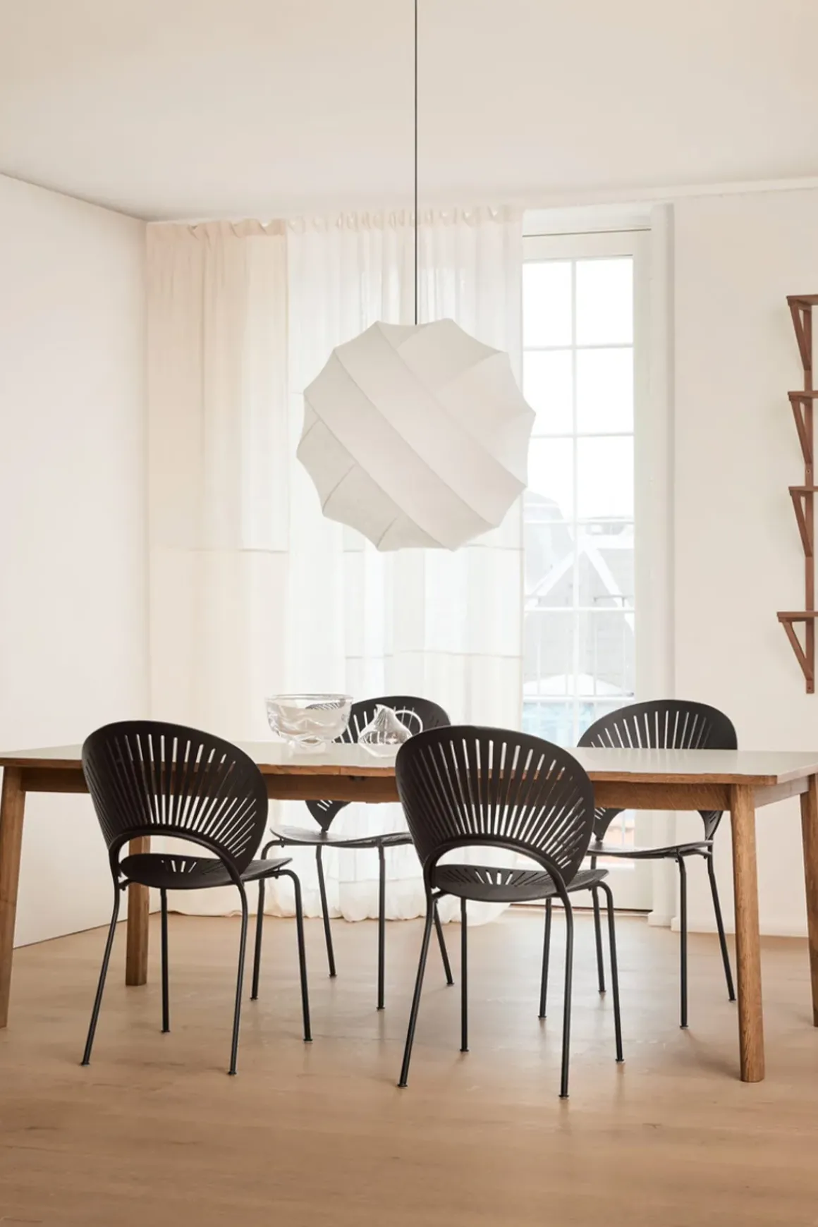 Bli kjent med ikoniske Trinidad 3398, designet av den kjente danske designeren Nanna Ditzel til Fredericias 25-års jubileum i 1993. Spisestolen er inspirert av hennes reise gjennom Trinidad og spesielt de forseggjorte utskjæringene på fasadene til «pepperkakehusene» fra kolonitiden. På samme måte som fasadene, utløser det utskårne treverket et samspill av lys og skygger, og skaper et vakkert mønster som gjør stolen unik. Trinidad kombinerer sofistikerte detaljer med uanstrengt eleganse, uten å gå på akkord med hverken komfort eller design. De særegne utskjæringer i den buede ryggstøtten og setet, er både et iøynefallende, dekorativt element, samtidig som det gjør stolen både lettere og luftigere. Spisestolen har utmerket sittekomfort og tar svært lite plass. Stolens ramme er laget av stålrør, ryggstøtten av støpt kryssfiner med presise CNC-utskjæringer, og sete og rygg er montert med nagler. Bena kommer med utskiftbare plastglidere. Denne versjonen uten armlener kan stables – hele 8 stoler i hverandre som er perfekt hvis man har begrenset med plass. Trinidad kommer i flere varianter og er tilgjengelig i behandlet eik, ask, bøk, og valnøtt. I tillegg fås understellet i fargen flint, krom og sort. Trinidads dristige design gjorde stolen til en øyeblikkelig suksess etter lanseringen i 1993 og er nå et lettgjenkjennelig designikon som passer perfekt inn i skandinaviske hjem.