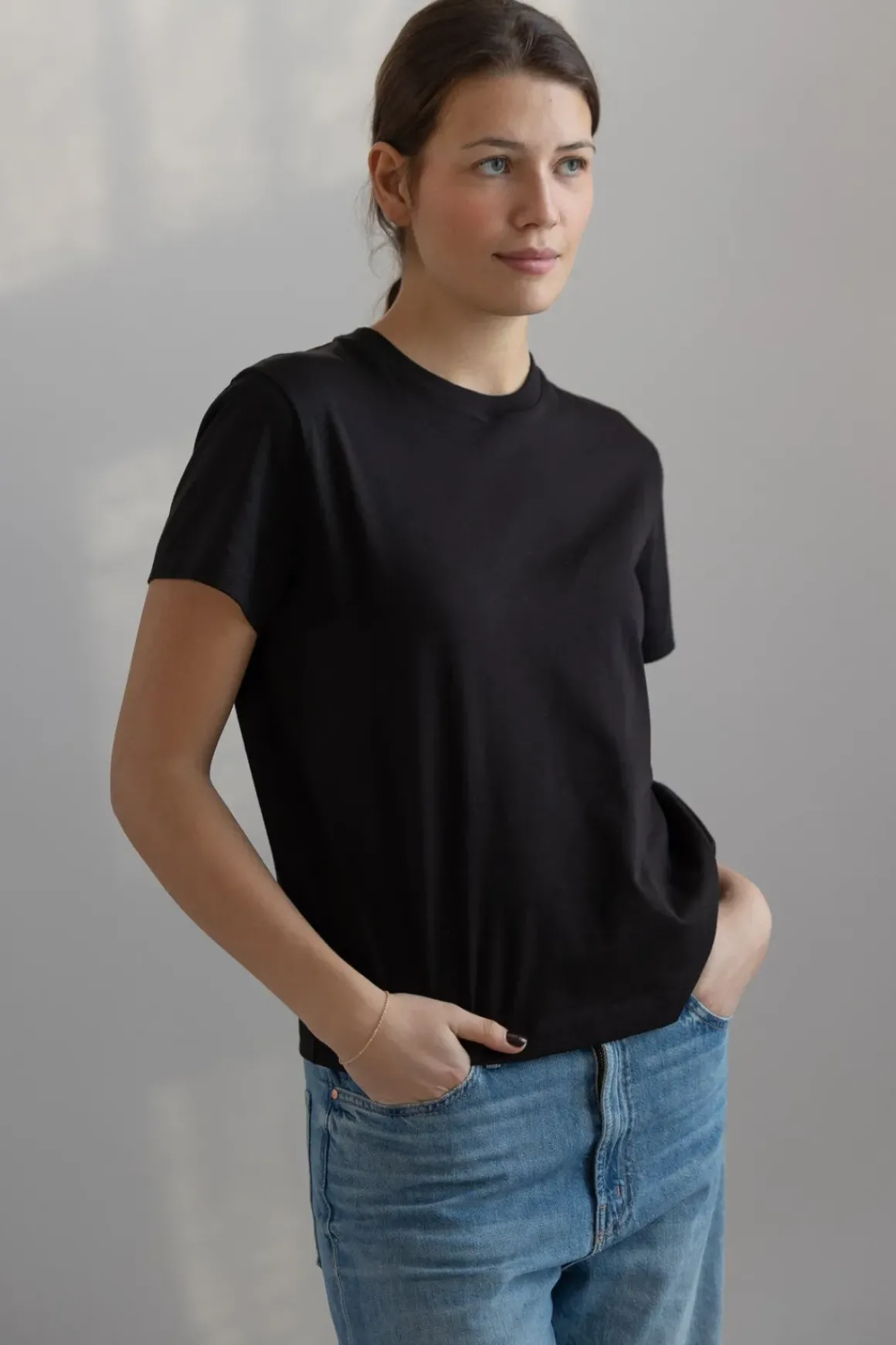 Pima Cotton Crew Neck T-Shirt i klassisk sort fra Vince. T-skjorten har rund hals, er laget av myk og solid jersey i pimabomull og er en skikkelig hverdagshelt i klesskapet.