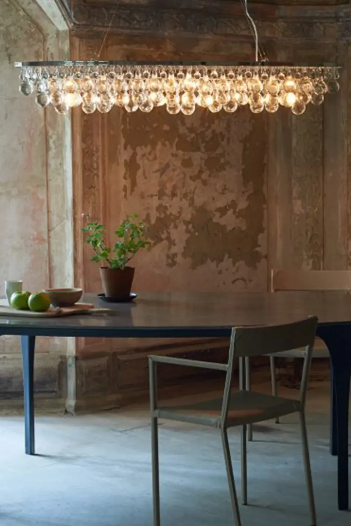 Arctic Pear Chandelier Oval fra Ochre er kanskje noe av det vakreste vi vet, og har faktisk vært en Bolina-favoritt i mange år allerede. Arctic Pear er en lampeserie med lysekroner som består av en ramme i patinert bronse eller polert nikkel med rader av vakre, hengende dråper i klart eller kvikksølvgrått glass. Lampen kommer med 4 justerbare vaiere og ledning på 2 meter med takkopp som matcher utførelsen på lampen. Serien består av lampene Oval, Round og Wave i ulike størrelser og er også tilgjengelig som bordlampe og vegglampe. Et virkelig blikkfang, men samtidig klassisk og tidløs.