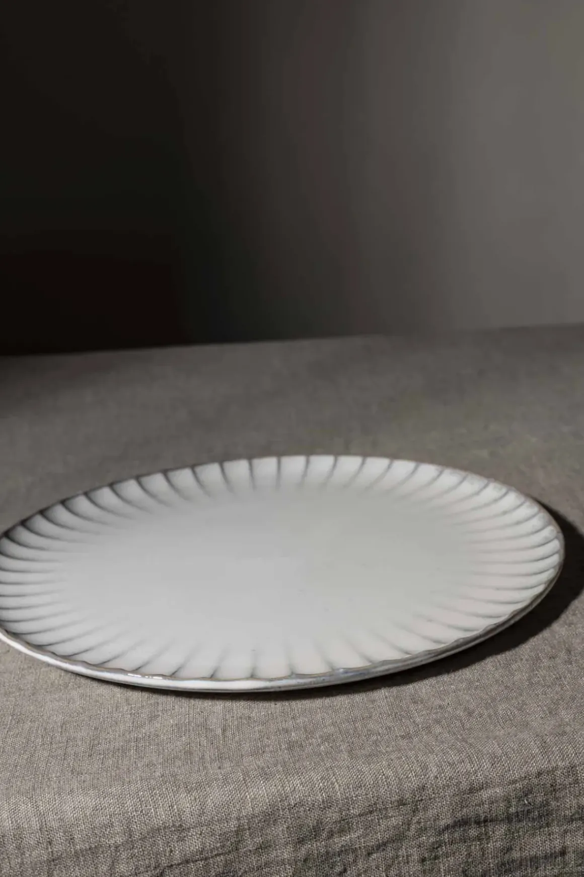 Tallerken fra Inku-kolleksjonen designet av Sergio Herman for Serax. Inku minner om et pent skjell i form og uttrykk. Laget av steintøy med et rustikt utseende. Ingen deler av serviset er helt like, noe som gjør hvert stykke unikt.