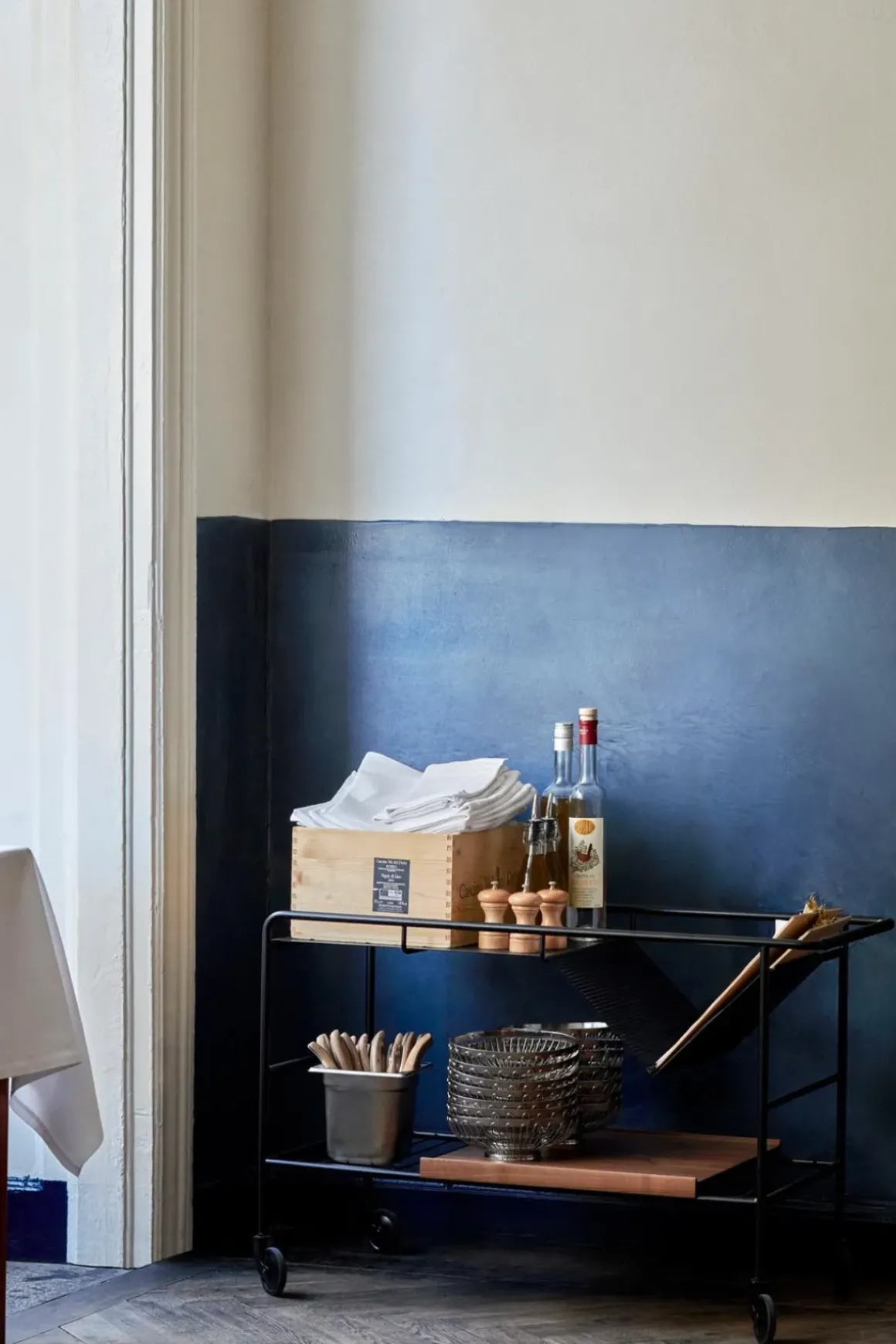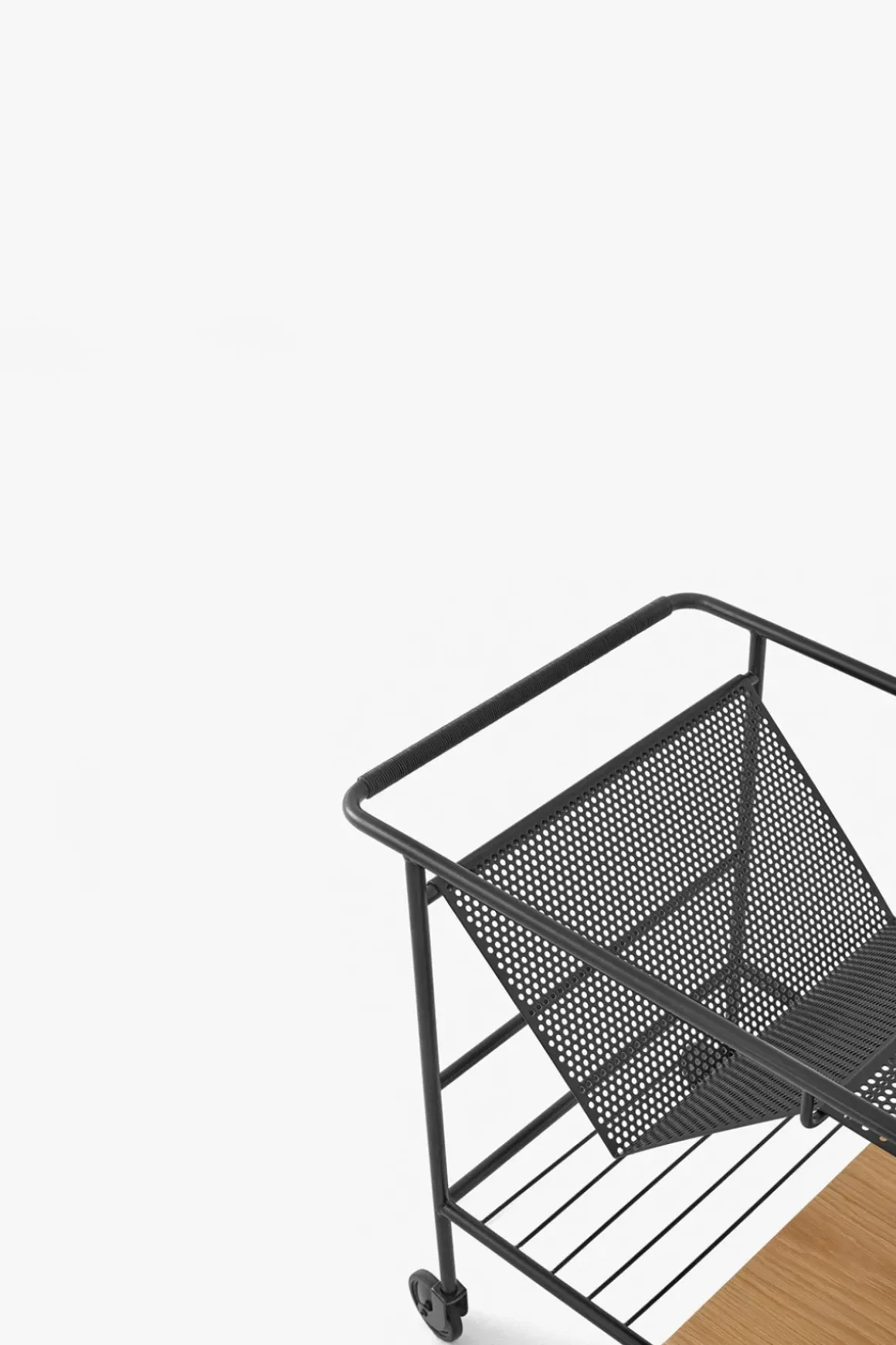Alima Trolley trillebord i matt sort og lakkert eik, designet av Note Design Studio for danske u0026amp;Tradition. Alima er inspirert av det «kreative kaoset» ved å jobbe hjemmefra, og resultatet ble et