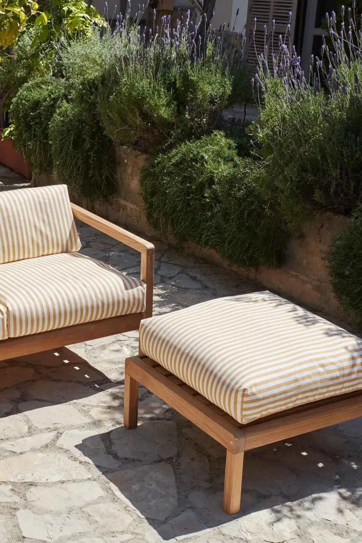 - Materiale: 100% FSC-sertifisert teak | Øko-Tex-sertifisert Agora Panama akrylstoff | Fossflakes